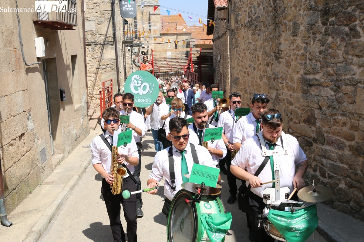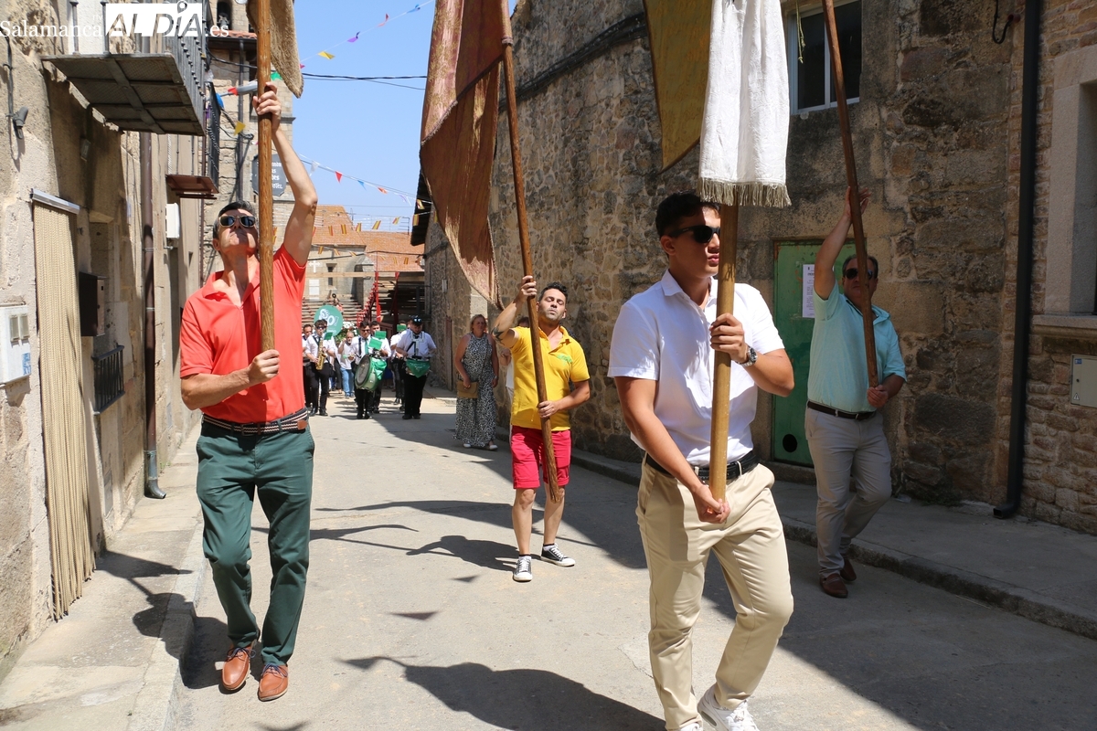 La Corte de Honor envuelve de belleza la procesión de San Bartolomé por las calles de Aldeadávila