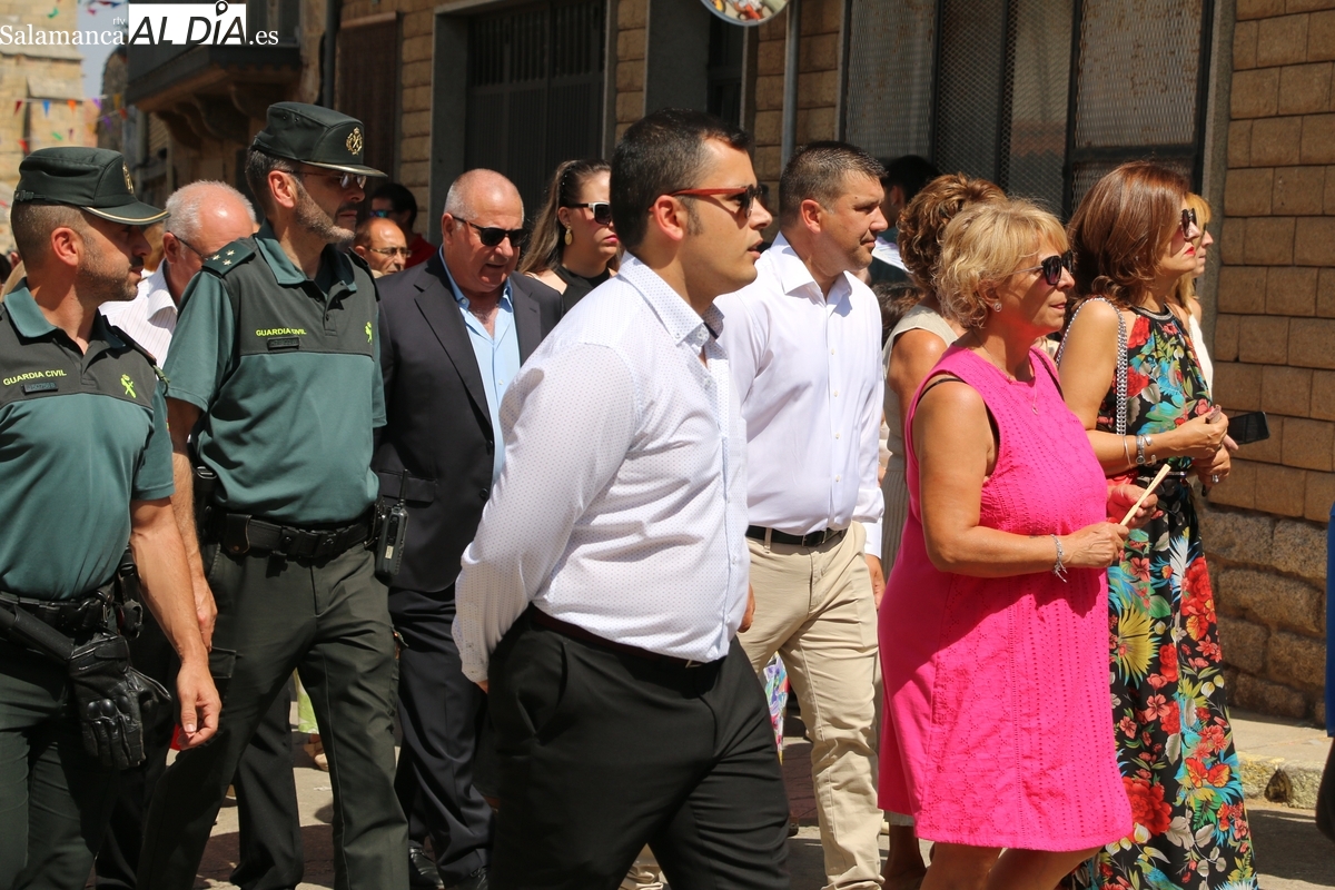 La comitiva estuvo presidida por el alcalde y mayordomo de las fiestas, Florentino García, quien estuvo acompañado por una notable representación institucional. Entre las personalidades destacaron los diputados provinciales de Turismo y de Deportes y Carreteras, Juan Carlos Zaballos y Jesús María Ortiz, así como el capitán de la Guardia Civil de la demarcación de Vitigudino, Carlos Rodríguez, y alcaldes y concejales de varios municipios de Las Arribes.