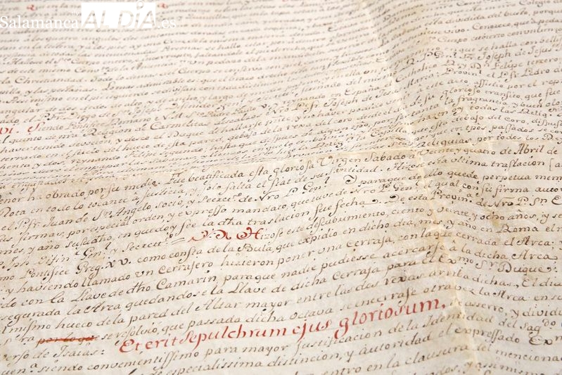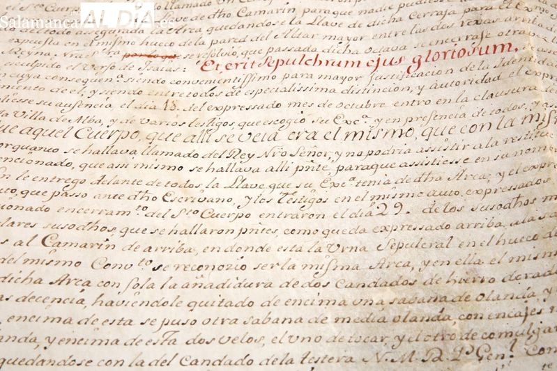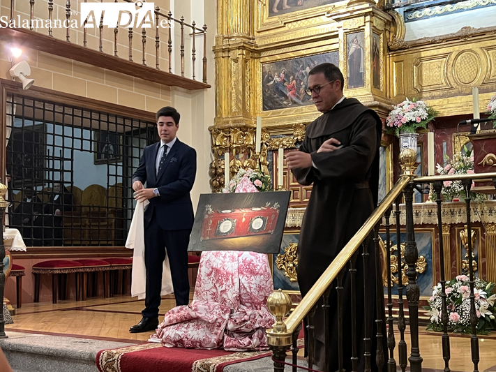 El acto contó con la intervención del propio pintor, de Manuel Pérez Hernández, profesor de la Universidad de Salamanca; del prior de la Orden de los Carmelitas Descalzos en Alba y Salamanca, Miguel Ángel González, impulsor del encargo; y de la alcaldesa de Alba de Tormes, Concepción Miguélez, quien a última hora no ha podido asistir debido a un fuego cercano a la urbanización de El Pinar de Alba. El prior subrayó que el objetivo es “ofrecer una imagen visual de una urna desaparecida, pero fundamental en la historia teresiana”. Al acto ha asitido también Francisco Sánchez Oreja, provincial de la Provincia Ibérica de los Carmelitas.