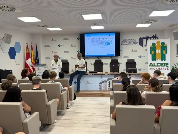 Para ello, los jóvenes han asistido a una charla impartida por dos figuras clave en el proceso de donación y trasplante en la provincia: Víctor Sagredo, coordinador médico de trasplantes del Complejo Asistencial Universitario de Salamanca, y Juan Carlos Sánchez, presidente de Alcer Salamanca (Asociación para la Lucha Contra las Enfermedades del Riñón).