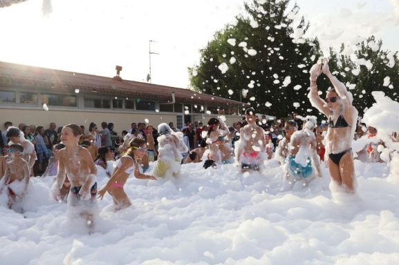 La tarde continuó en la calle Piscinas, donde a las 19:30 horas comenzó la esperada fiesta de la espuma. Cientos de asistentes se sumergieron en la nube blanca que inundó la calle, poniendo el broche más refrescante y animado a una jornada en la que el calor fue el mejor aliado para disfrutar de estas propuestas.