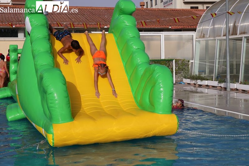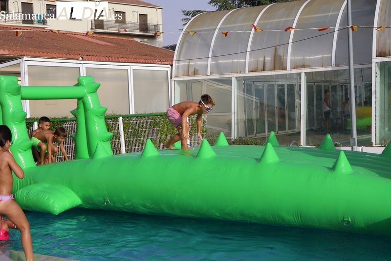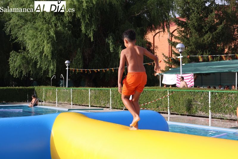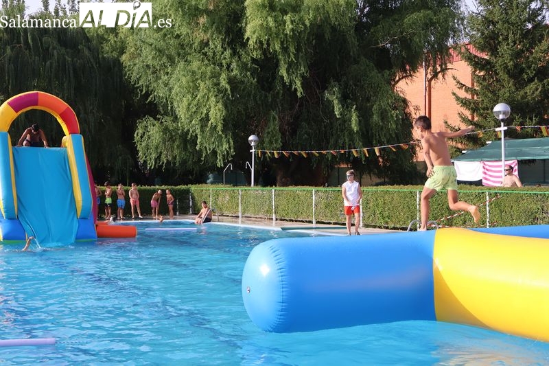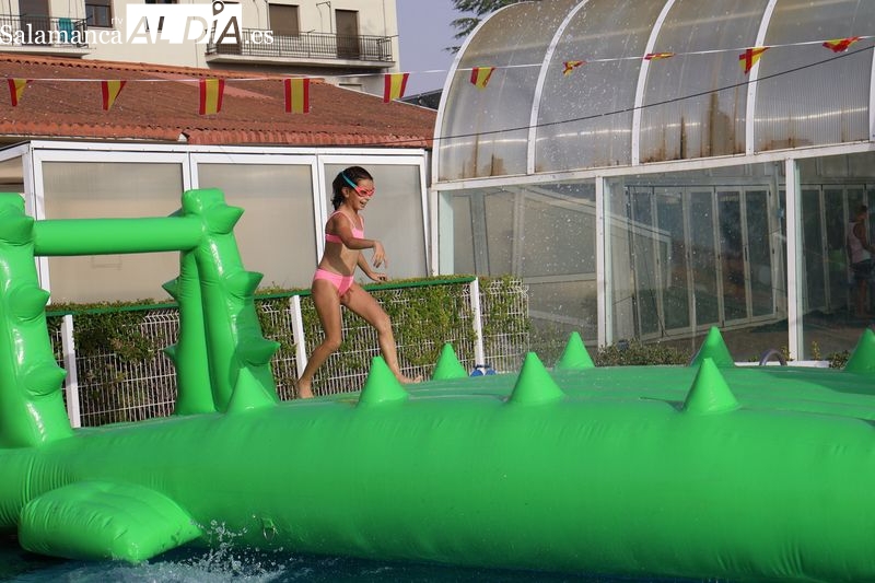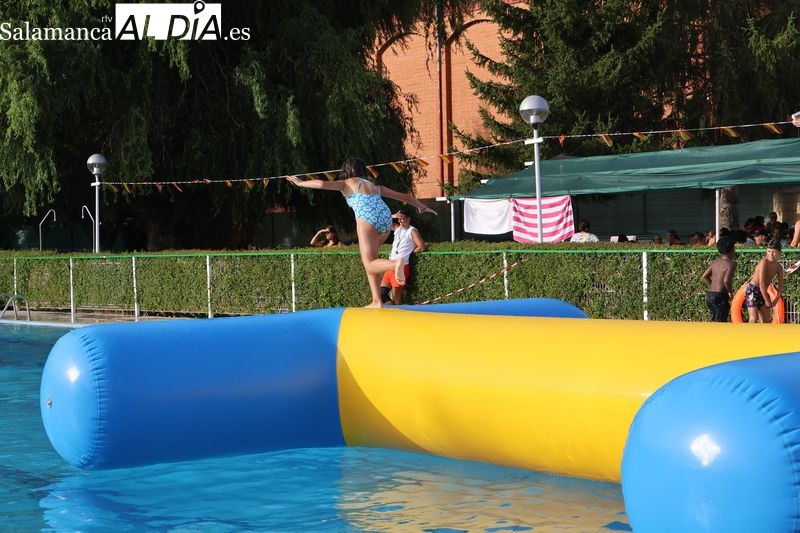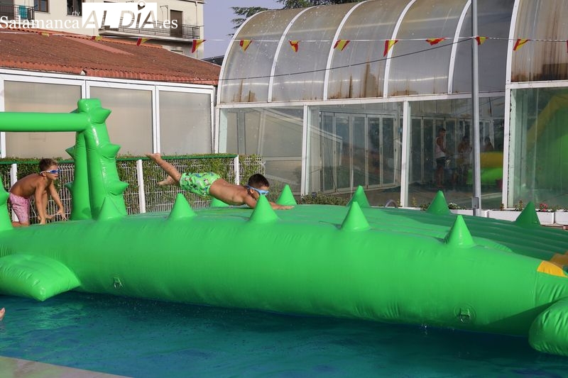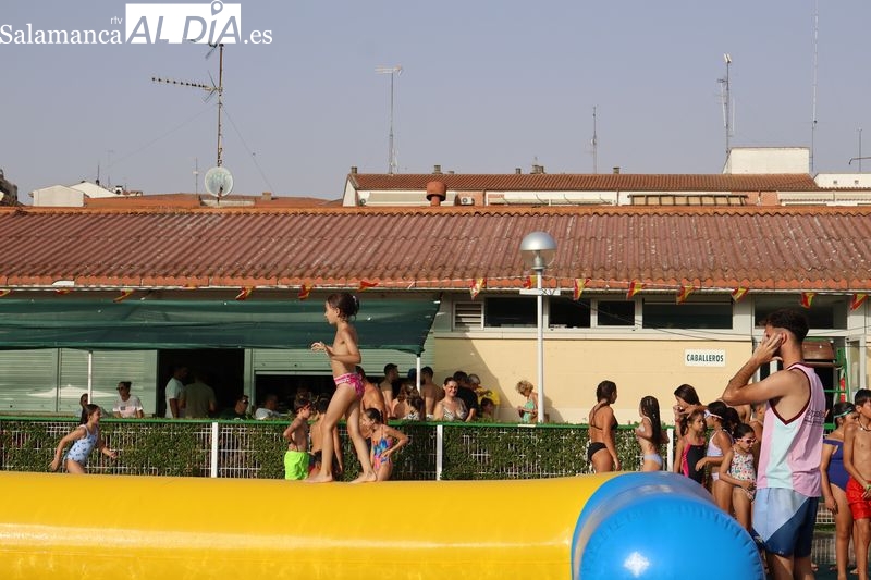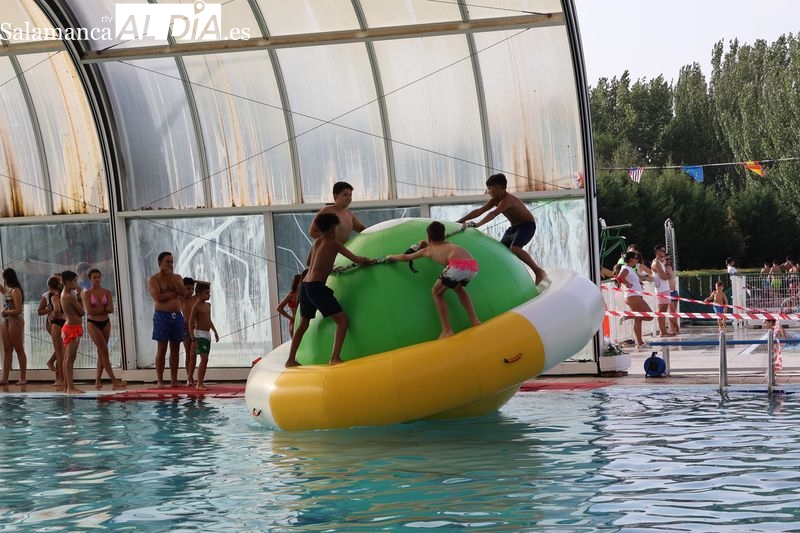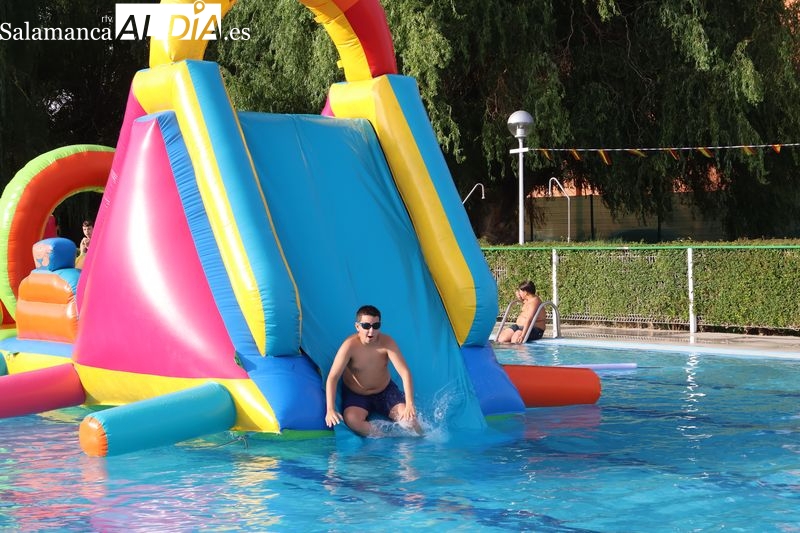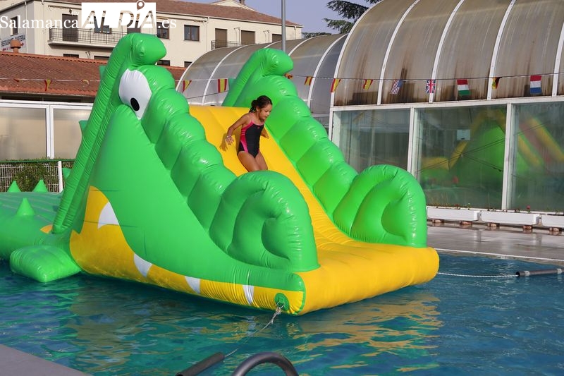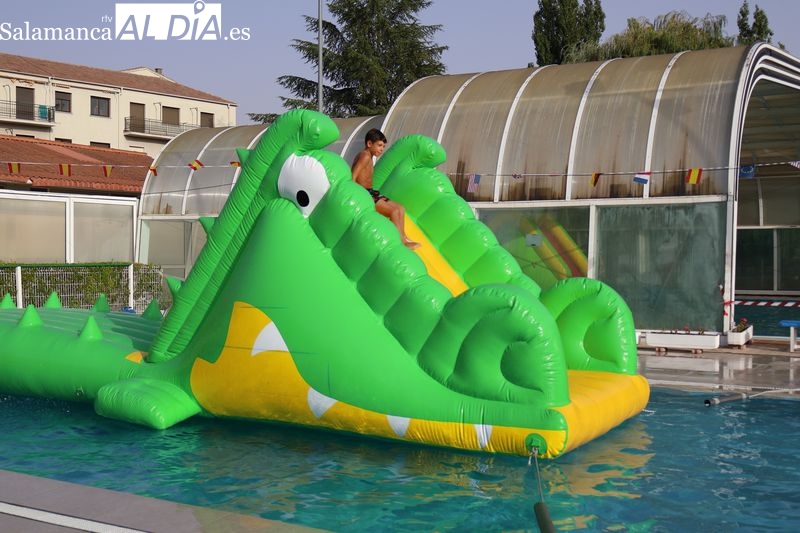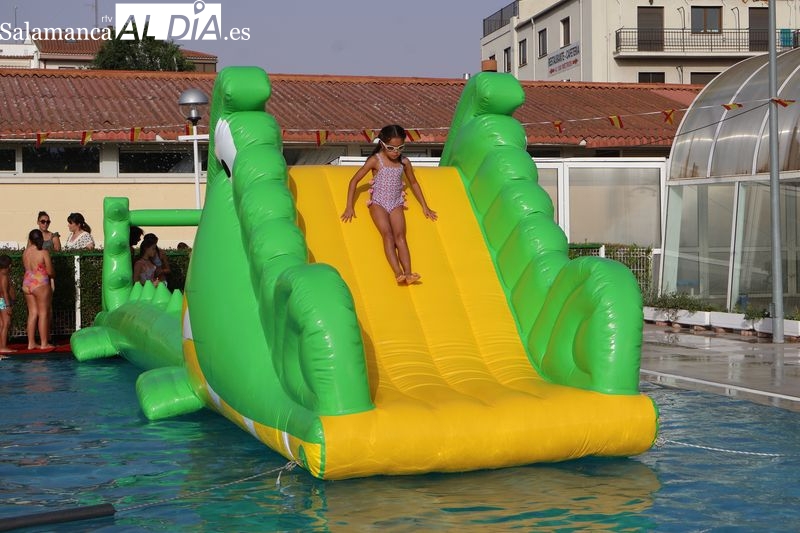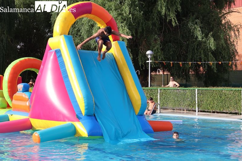 La penúltima tarde de las fiestas de Alba de Tormes estuvo marcada por el ambiente familiar y la diversión en torno al agua. Desde las 16:30 y hasta las 19:30 horas, las piscinas municipales acogieron los ya tradicionales hinchables acuáticos, que volvieron a ser uno de los grandes atractivos para niños y jóvenes. La afluencia superó las expectativas: en torno a 1.300 personas pasaron por la instalación a lo largo de la jornada, lo que supone unas 200 más que en la edición anterior.