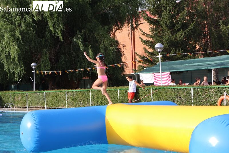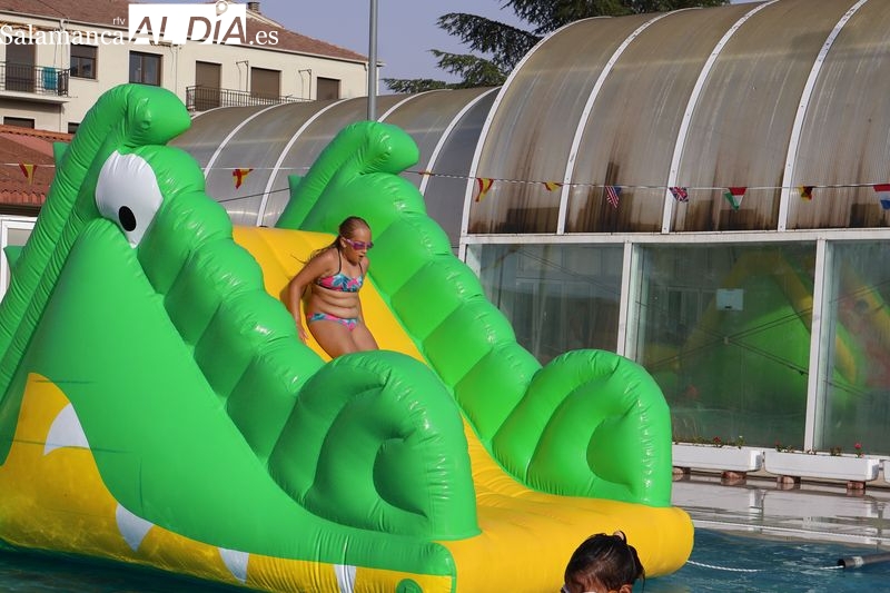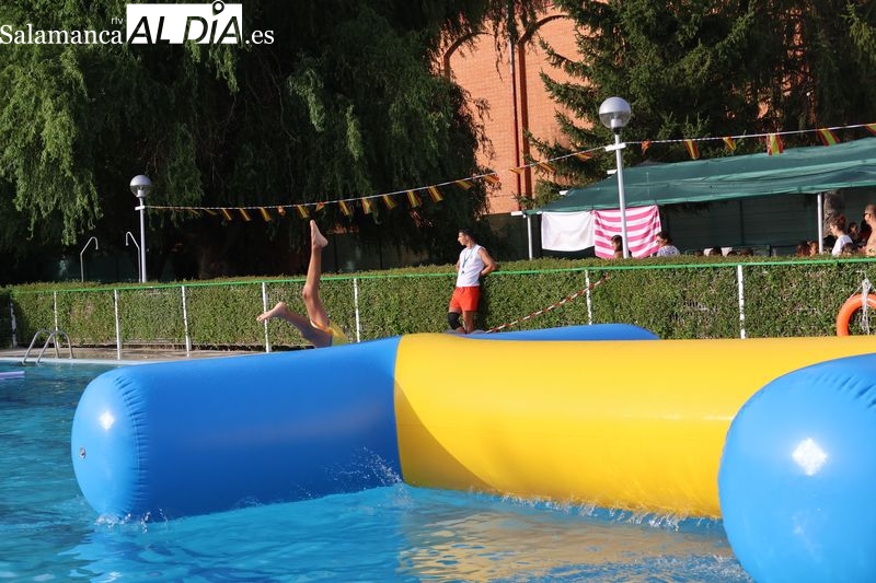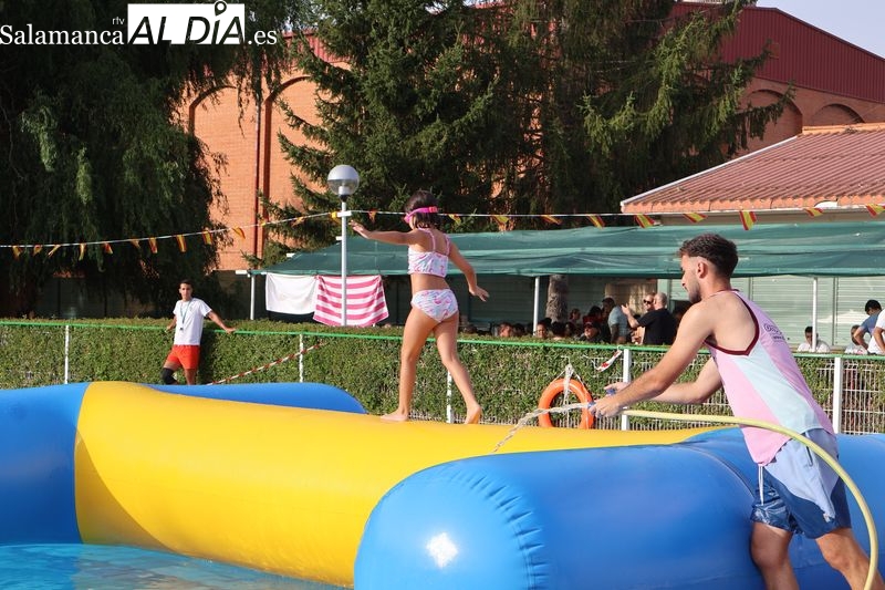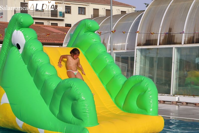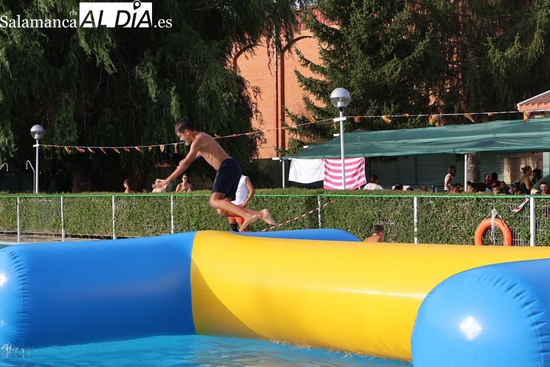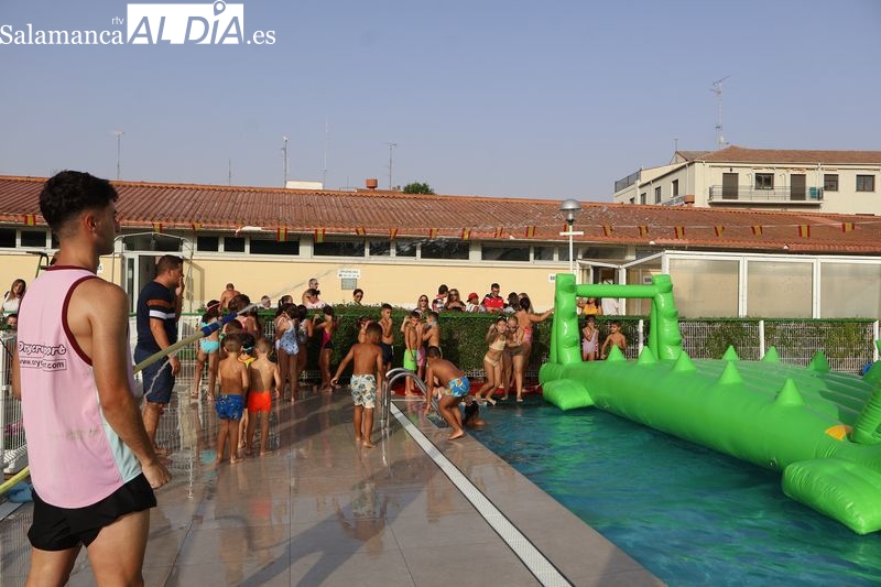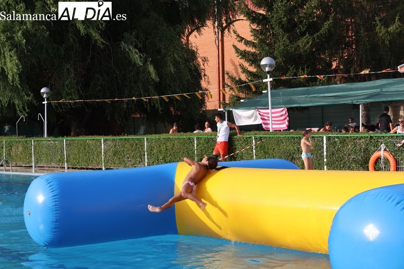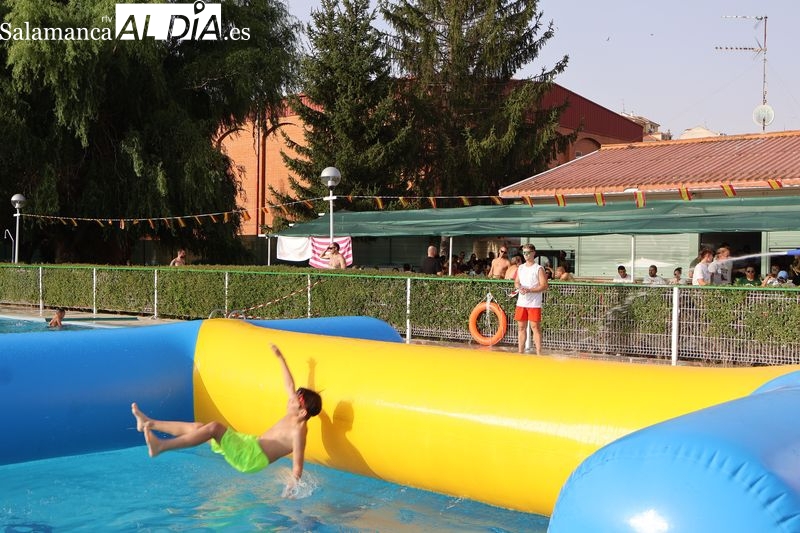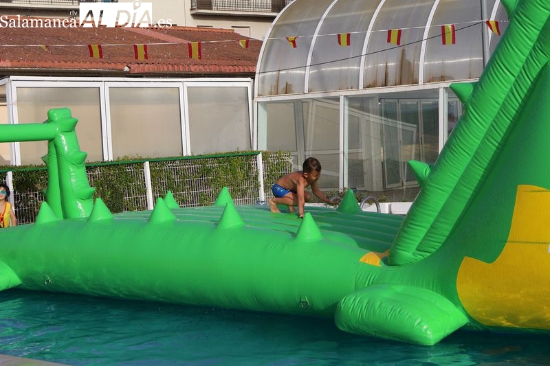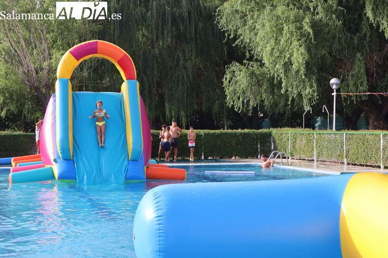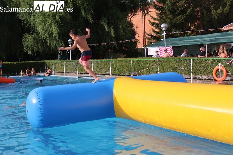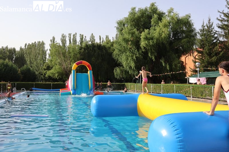 La penúltima tarde de las fiestas de Alba de Tormes estuvo marcada por el ambiente familiar y la diversión en torno al agua. Desde las 16:30 y hasta las 19:30 horas, las piscinas municipales acogieron los ya tradicionales hinchables acuáticos, que volvieron a ser uno de los grandes atractivos para niños y jóvenes. La afluencia superó las expectativas: en torno a 1.300 personas pasaron por la instalación a lo largo de la jornada, lo que supone unas 200 más que en la edición anterior.