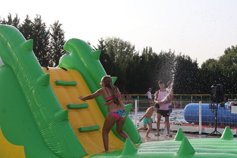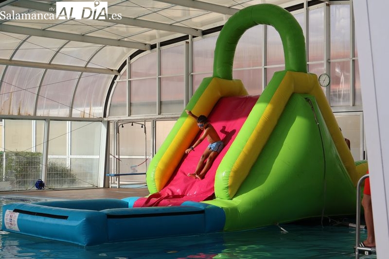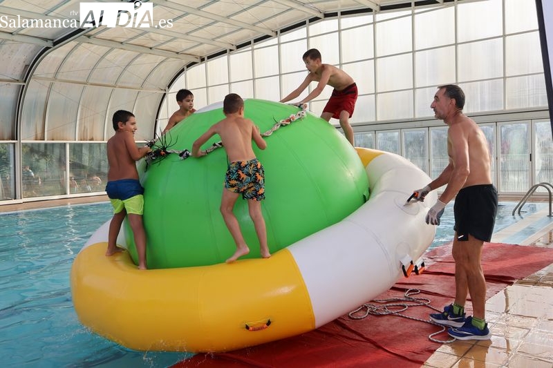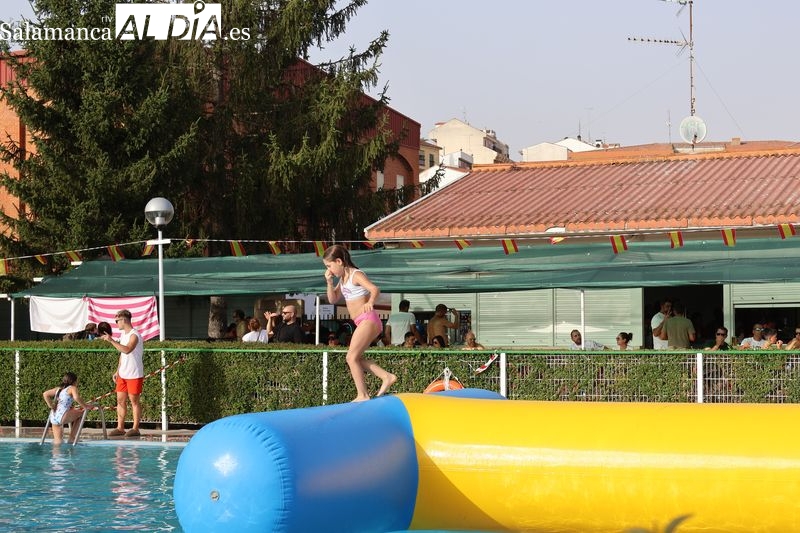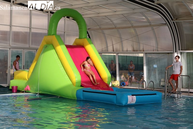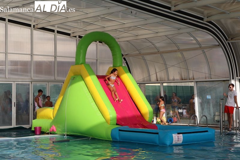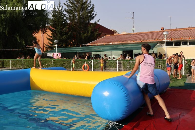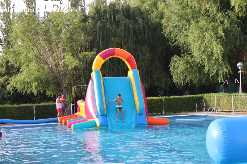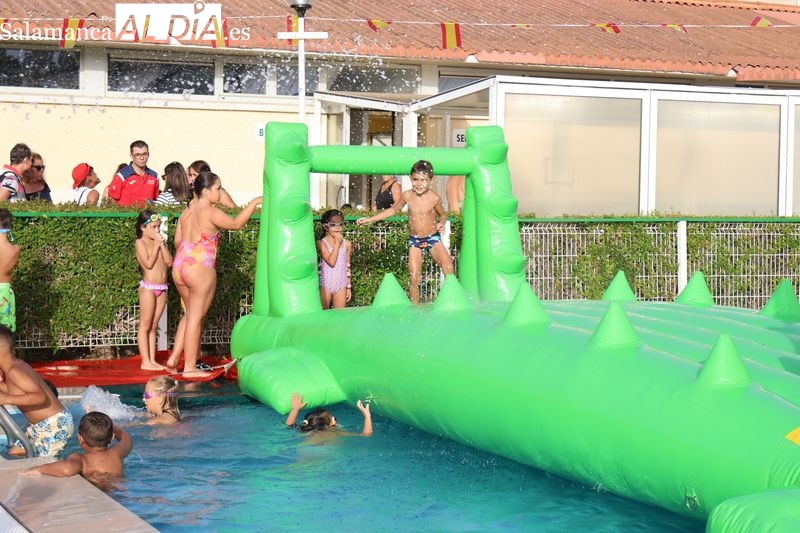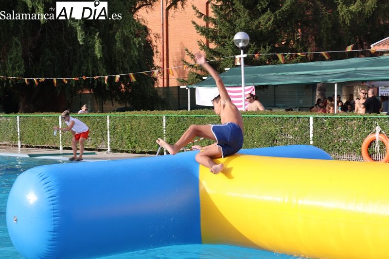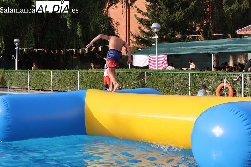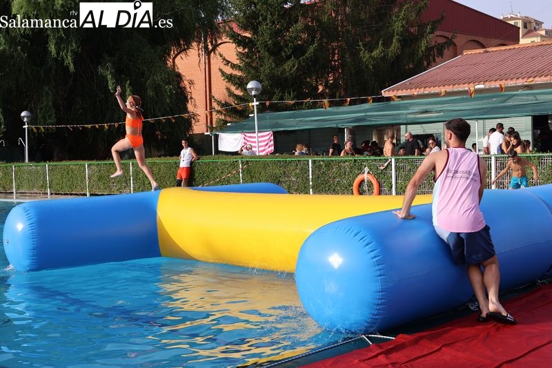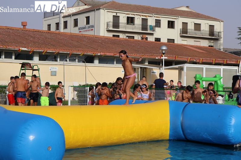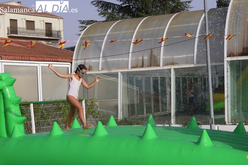La penúltima tarde de las fiestas de Alba de Tormes estuvo marcada por el ambiente familiar y la diversión en torno al agua. Desde las 16:30 y hasta las 19:30 horas, las piscinas municipales acogieron los ya tradicionales hinchables acuáticos, que volvieron a ser uno de los grandes atractivos para niños y jóvenes. La afluencia superó las expectativas: en torno a 1.300 personas pasaron por la instalación a lo largo de la jornada, lo que supone unas 200 más que en la edición anterior.