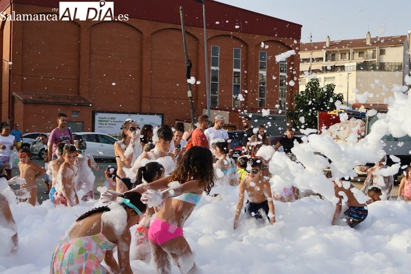 Hinchables acuáticos y fiesta de la espuma llenan de diversión la penúltima tarde festiva en Alba de Tormes