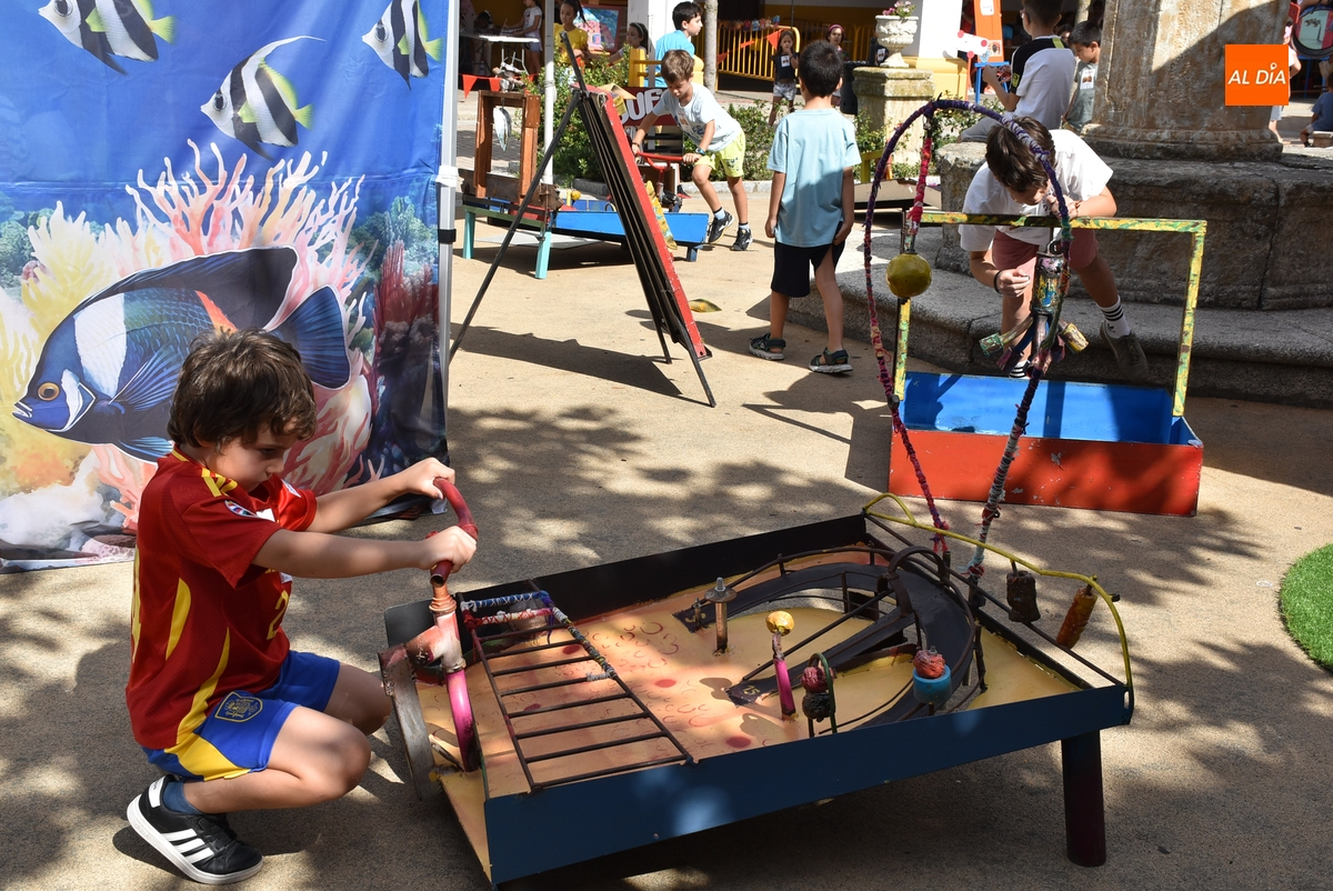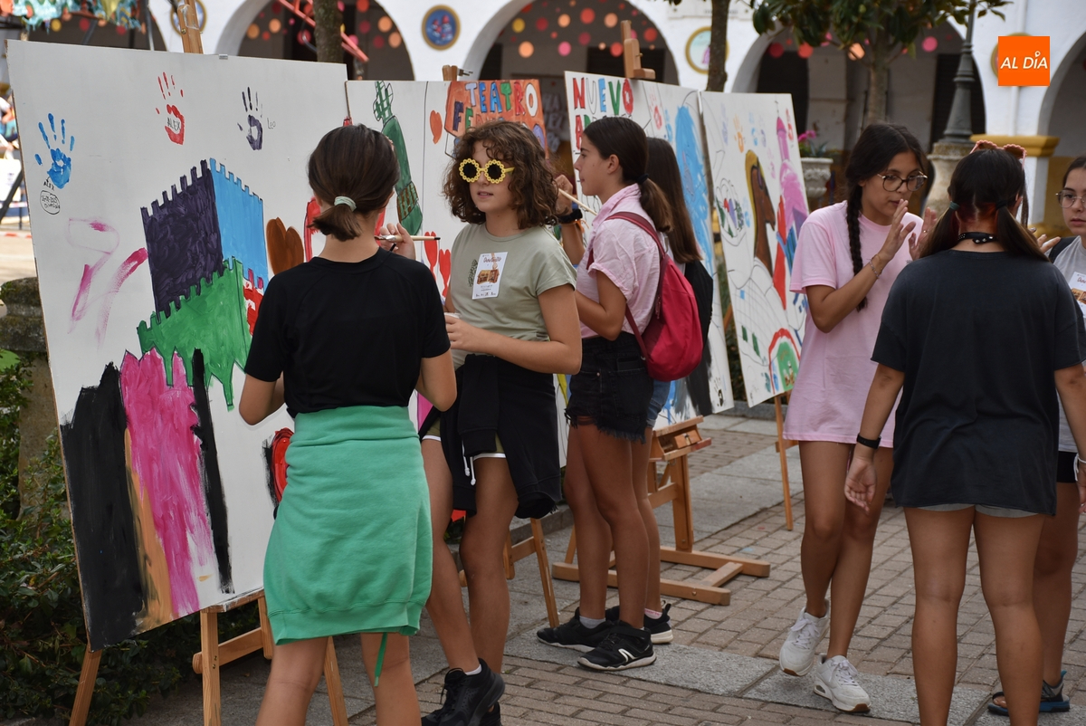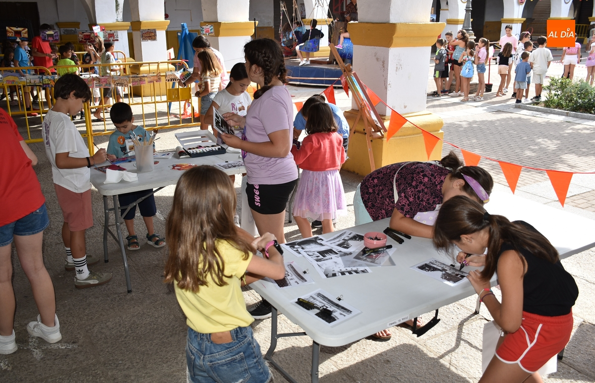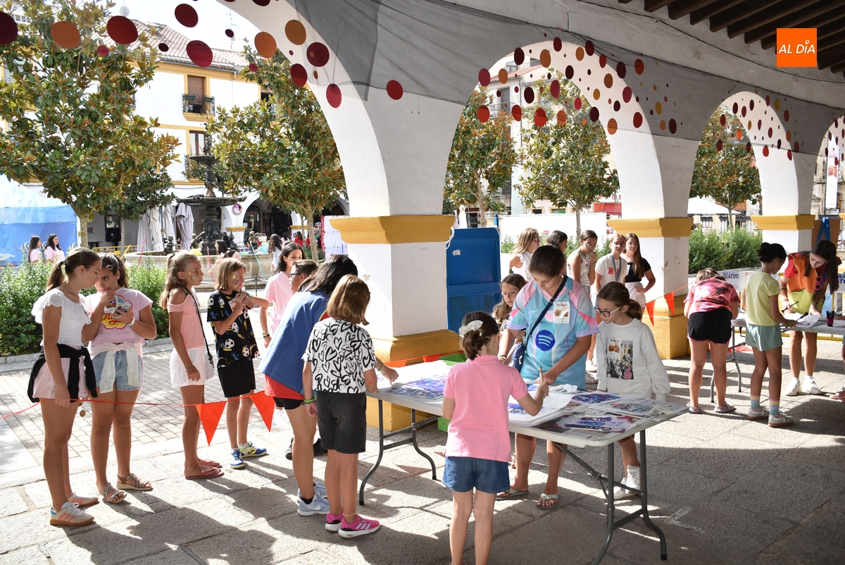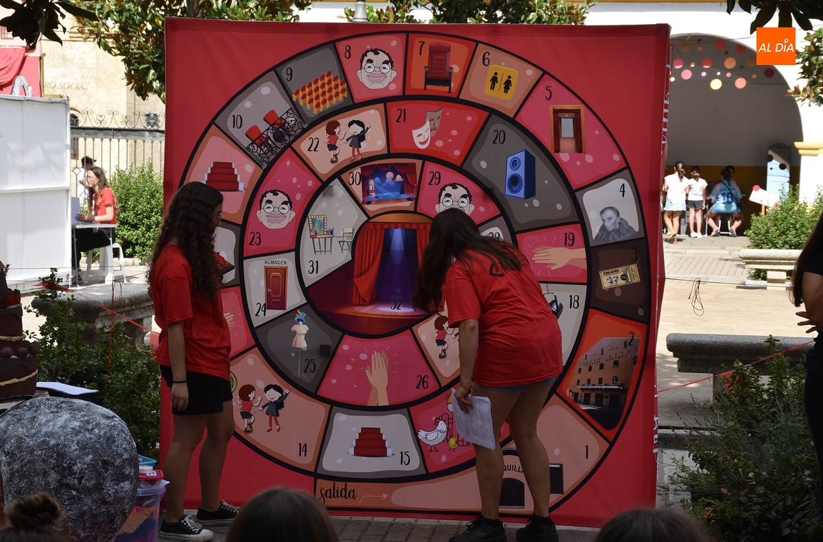 En las cercanías de este taller estaba situado en esta mañana inaugural el Gran Juego sobre el Teatro Nuevo Fernando Arrabal, en el que los niños deben contestar preguntas en torno al recinto, para ir avanzando casillas por el tablero gigante que se ha diseñado para la ocasión.