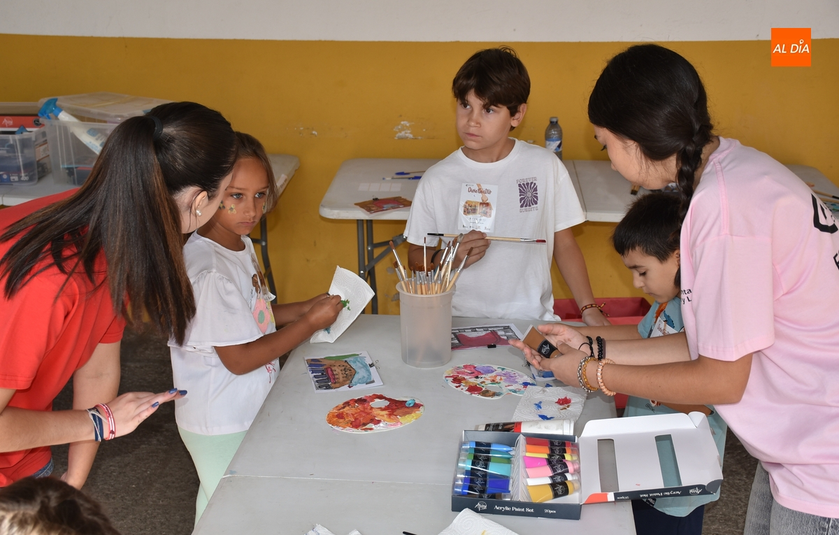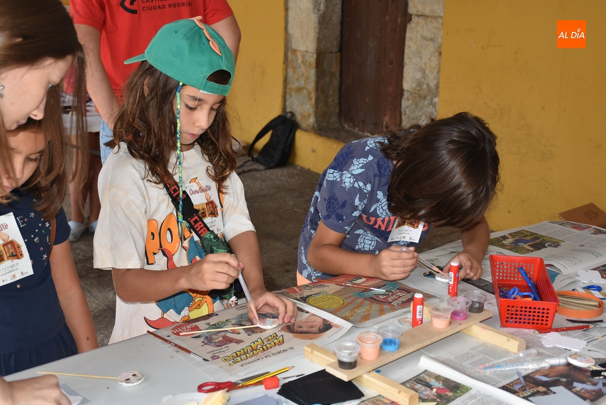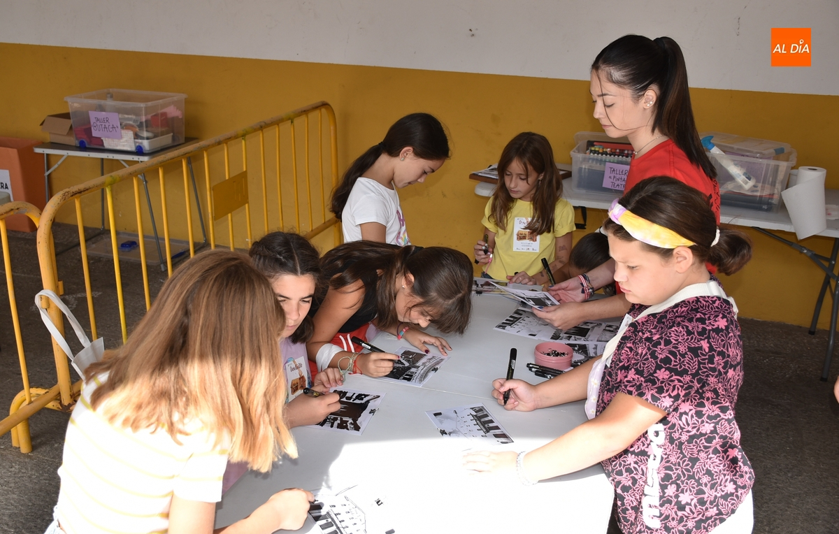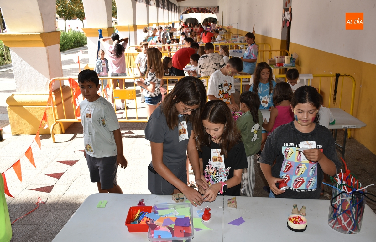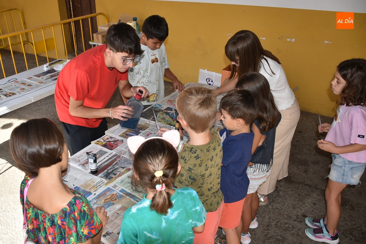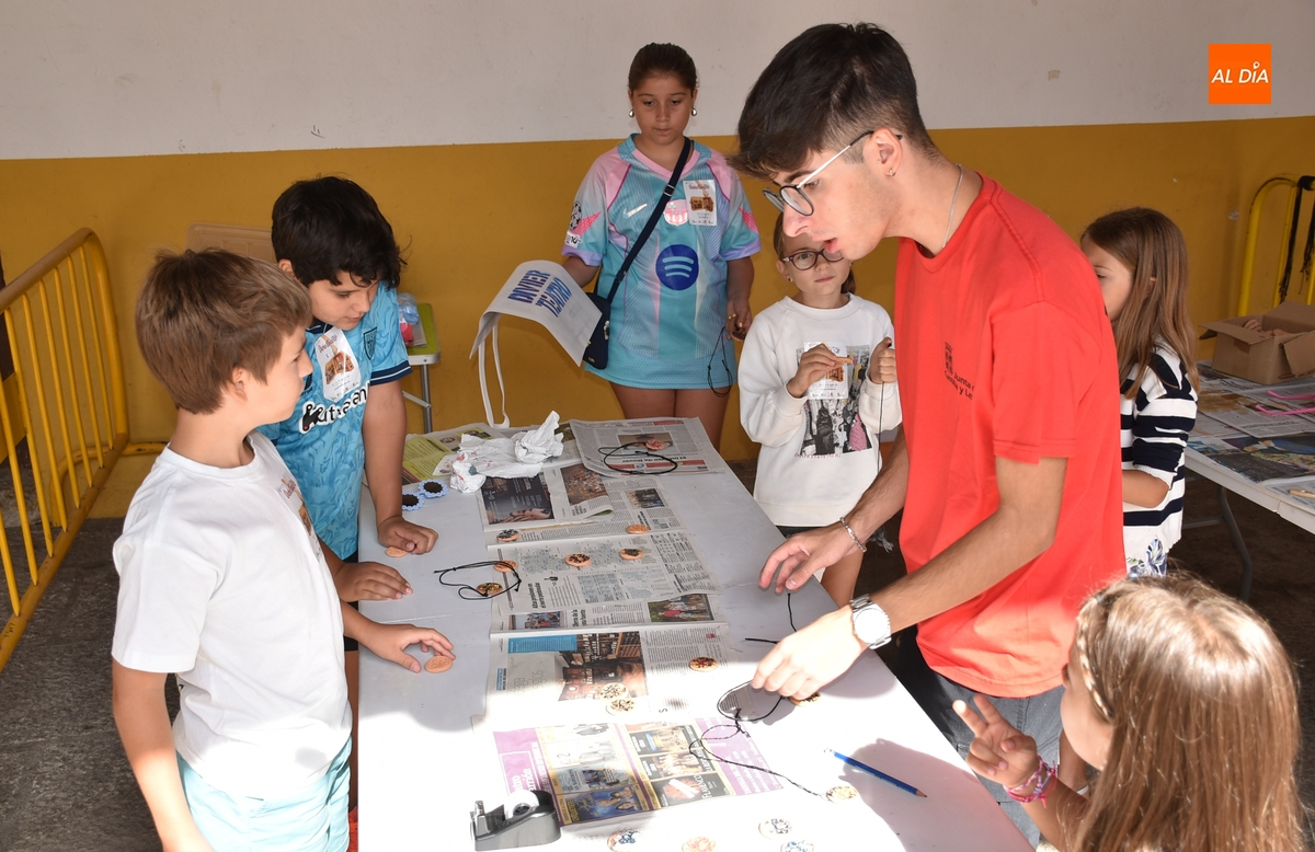 En las cercanías de este taller estaba situado en esta mañana inaugural el Gran Juego sobre el Teatro Nuevo Fernando Arrabal, en el que los niños deben contestar preguntas en torno al recinto, para ir avanzando casillas por el tablero gigante que se ha diseñado para la ocasión.