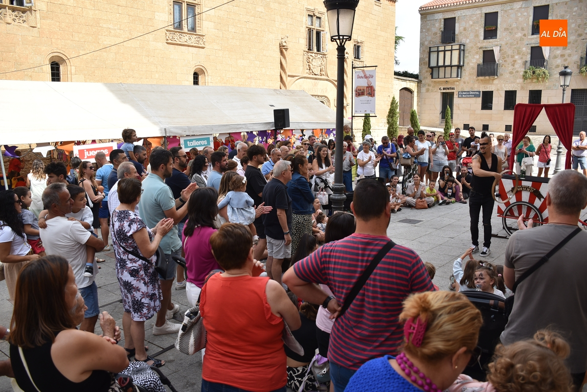 Las plazuelas del Buen Alcalde y del Conde de Ciudad Rodrigo vivieron en la mañana del miércoles la primera sesión del programa de animación infantil de la Feria de Teatro, el Divierteatro, que este año se suma a la celebración del 125 Aniversario del Teatro Nuevo Fernando Arrabal.