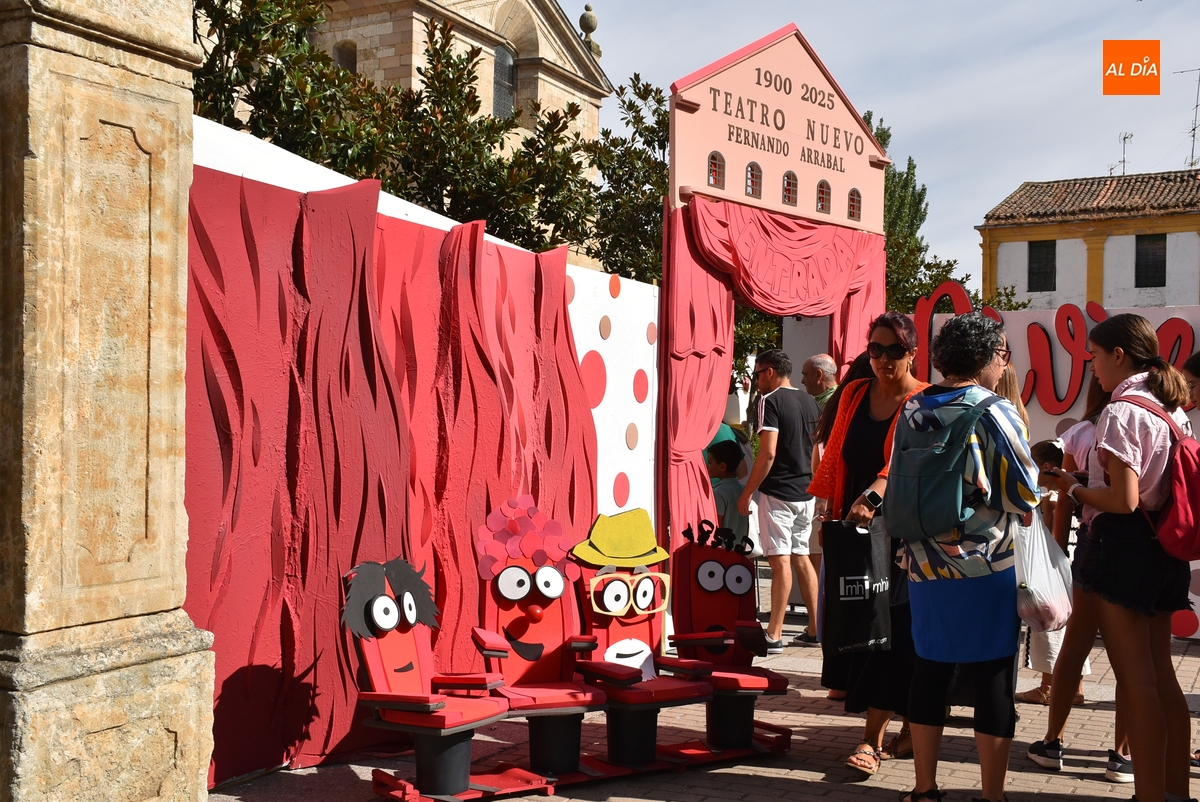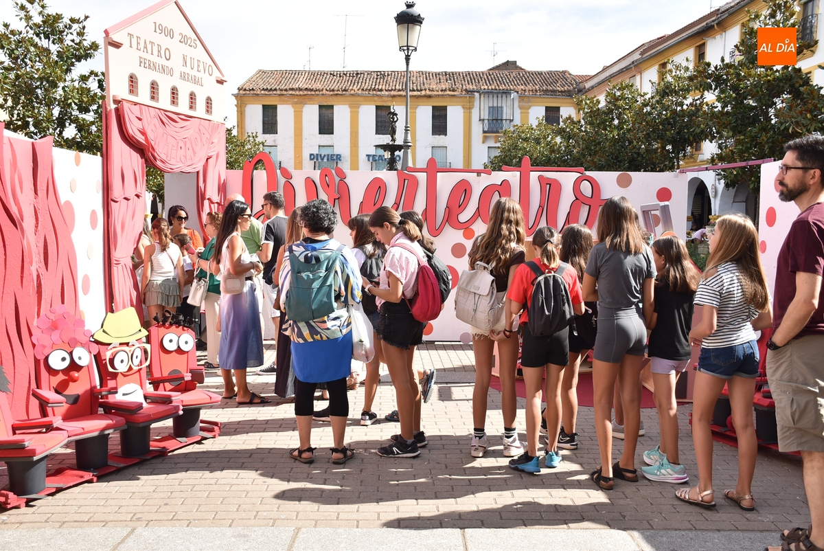 Este cumpleaños se empieza a conmemorar desde la misma entrada a la Plazuela del Buen Alcalde por la Diviertaquilla, que además de una recreación de la fachada del Teatro, cuenta con un teatro abierto a modo de ‘casa’ (como lugar de encuentro), unas butacas y hasta una figura de Fernando Arrabal, que es protagonista de varias de las actividades preparadas en la Plazuela.