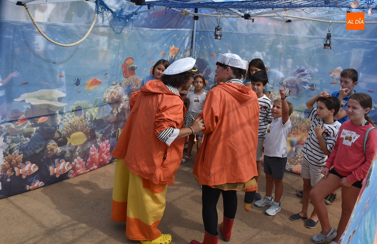 Por otro lado, la compañía burgalesa Innovarte Creaciones Artísticas está llevando a cabo la propuesta Lorenzo de pesca con Catalina, que en su primera parte transforma a los niños que van pasando en integrantes de una tripulación, que a continuación rodean la fuente de la Plazuela para pescar todos los peces que pueden.