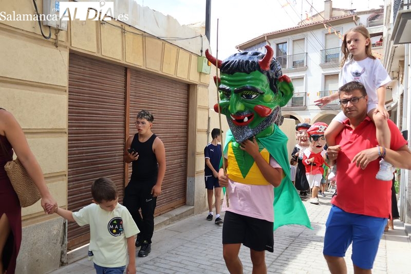 Los personajes de cartón piedra fueron los encargados de provocar carreras, risas y algún que otro susto entre los más pequeños, que disfrutaron corriendo delante y detrás de ellos al ritmo de la charanga.