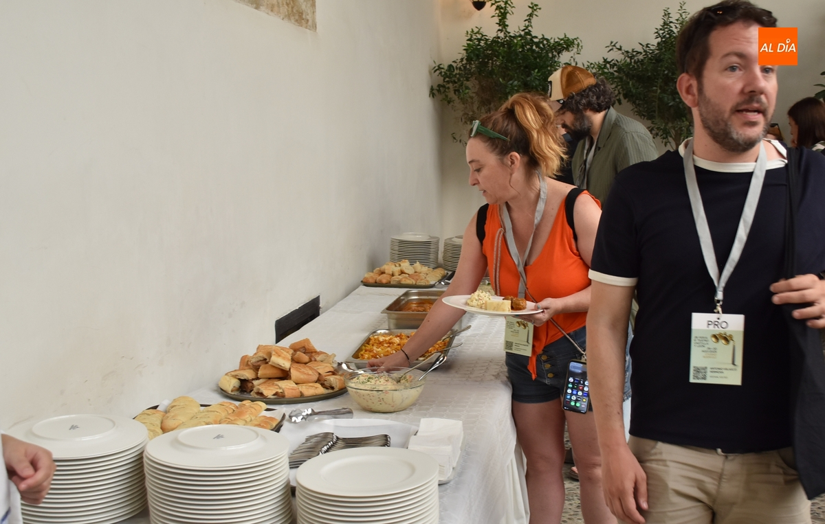 Aunque se mantiene la fórmula habitual en el Palacio de Montarco de la comida tipo buffet, con varias mesas con platos donde los profesionales acreditados –y que han pagado para ello- pueden ir cogiendo lo que quieran, en esta ocasión se ha ‘cambiado’ el nombre clásico de vermut teatral –que se usó el año pasado- por el de ‘Aperitivo Teatral’.
