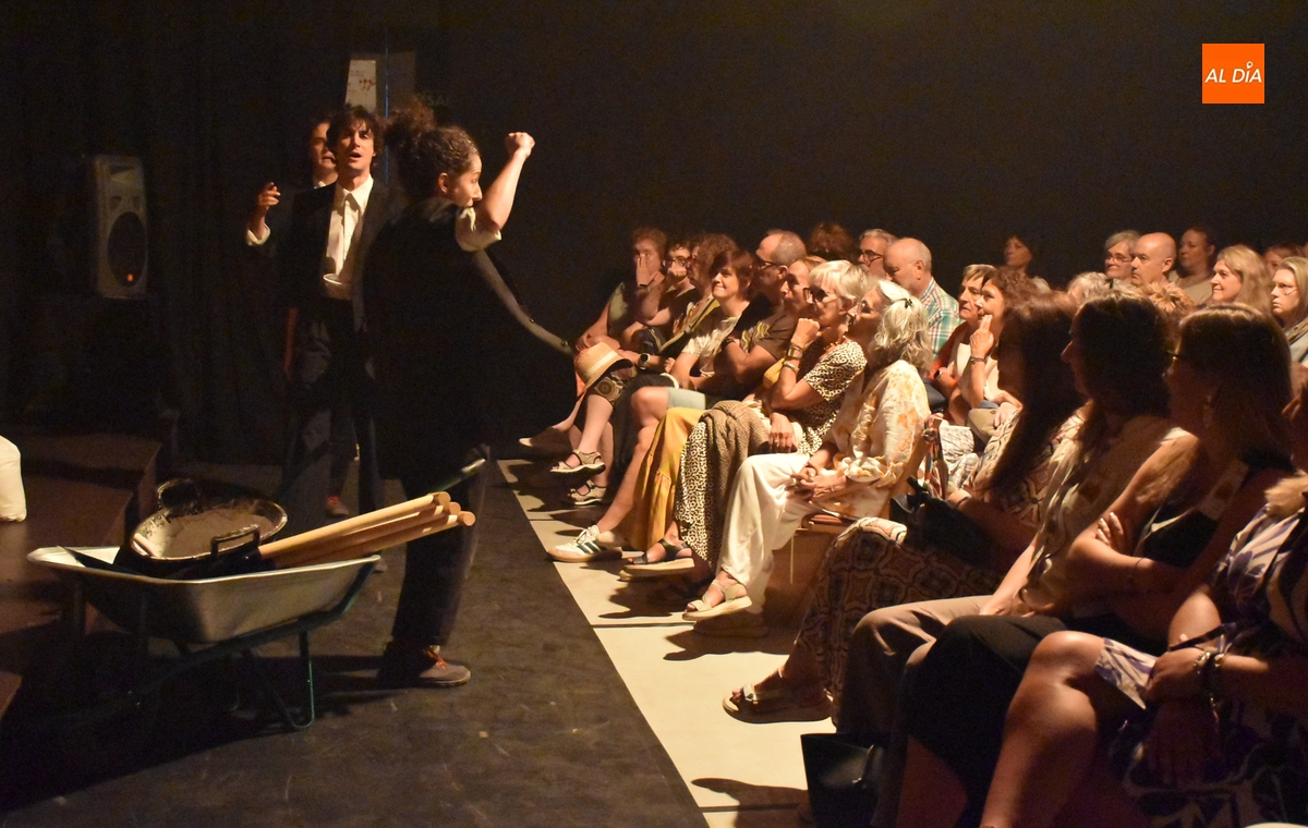 Federico. No hay olvido, ni sueño: carne viva ha sido creado por la dramaturga María San Miguel, quién estuvo acompañada sobre el escenario por Alba Muñoz y Luis Heras (los tres arrancaron la obra entrando en la sala por la puerta de la Avenida de Béjar). Las imágenes corresponden al pase matinal, que registró un lleno total.