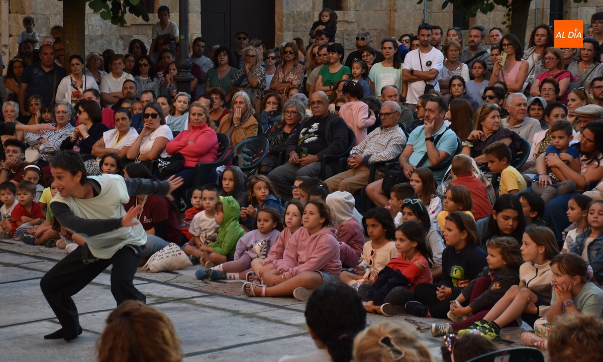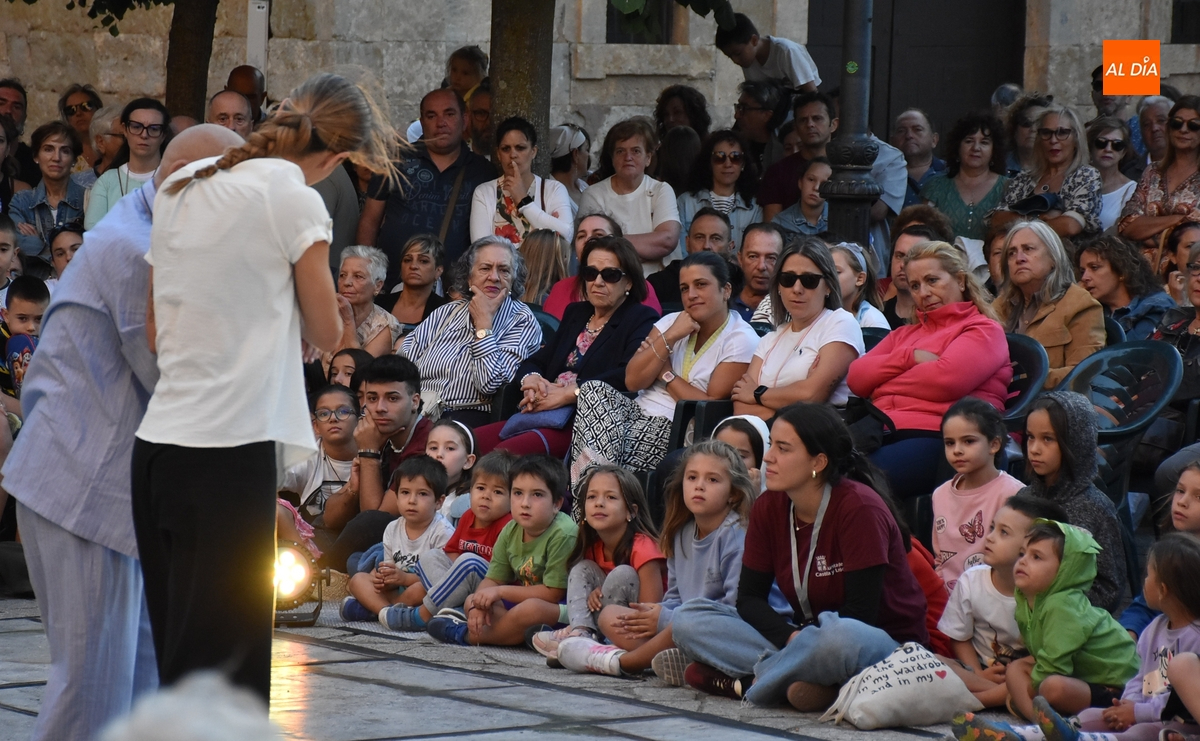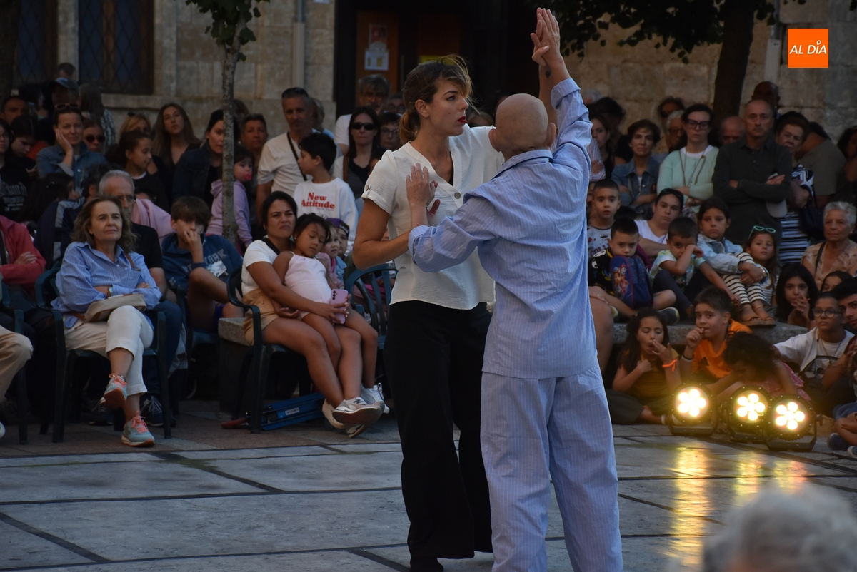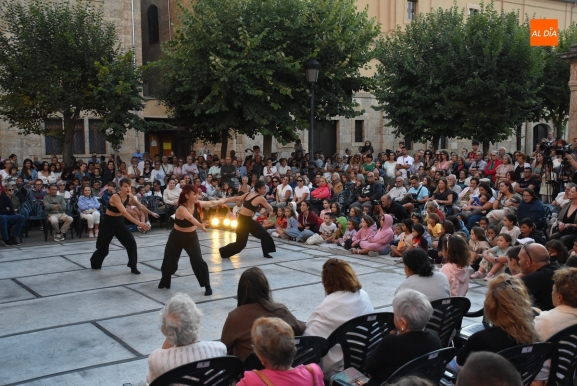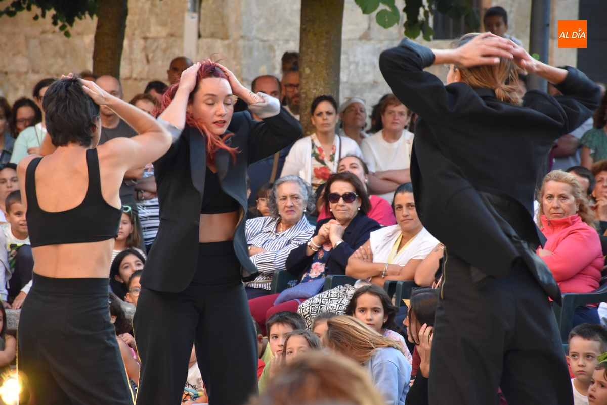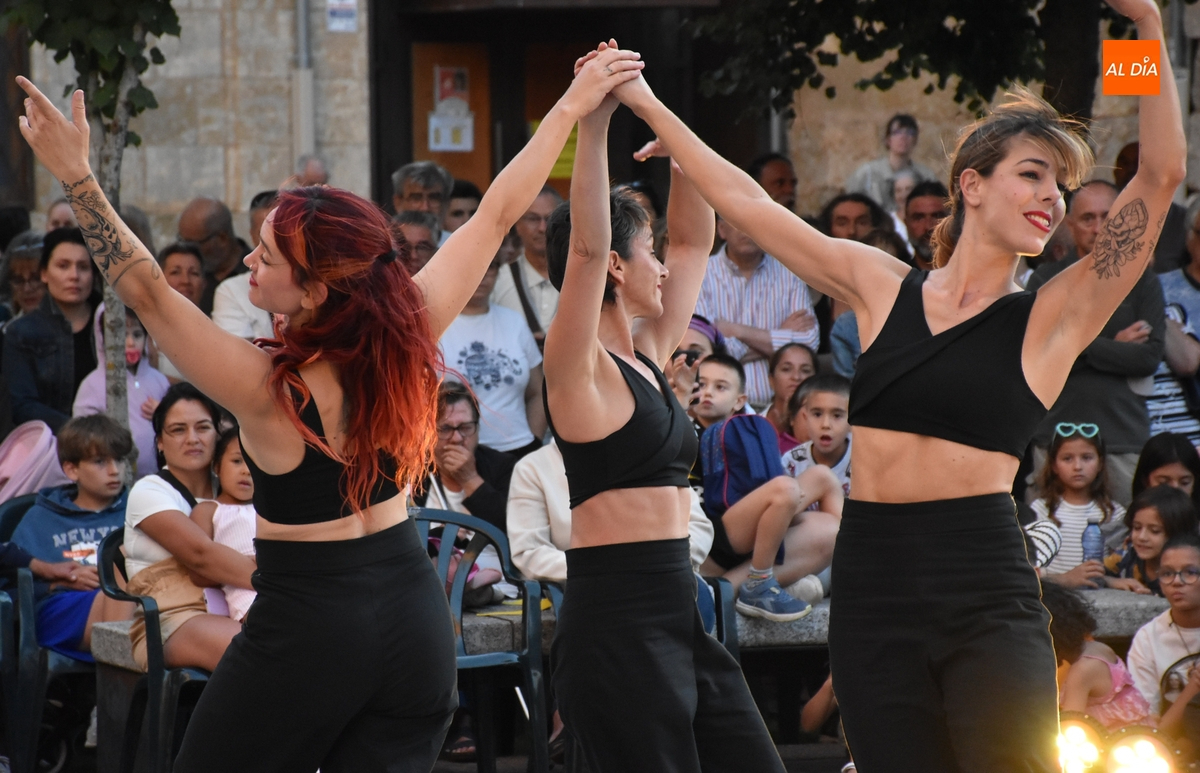 De ahí se pasó a la calle para disfrutar del segundo estreno absoluto de la jornada, también llegado de Burgos: Daydreams, una propuesta de Cidanz Producciones – Ballet Contemporáneo de Burgos, que está protagonizado por tres mujeres (Sara Saiz –que es la coreógrafa y directora-, Leticia Bernardo y Alejandra Miñón), que fueron ofreciendo diversas coreografías con las cuales reivindicaron “asumir lo femenino como una sensibilidad necesaria para mejorar el mundo”.
