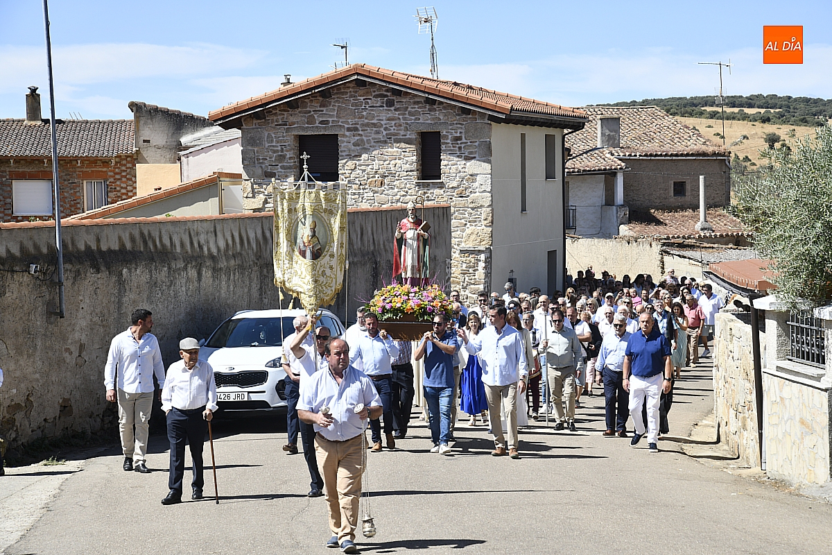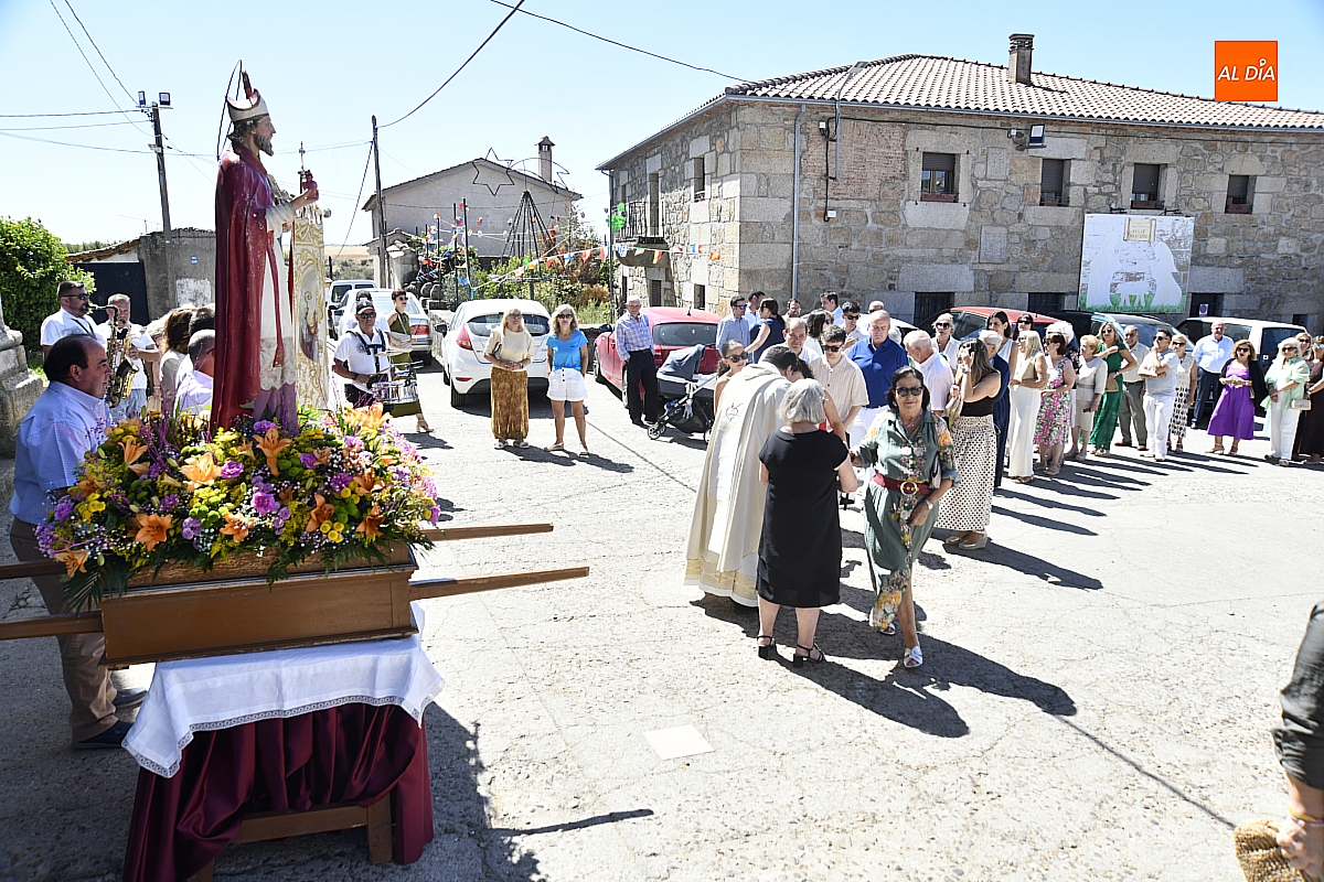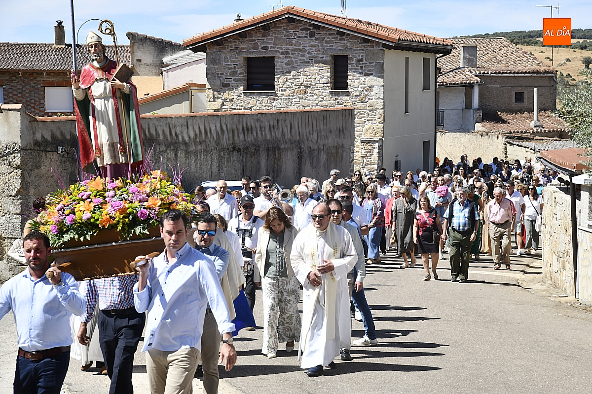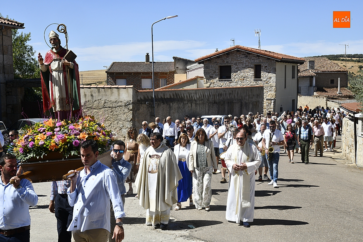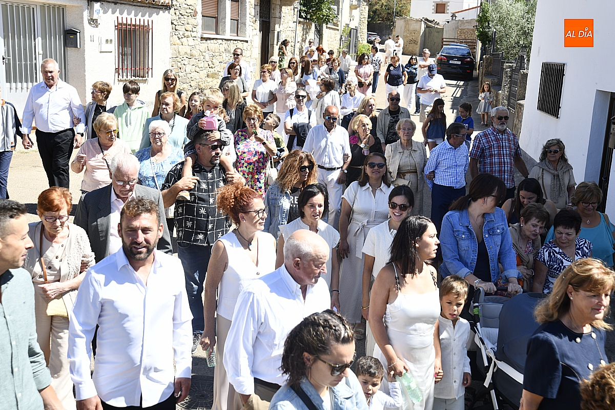 Al mediodía, los vecinos, a quienes se conoce con el afectuoso apelativo de cervatos, acudieron a la iglesia parroquial, engalanados con sus mejores trajes, para participar en la eucaristía oficiada por el párroco Juan Carlos Bernardos. Estuvo acompañado por los sacerdotes Miguel Ángel García y José Sánchez, representantes de los arciprestazgos de La Ribera y El Abadengo, todos ellos pertenecientes a la diócesis de Ciudad Rodrigo. La homilía, centrada en la figura del santo, dio paso a una procesión que recorrió las calles del pueblo, entre el tañido jubiloso de las campanas y las notas festivas de la charanga mirobrigense Al Rojo.