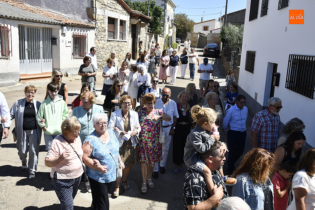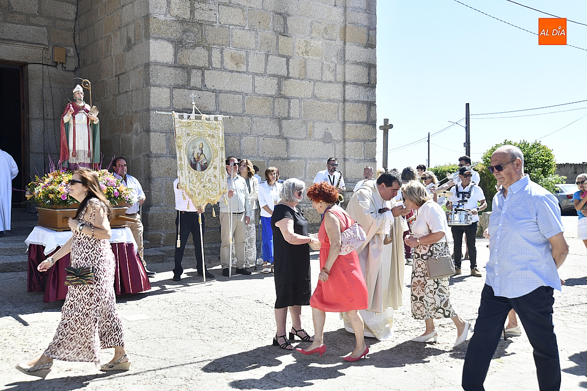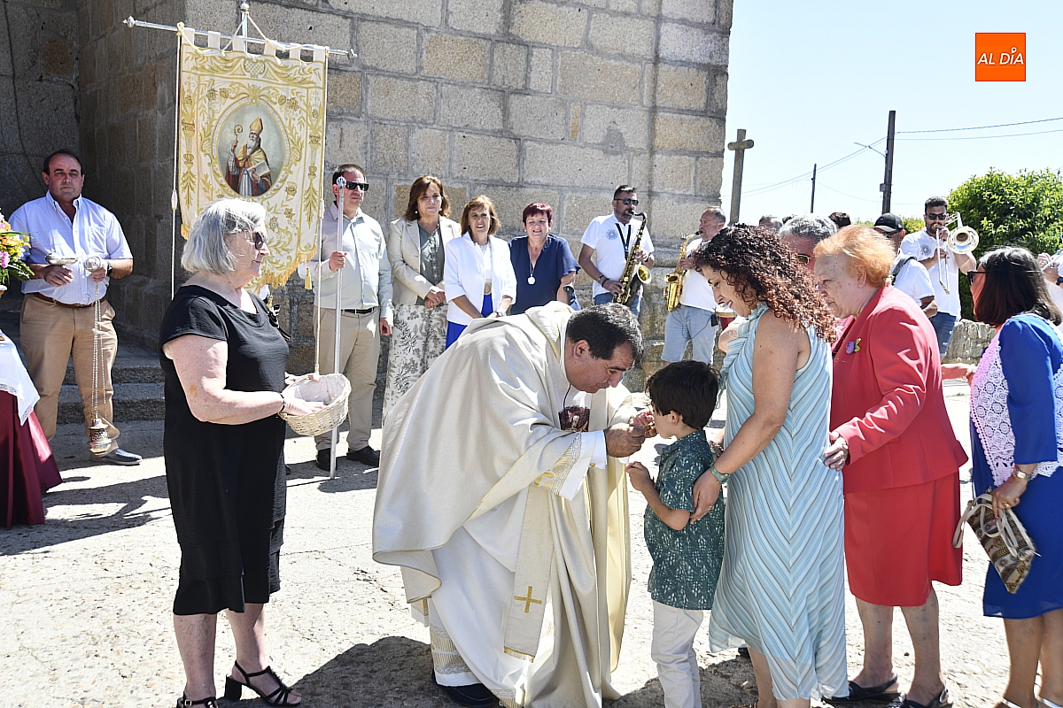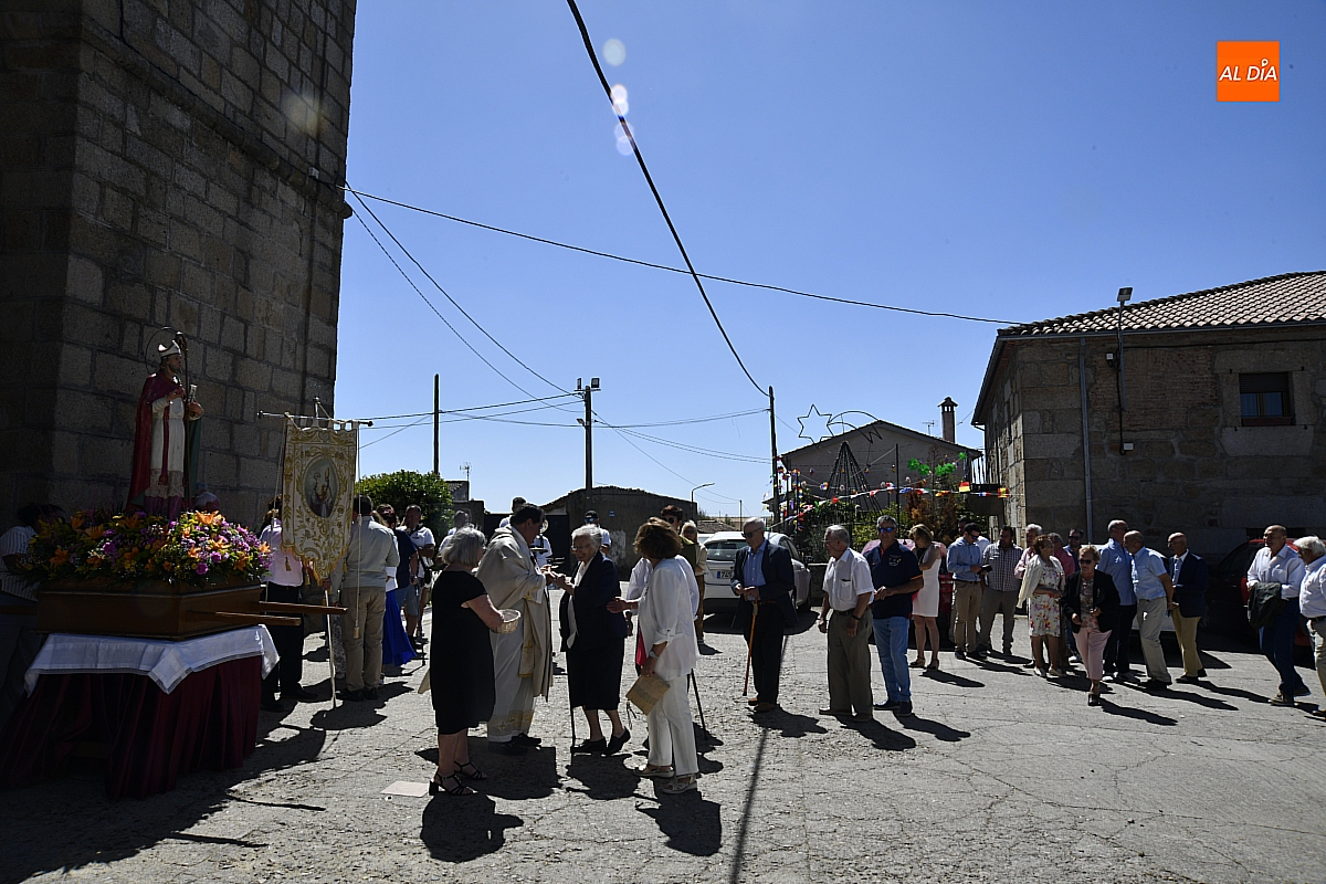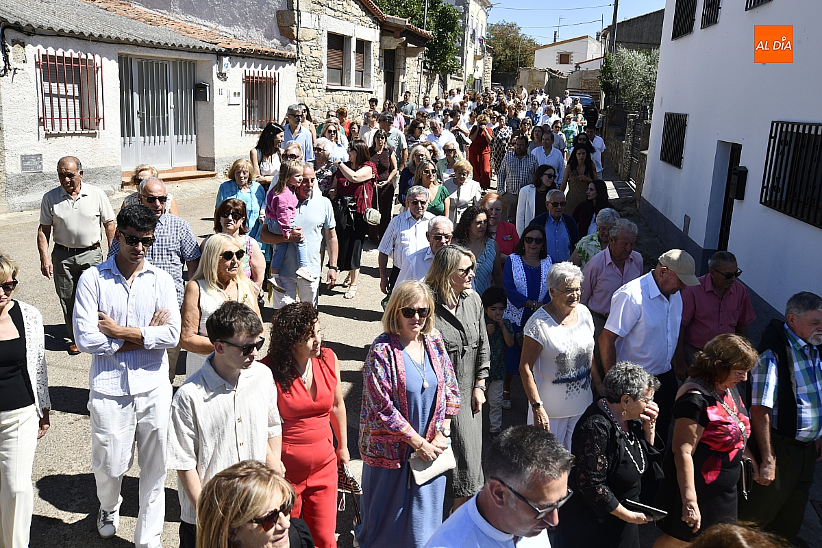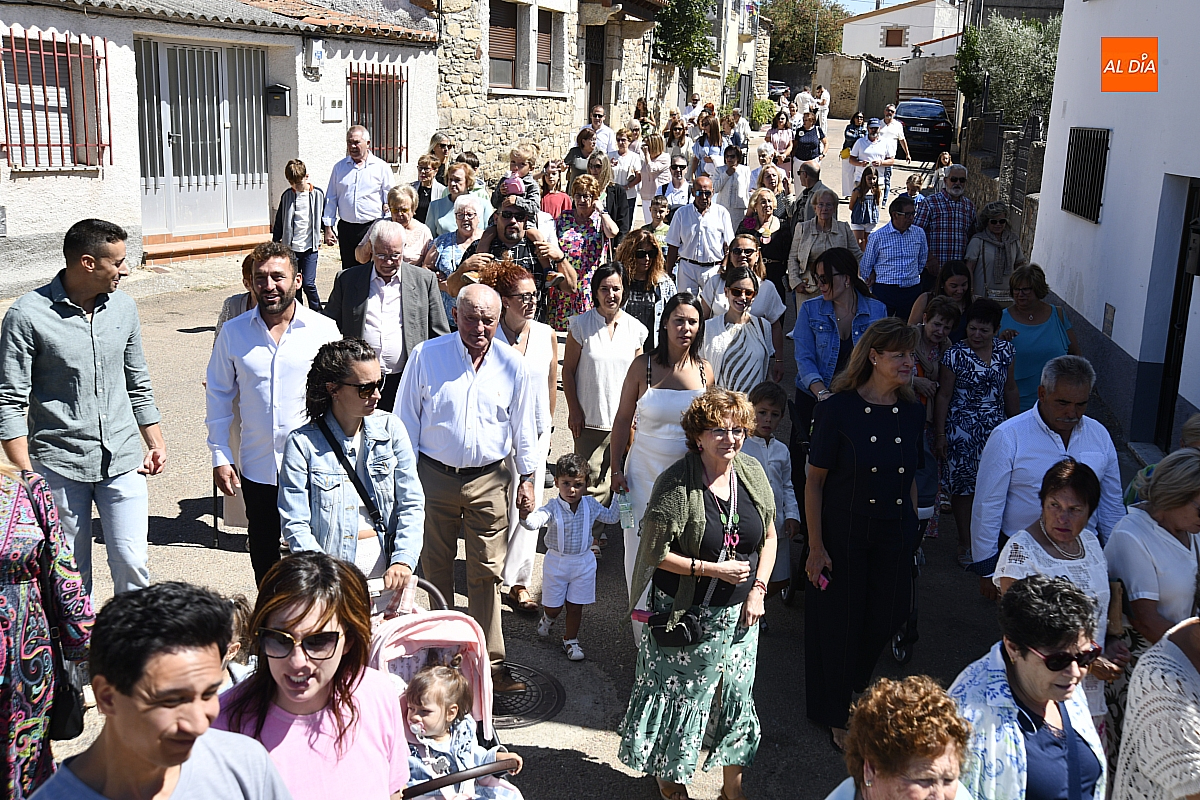 Al mediodía, los vecinos, a quienes se conoce con el afectuoso apelativo de cervatos, acudieron a la iglesia parroquial, engalanados con sus mejores trajes, para participar en la eucaristía oficiada por el párroco Juan Carlos Bernardos. Estuvo acompañado por los sacerdotes Miguel Ángel García y José Sánchez, representantes de los arciprestazgos de La Ribera y El Abadengo, todos ellos pertenecientes a la diócesis de Ciudad Rodrigo. La homilía, centrada en la figura del santo, dio paso a una procesión que recorrió las calles del pueblo, entre el tañido jubiloso de las campanas y las notas festivas de la charanga mirobrigense Al Rojo.