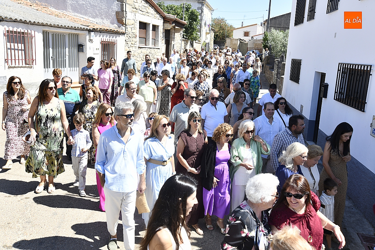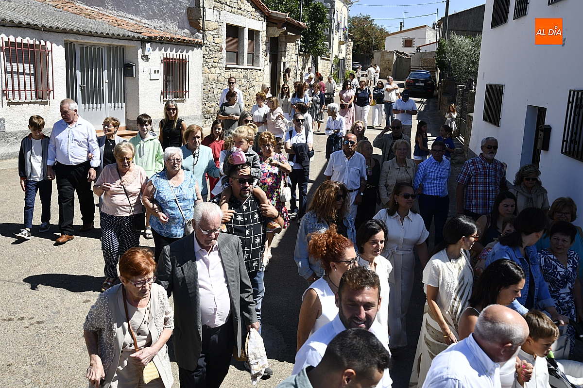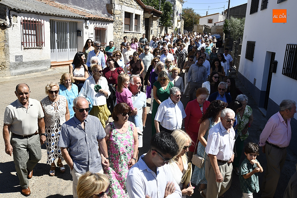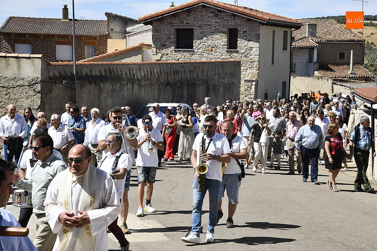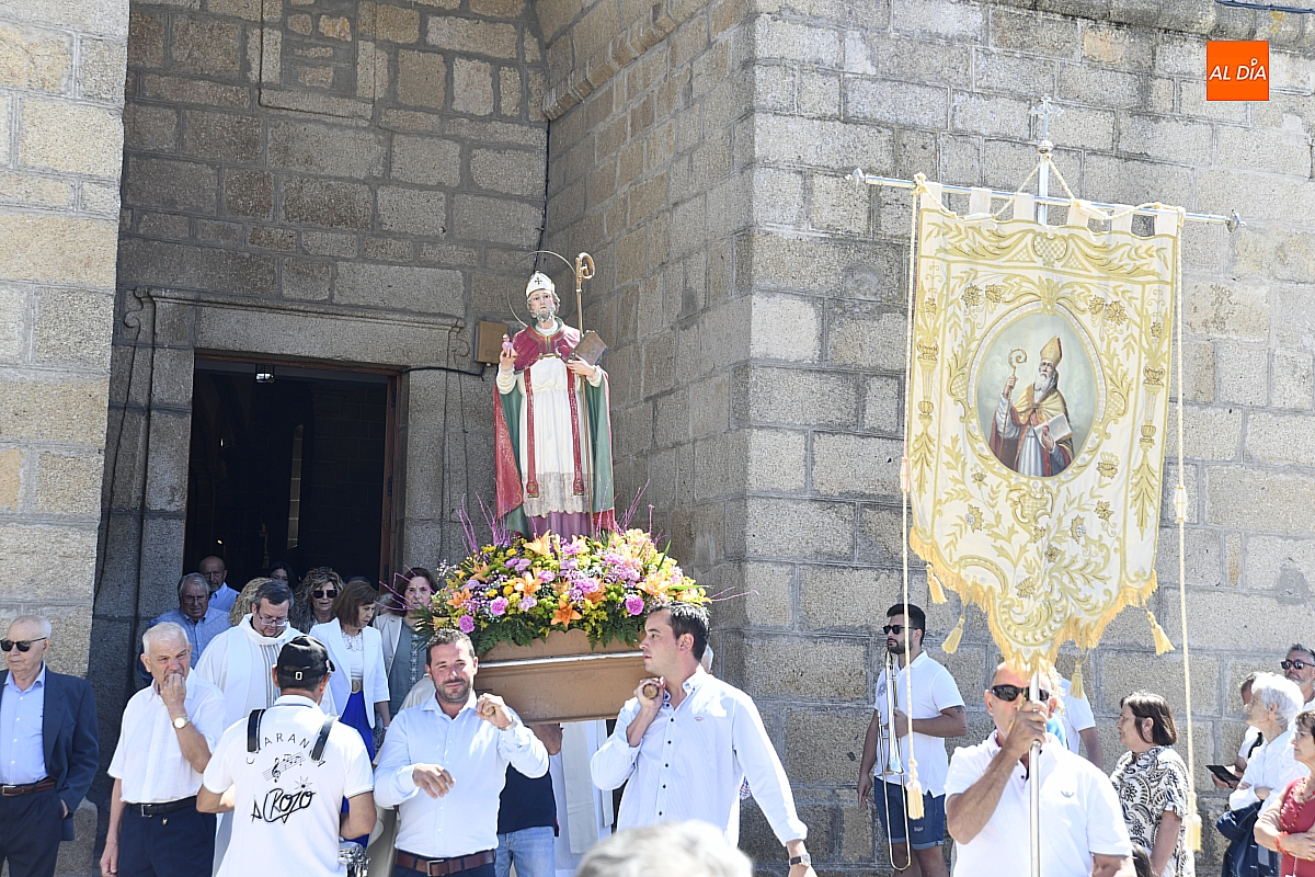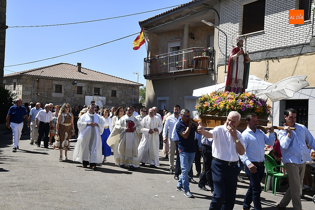 Al mediodía, los vecinos, a quienes se conoce con el afectuoso apelativo de cervatos, acudieron a la iglesia parroquial, engalanados con sus mejores trajes, para participar en la eucaristía oficiada por el párroco Juan Carlos Bernardos. Estuvo acompañado por los sacerdotes Miguel Ángel García y José Sánchez, representantes de los arciprestazgos de La Ribera y El Abadengo, todos ellos pertenecientes a la diócesis de Ciudad Rodrigo. La homilía, centrada en la figura del santo, dio paso a una procesión que recorrió las calles del pueblo, entre el tañido jubiloso de las campanas y las notas festivas de la charanga mirobrigense Al Rojo.