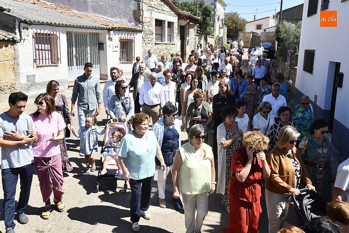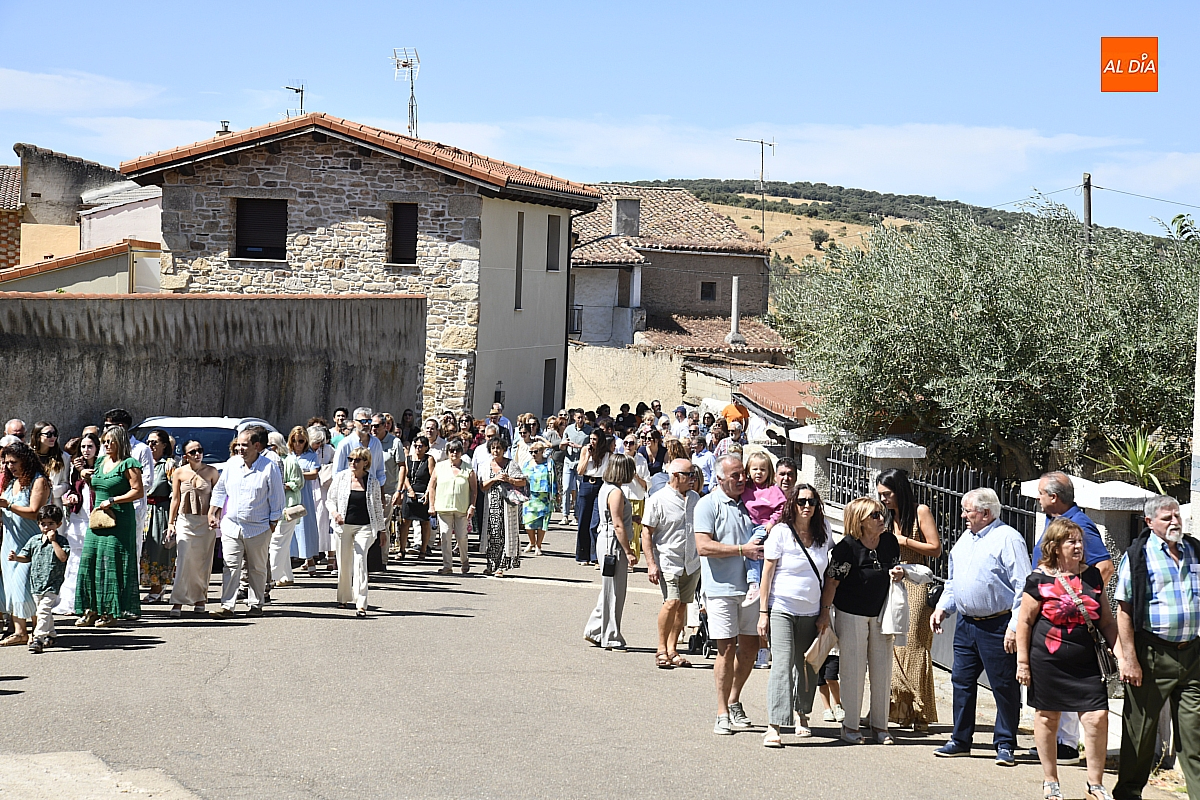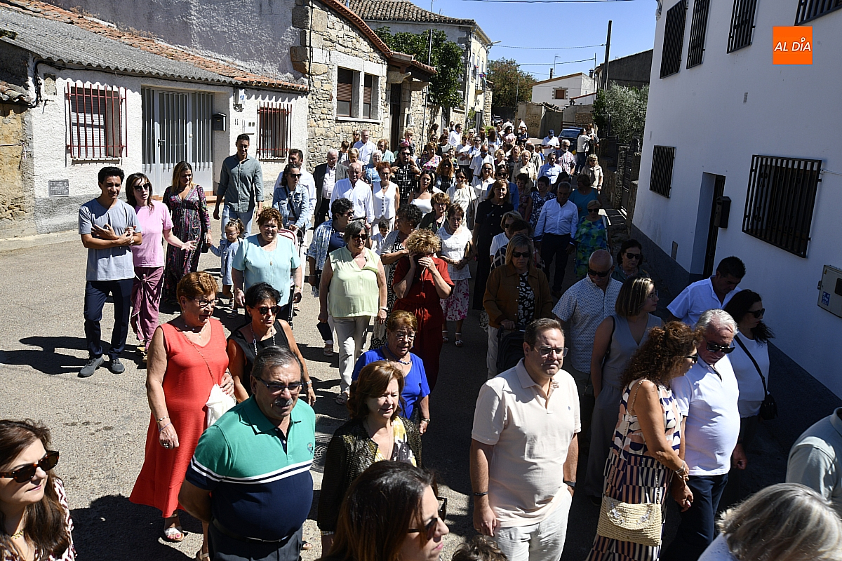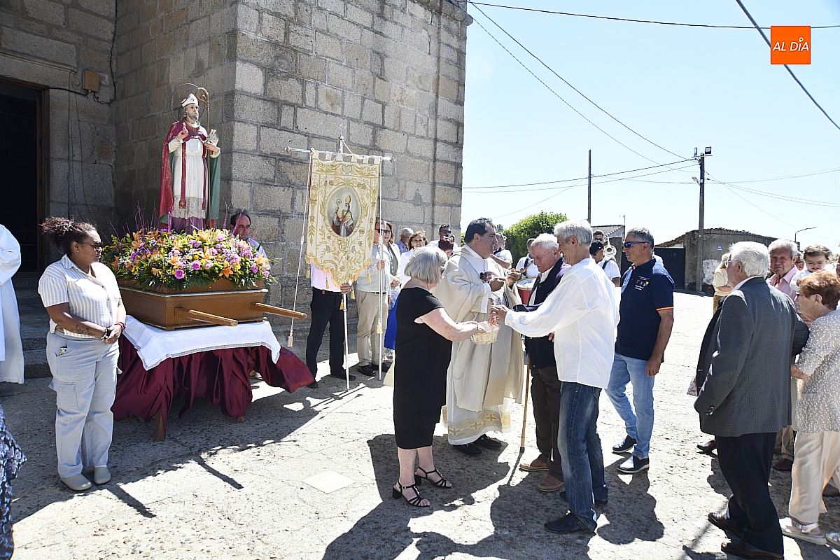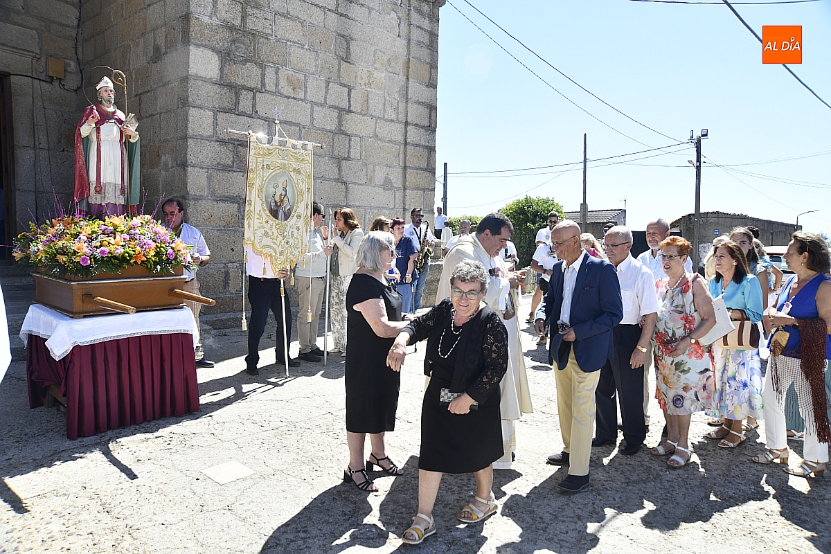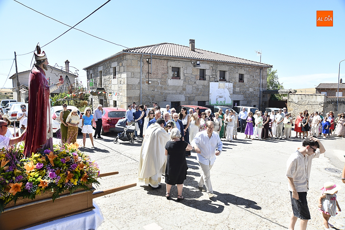 Al mediodía, los vecinos, a quienes se conoce con el afectuoso apelativo de cervatos, acudieron a la iglesia parroquial, engalanados con sus mejores trajes, para participar en la eucaristía oficiada por el párroco Juan Carlos Bernardos. Estuvo acompañado por los sacerdotes Miguel Ángel García y José Sánchez, representantes de los arciprestazgos de La Ribera y El Abadengo, todos ellos pertenecientes a la diócesis de Ciudad Rodrigo. La homilía, centrada en la figura del santo, dio paso a una procesión que recorrió las calles del pueblo, entre el tañido jubiloso de las campanas y las notas festivas de la charanga mirobrigense Al Rojo.