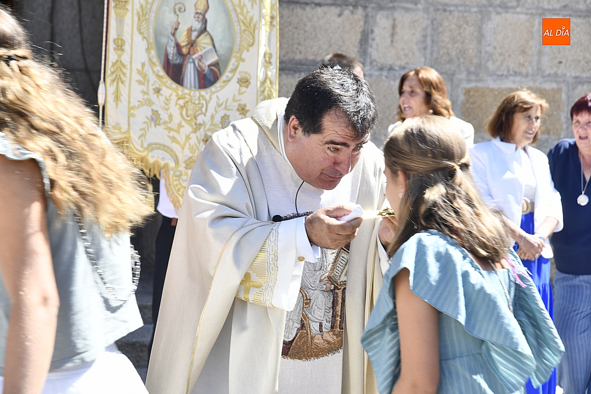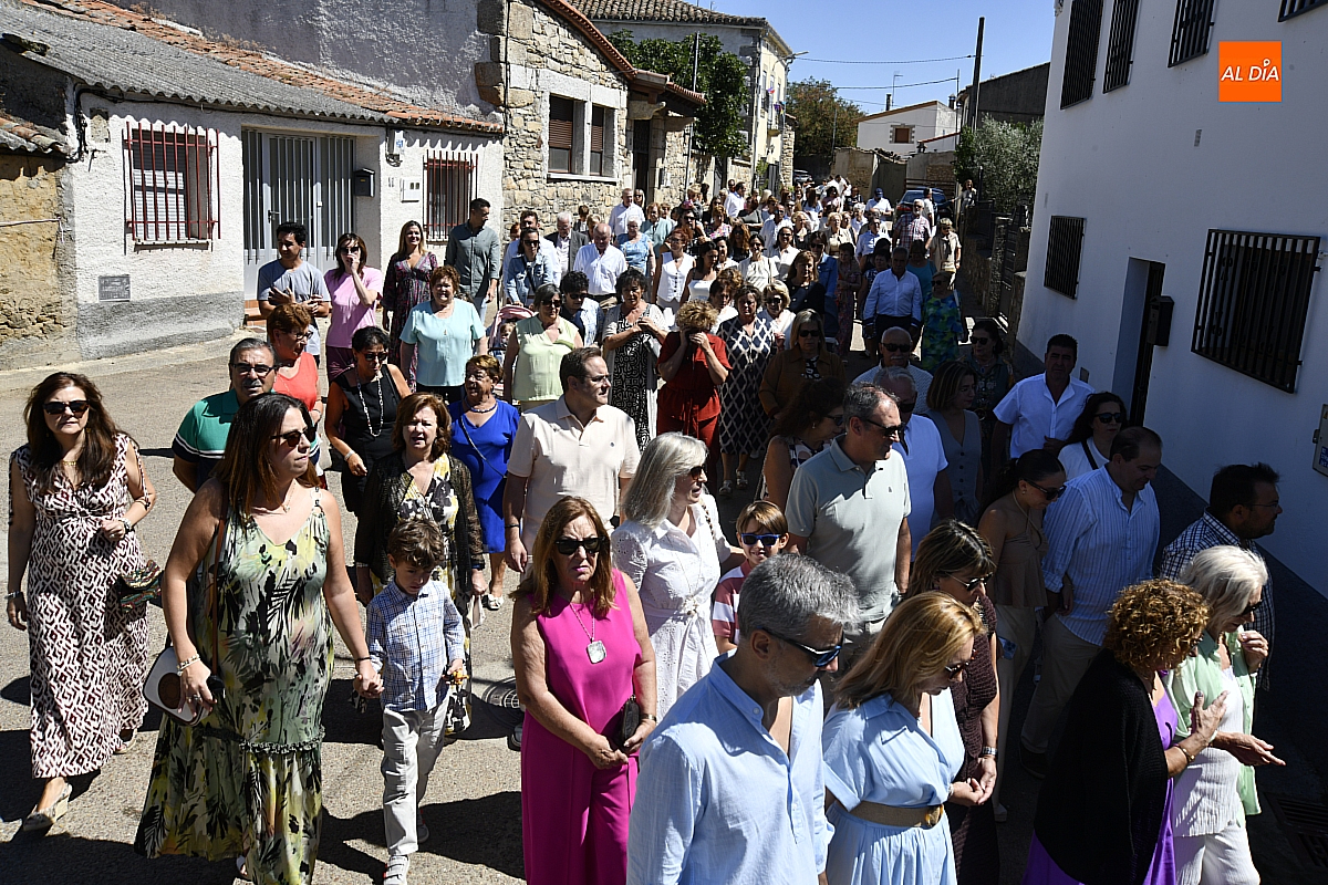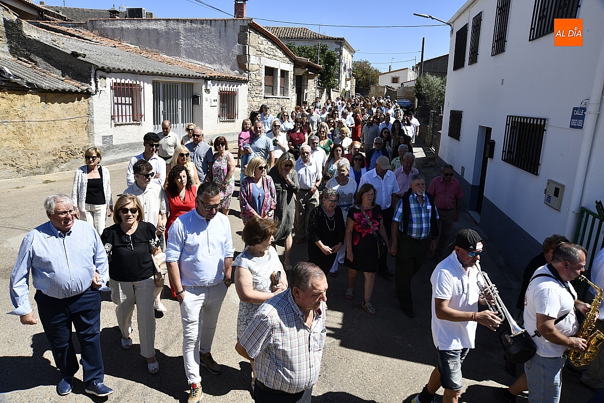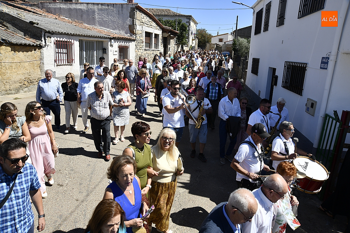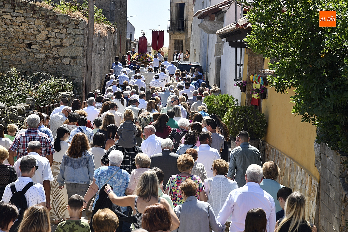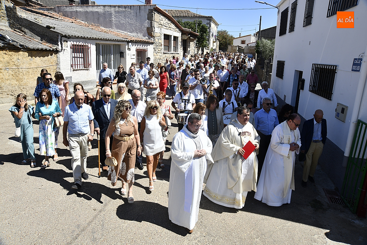 Al mediodía, los vecinos, a quienes se conoce con el afectuoso apelativo de cervatos, acudieron a la iglesia parroquial, engalanados con sus mejores trajes, para participar en la eucaristía oficiada por el párroco Juan Carlos Bernardos. Estuvo acompañado por los sacerdotes Miguel Ángel García y José Sánchez, representantes de los arciprestazgos de La Ribera y El Abadengo, todos ellos pertenecientes a la diócesis de Ciudad Rodrigo. La homilía, centrada en la figura del santo, dio paso a una procesión que recorrió las calles del pueblo, entre el tañido jubiloso de las campanas y las notas festivas de la charanga mirobrigense Al Rojo.
