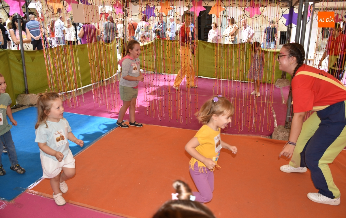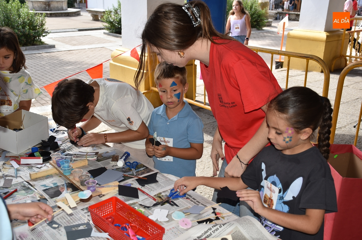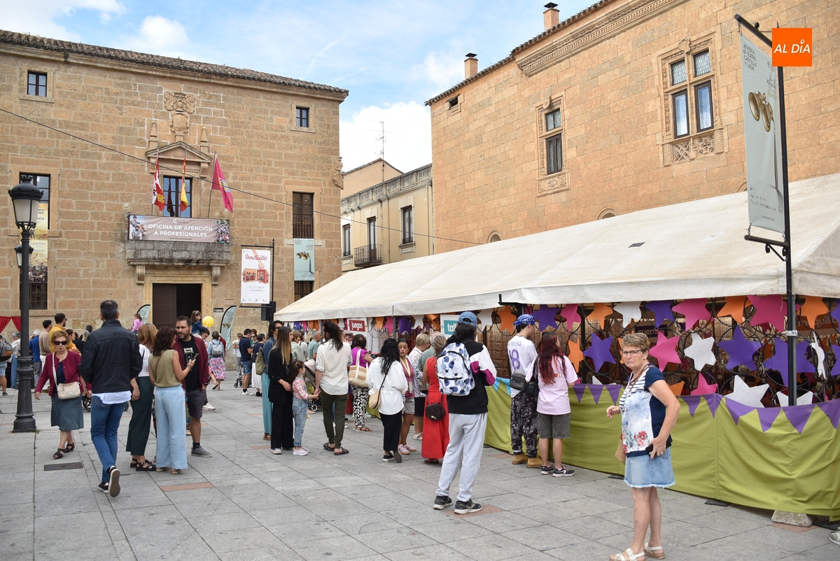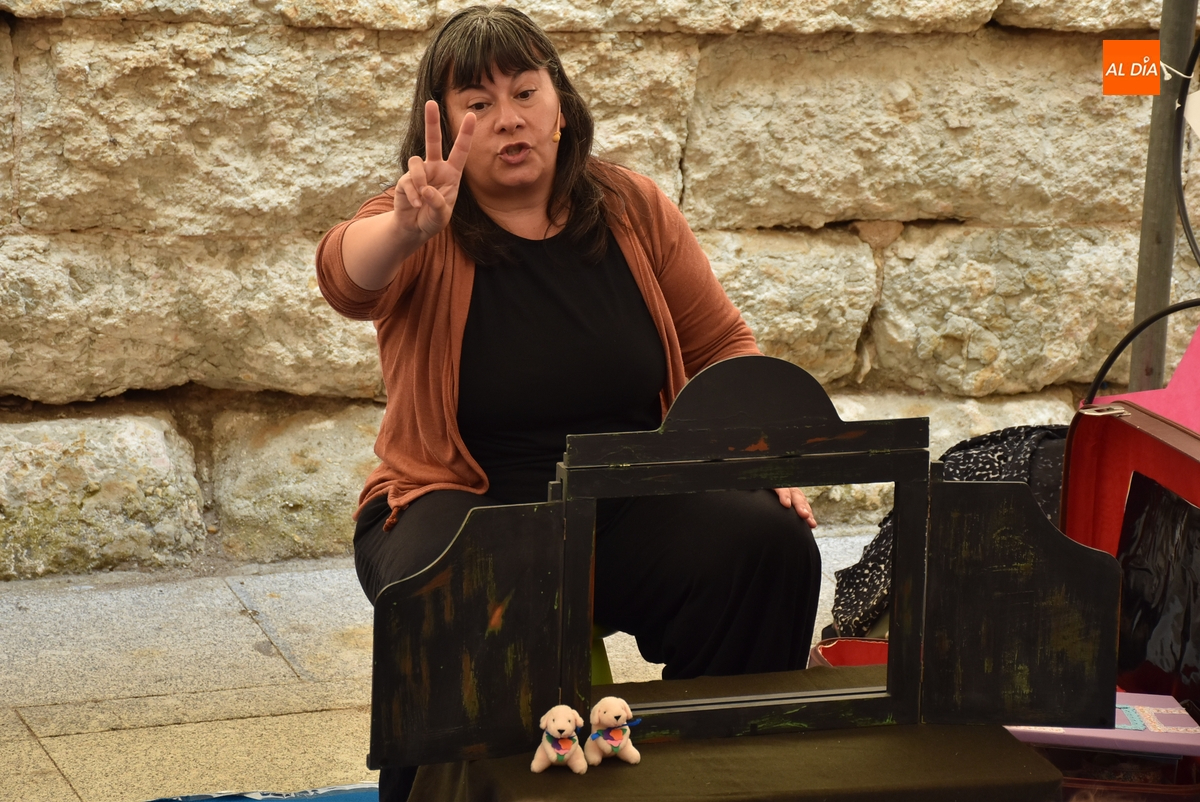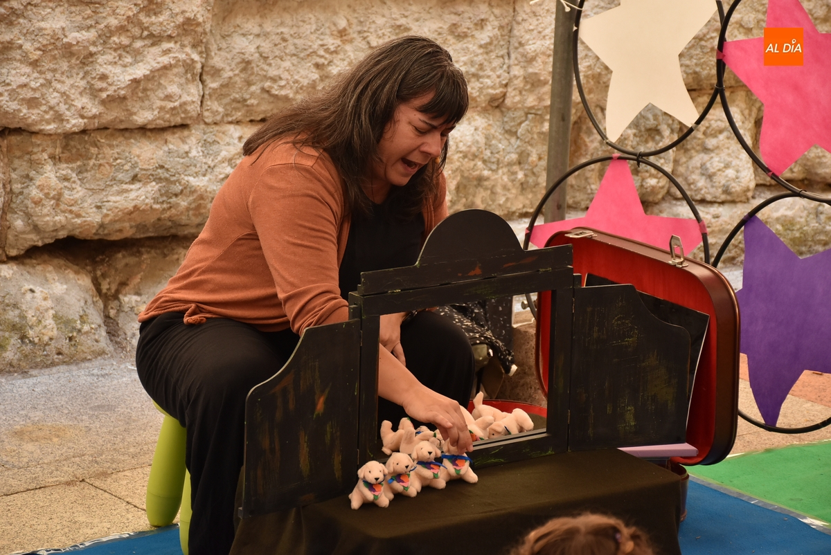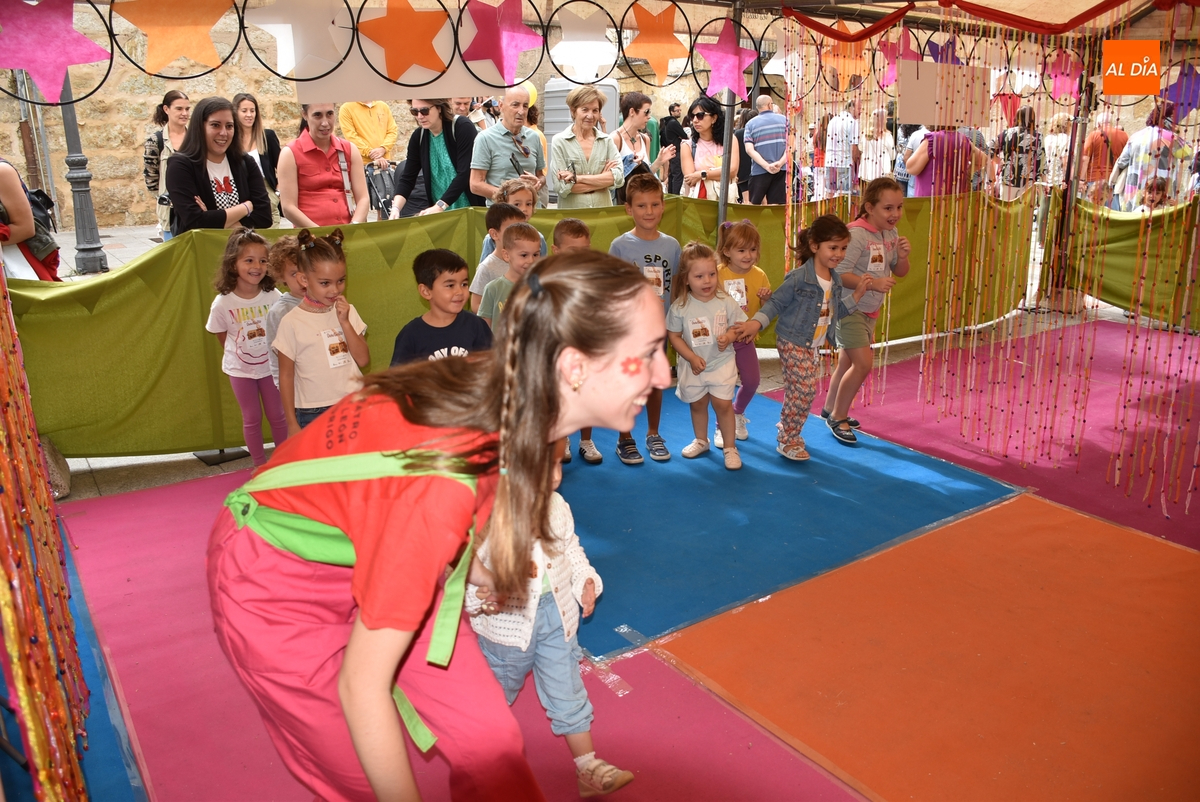 Con una temperatura que fue poco a poco creciendo (aunque a la sombra tampoco sobraba la manga larga) después de que en el momento de la apertura (a las 10.00 horas) fuese bastante fresca, las plazuelas del Buen Alcalde y del Conde de Ciudad Rodrigo fueron escenario durante la mañana del viernes de la 3ª sesión del programa de animación infantil de la Feria de Teatro, el Divierteatro, que volvió a estar concurridísimo.