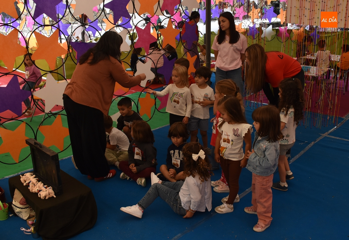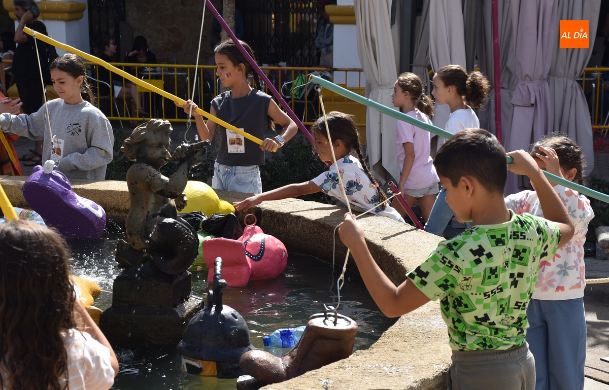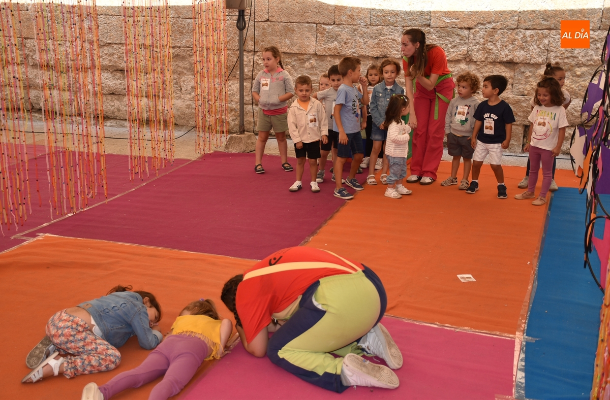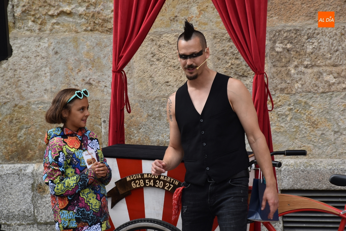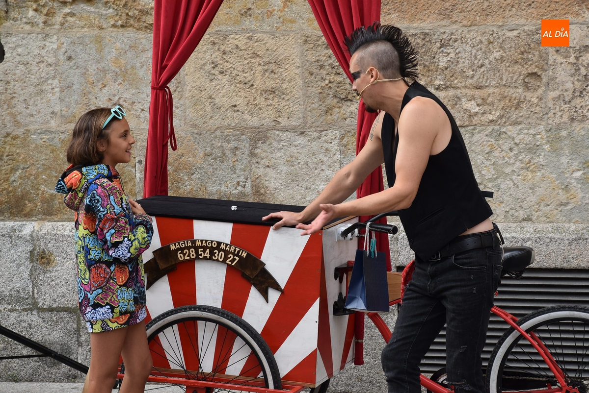Con una temperatura que fue poco a poco creciendo (aunque a la sombra tampoco sobraba la manga larga) después de que en el momento de la apertura (a las 10.00 horas) fuese bastante fresca, las plazuelas del Buen Alcalde y del Conde de Ciudad Rodrigo fueron escenario durante la mañana del viernes de la 3ª sesión del programa de animación infantil de la Feria de Teatro, el Divierteatro, que volvió a estar concurridísimo.