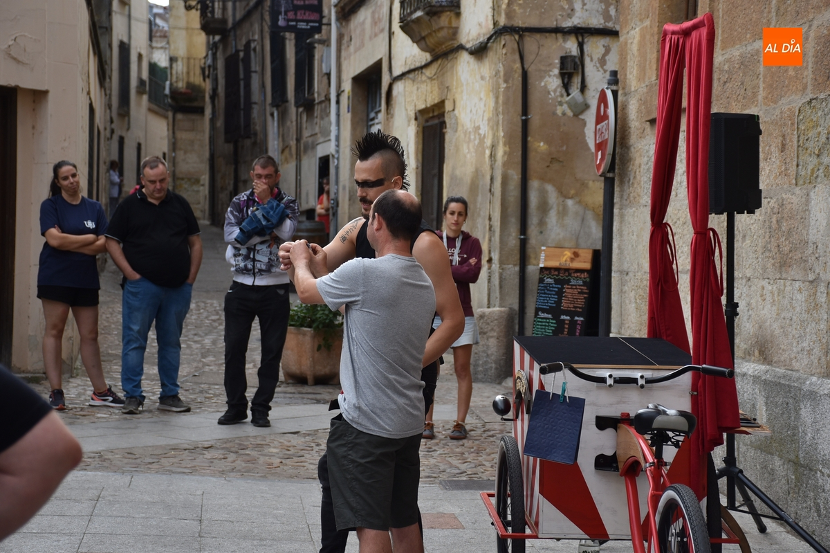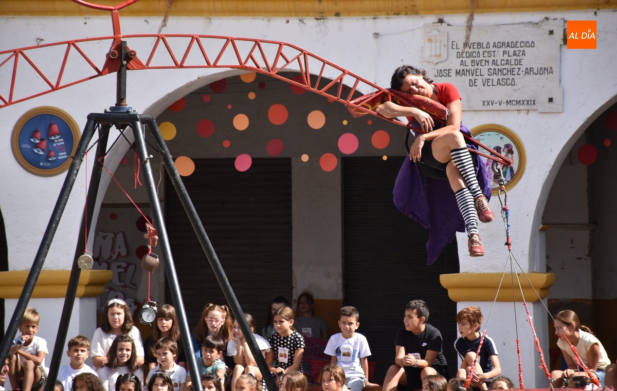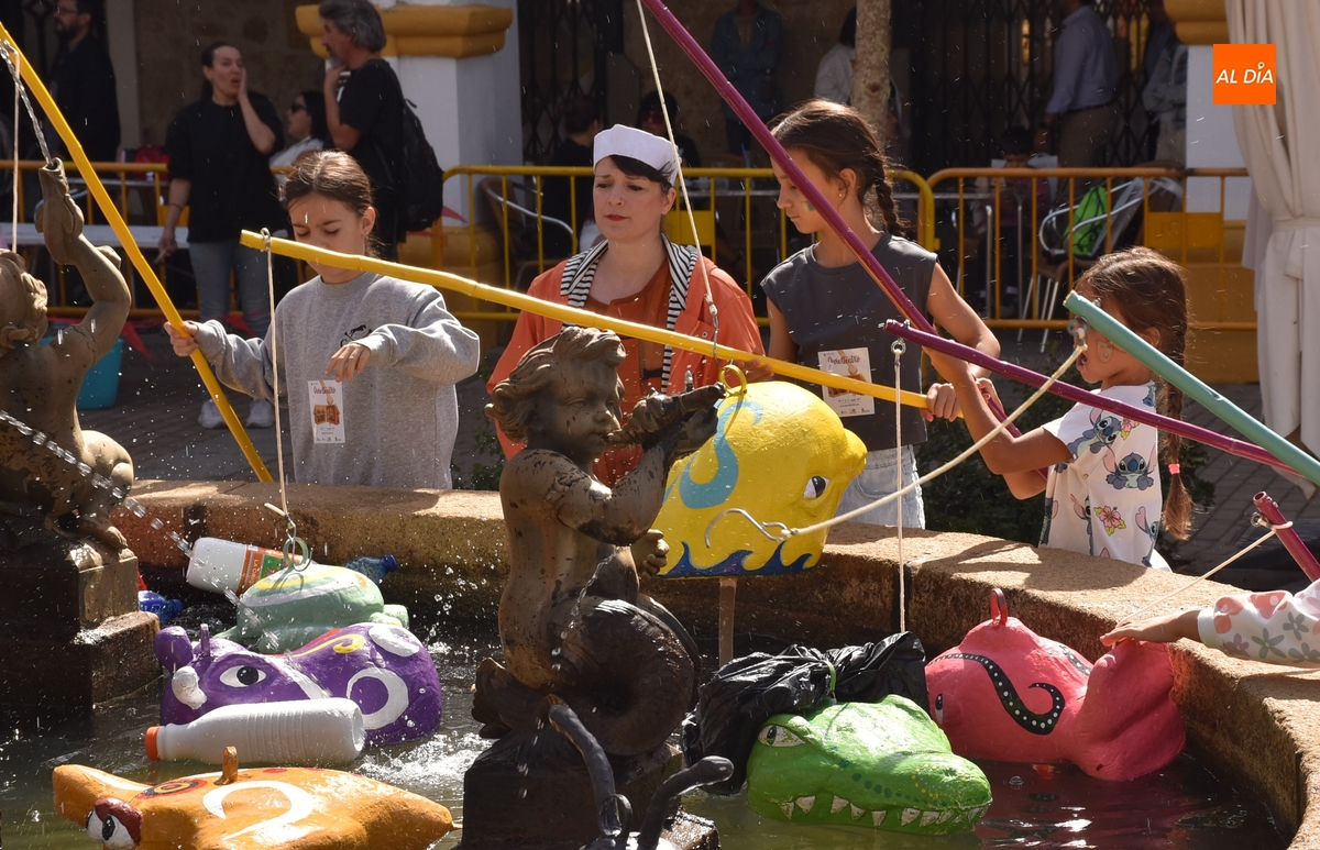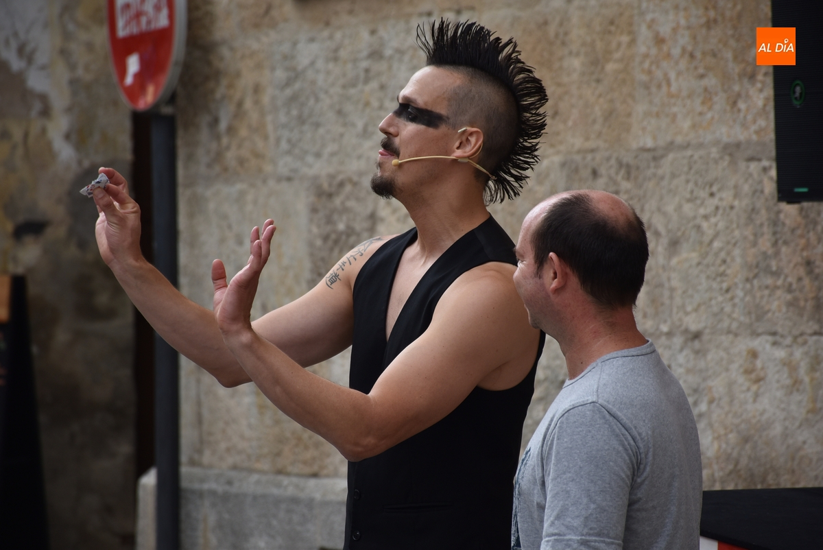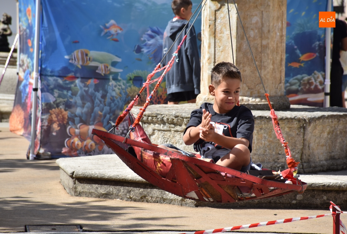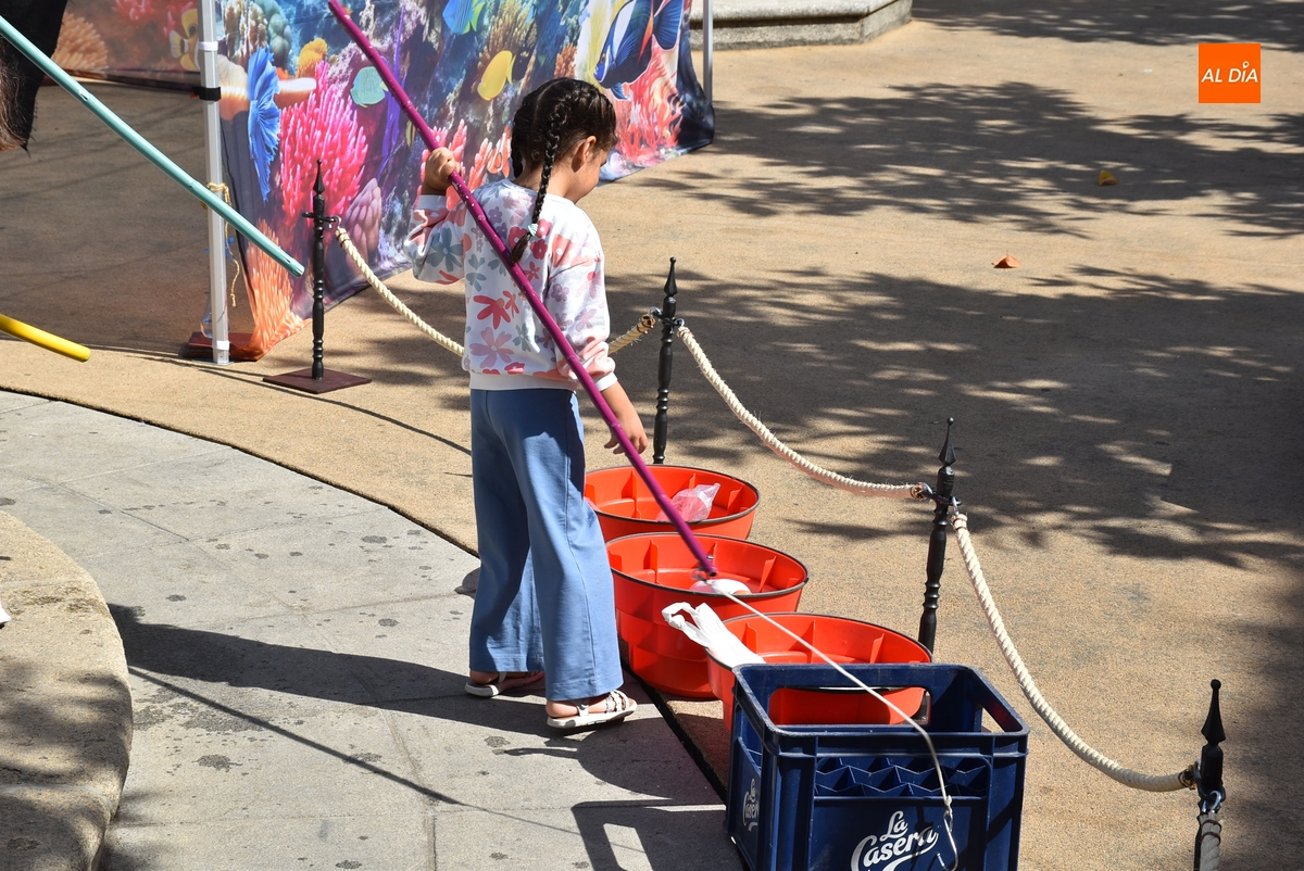 Con una temperatura que fue poco a poco creciendo (aunque a la sombra tampoco sobraba la manga larga) después de que en el momento de la apertura (a las 10.00 horas) fuese bastante fresca, las plazuelas del Buen Alcalde y del Conde de Ciudad Rodrigo fueron escenario durante la mañana del viernes de la 3ª sesión del programa de animación infantil de la Feria de Teatro, el Divierteatro, que volvió a estar concurridísimo.