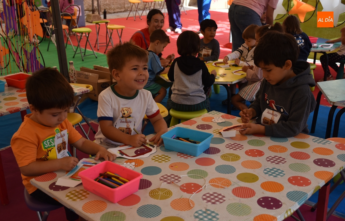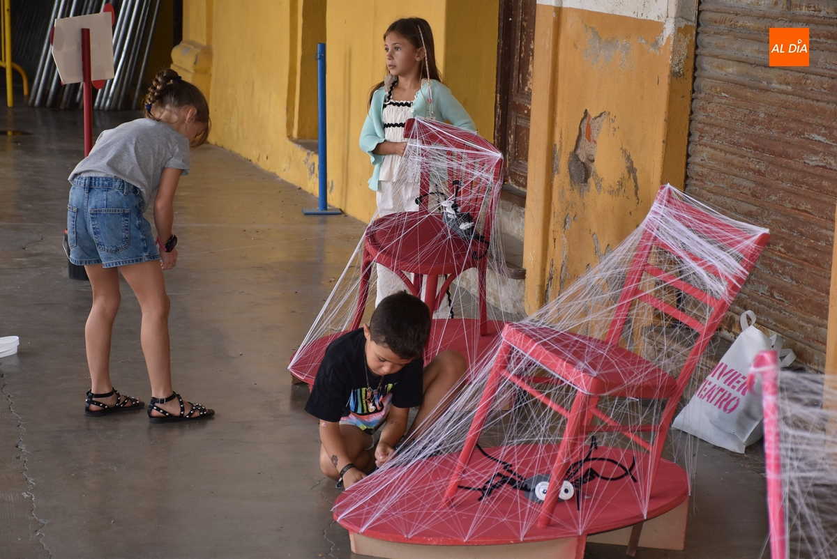 Por otro lado, también giran en torno a la efeméride del Teatro Nuevo las creaciones que se están realizando en el apartado de los talleres plásticos. Así, por ejemplo, tras pintar en la mañana del jueves unas gafas como las que luce Fernando Arrabal, en la jornada del viernes los pequeños estuvieron diseñando su propio teatro, que de nuevo se pudieron llevar de recuerdo.