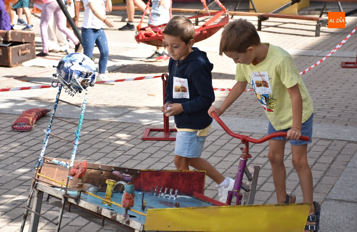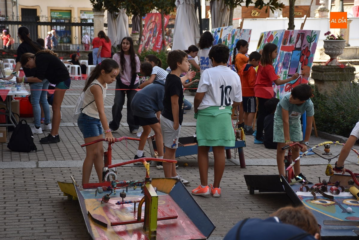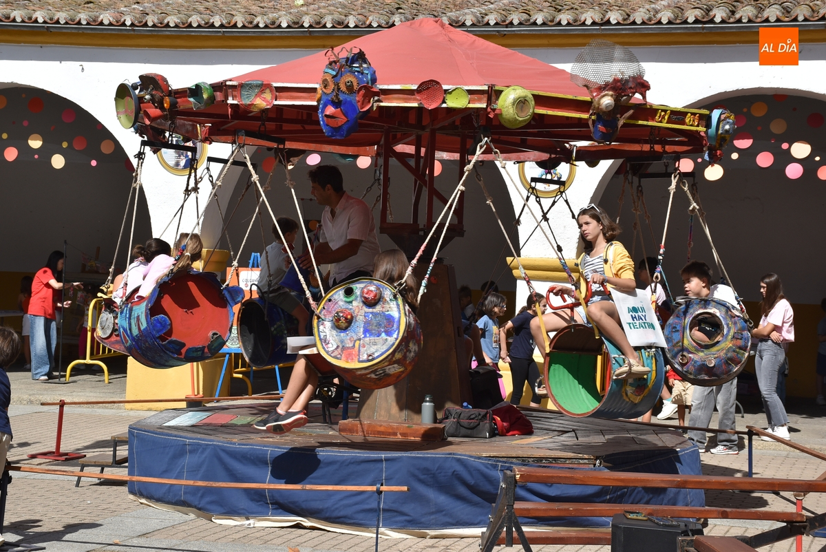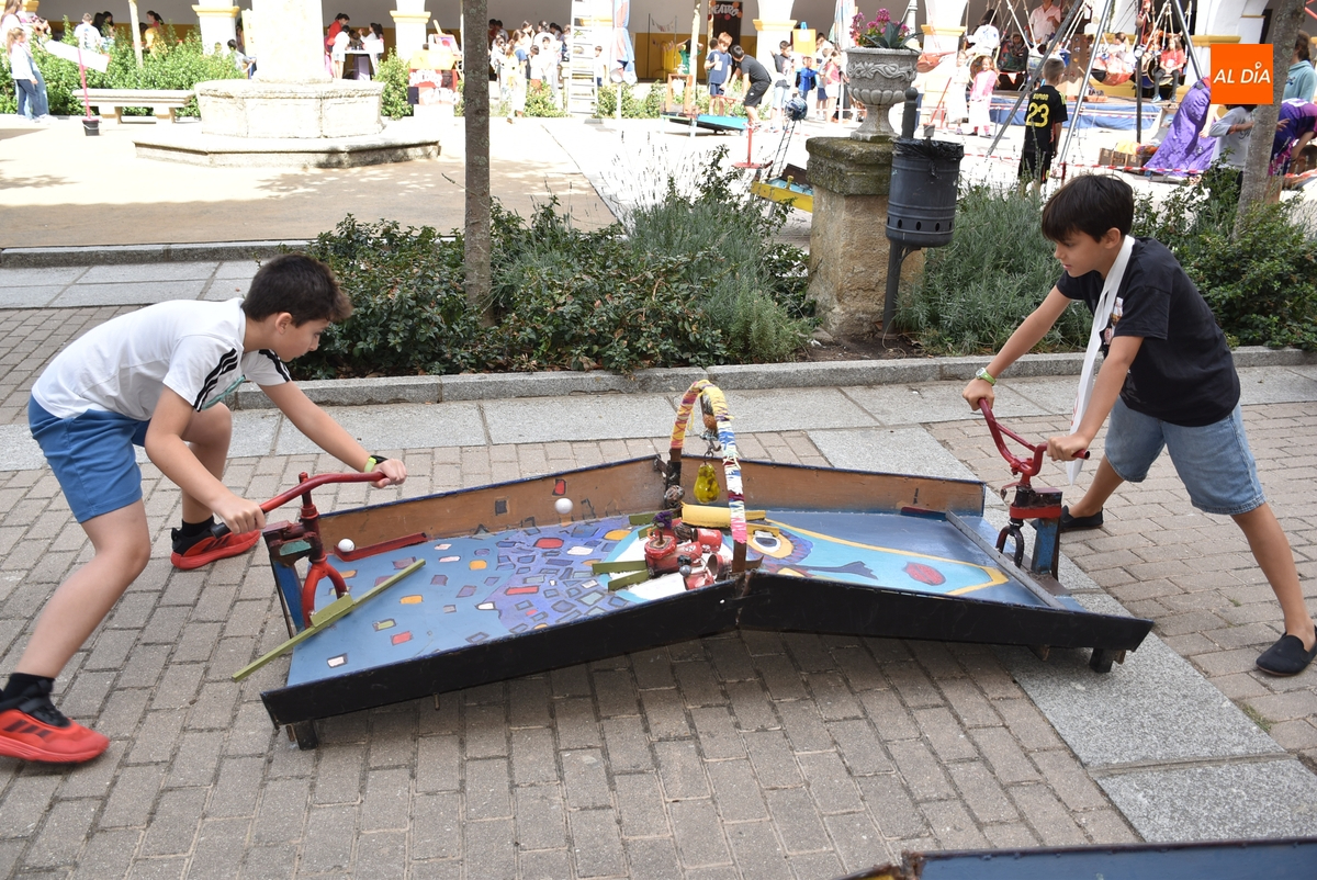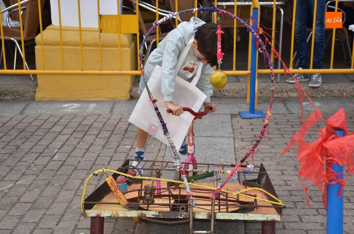 En lo que respecta a las actividades de la Plazuela del Buen Alcalde, en la mañana del viernes mantuvieron la dinámica habitual de los días anteriores. En la galería de imágenes figuran, como novedad respecto a días anteriores, momentos de la pieza La sortija de metal que está ofreciendo la compañía Lîla, juegos reciclados y circo, que es la responsable asimismo de los exitosísimos tiovivo y juegos con elementos reciclados.