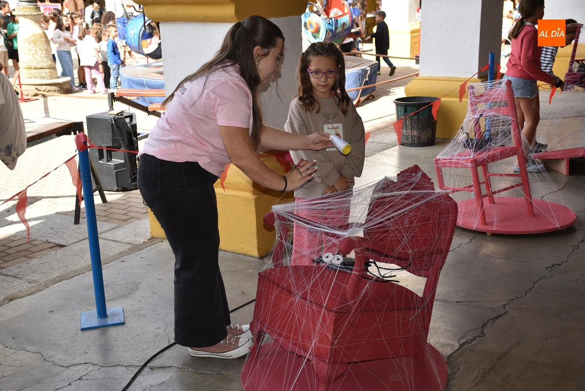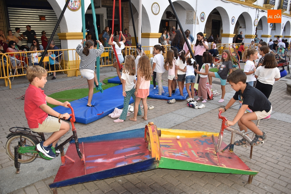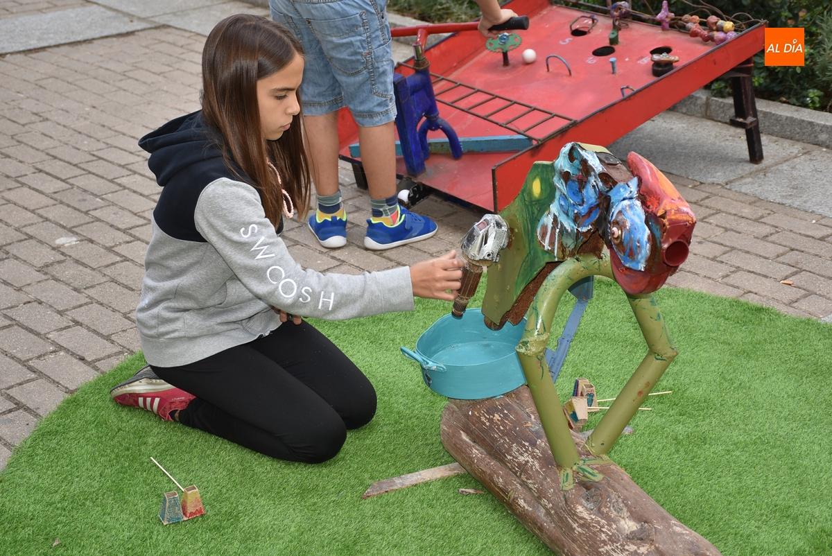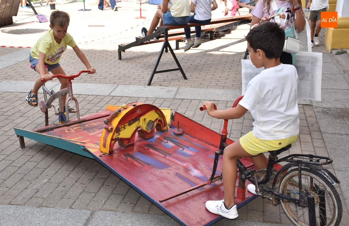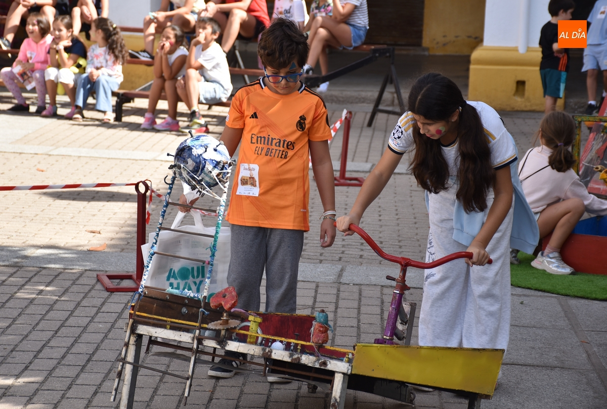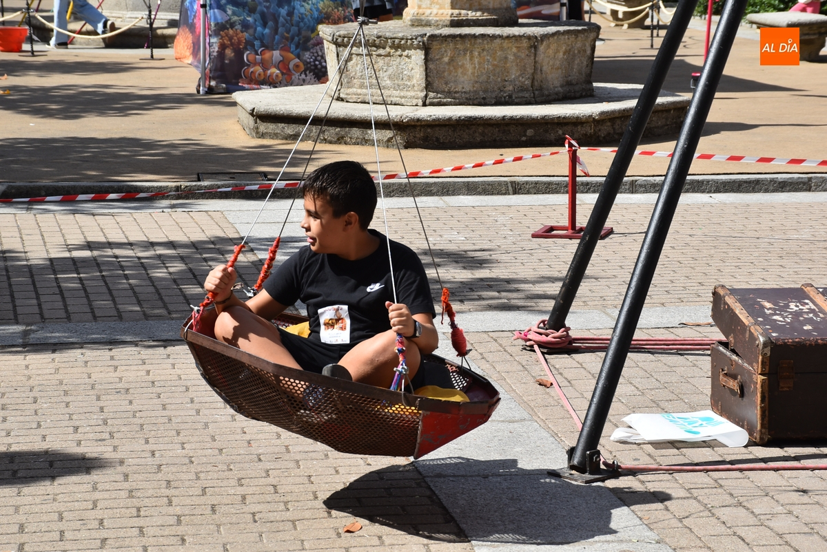 En lo que respecta a las actividades de la Plazuela del Buen Alcalde, en la mañana del viernes mantuvieron la dinámica habitual de los días anteriores. En la galería de imágenes figuran, como novedad respecto a días anteriores, momentos de la pieza La sortija de metal que está ofreciendo la compañía Lîla, juegos reciclados y circo, que es la responsable asimismo de los exitosísimos tiovivo y juegos con elementos reciclados.
