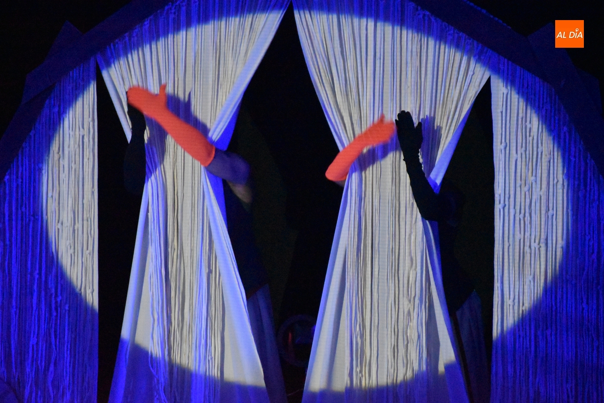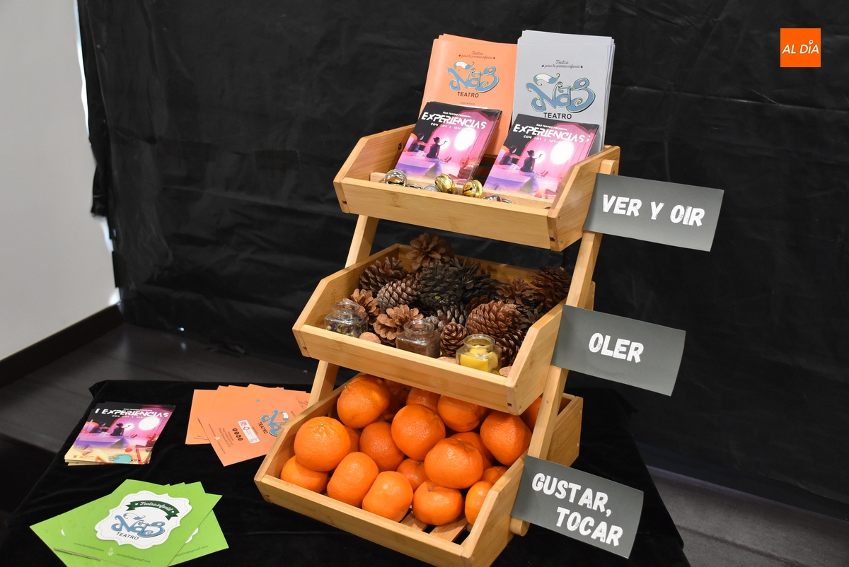Coincidiendo con los dos espectáculos descritos, el Espacio en Rosa acogió el primer pase (el segundo se desarrolló a las 12.30 horas) del montaje destinado a la primera infancia (de 1 a 3 años) Experiencias – Con los 5 sentidos, de la compañía madrileña Ñas Teatro. En este espectáculo, los intérpretes, Paula Portilla y Alberto Belio, propusieron a los niños un viaje sonoro, visual, sensorial y artístico a través de las palabras, la música, los gestos, las luces y las sombras.
