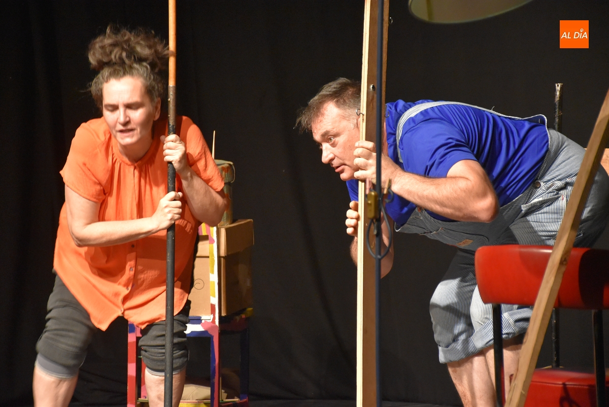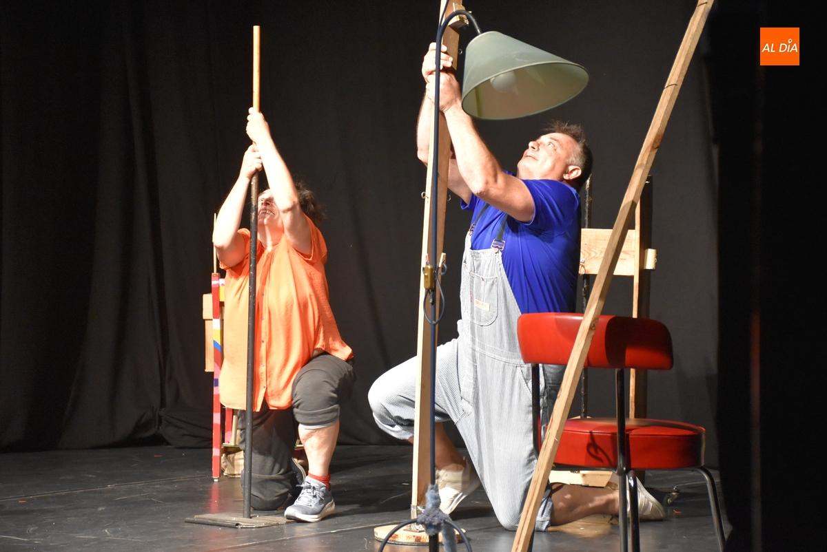 El espectáculo tuvo como protagonistas a los mismos encargados de escribir la pieza, Mercedes Herrero y Patxi Vallés, que han contado con la colaboración de alumnado de los colegios Blas Sierra de Palencia y María Teresa Íñigo de Toro de Valladolid. Al primer pase de aVuelos asistieron las ediles del Ayuntamiento Belén Barco, Ana María Castaño y Vanesa García, para comprobar cómo son en uso la grada y la estructura escénica que ha adquirido el Consistorio y que ha puesto a disposición de la Feria de Teatro.