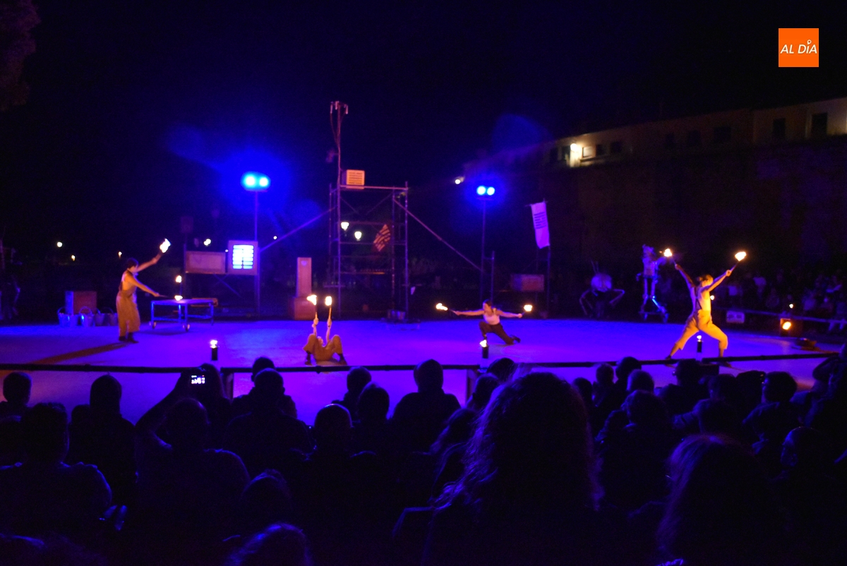 Además del fuego, Foc también tuvo como añadido algunas partes de teatro de calle y danza, todo ello a cargo de sus cuatro intérpretes, Rita Baliarda, Quique Muro, Eulália Cortés y Aroa Sola. El montaje, con sabor a Mediterráneo y con acompañamiento musical, hizo con esta representación su estreno en castellano (cuenta con algunos breves elementos de texto sonoro). Finalizado el espectáculo, el público brindó una cálida ovación al grupo de intérpretes y a sus acompañantes.