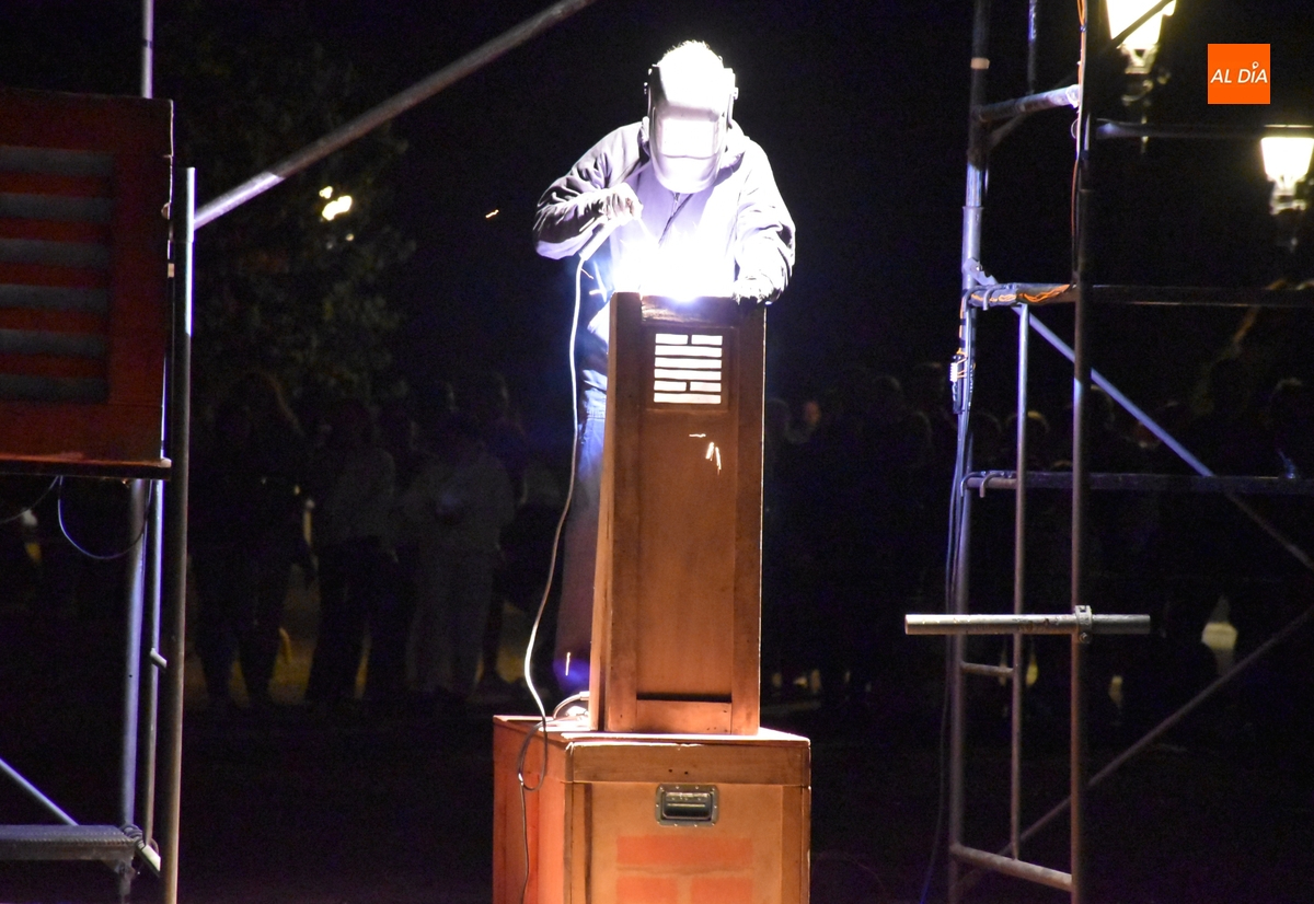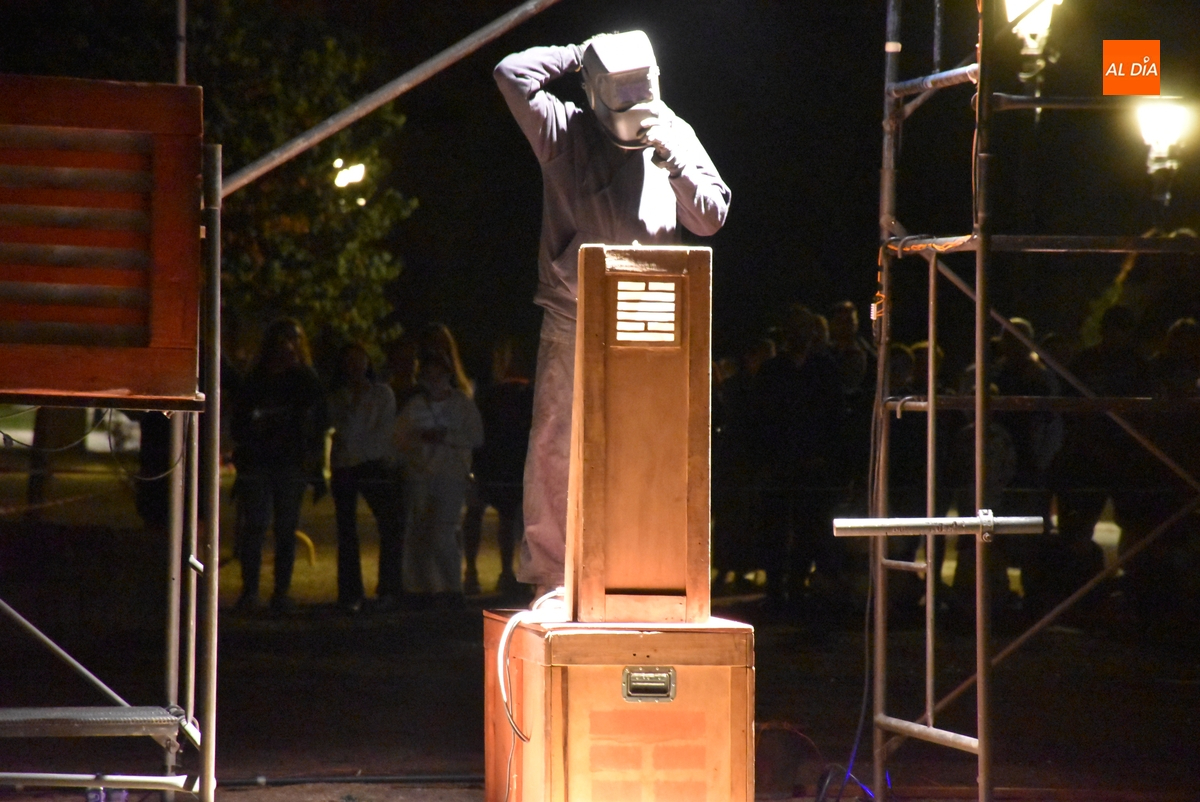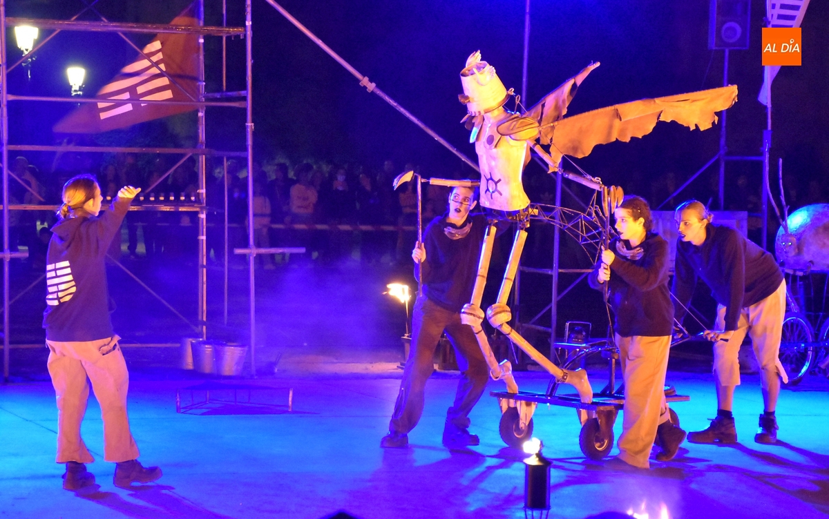 Pese a la suspensión del pasacalles previsto para el sábado, la Feria de Teatro de Castilla y León 2025 no se ha quedado del todo sin pirotecnia, gracias al espectáculo que se pudo presenciar en la noche del viernes en un recinto acotado como son los Jardines de Bolonia. Eso sí, el verdadero protagonista de la velada fue el puro fuego, que de hecho da nombre en catalán, Foc, a este montaje perteneciente a la compañía L’Avalot, que lo estuvo preparando en el lugar desde primera hora de la mañana.