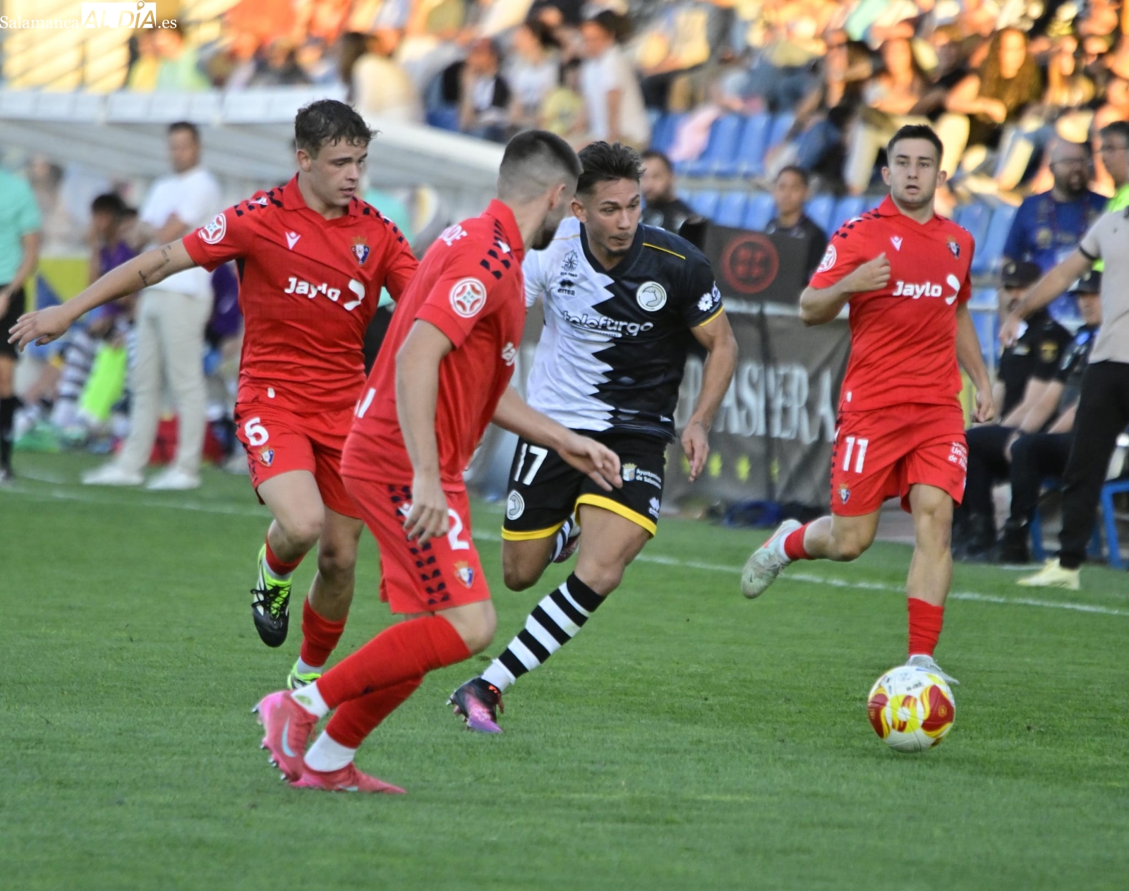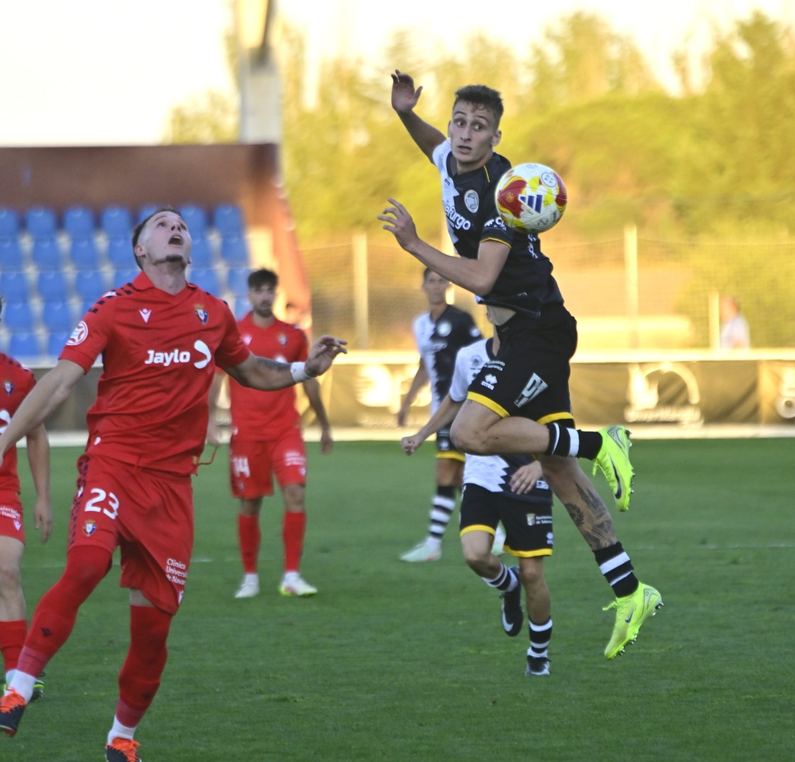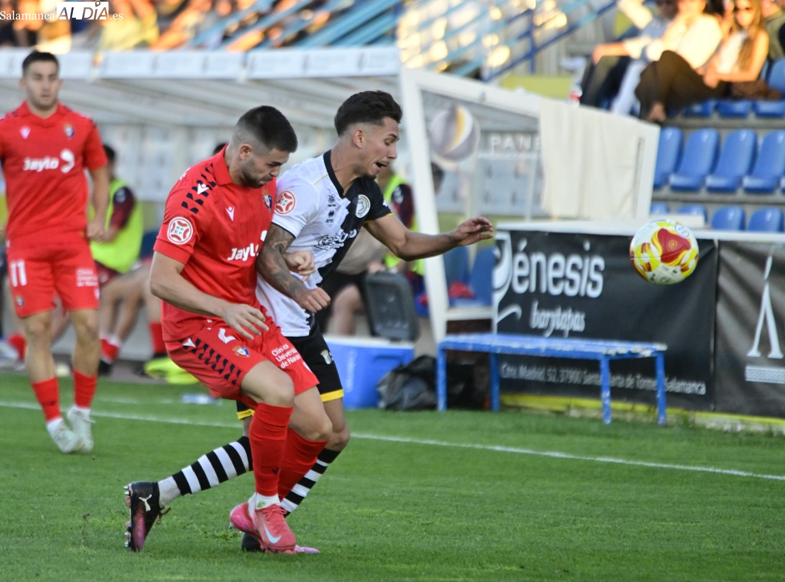 Con el balón en juego, poco ha tardado De la Nava en protagonizar la primera ocasión de la tarde con un disparo que se ha ido desviado y Gorjón también ha metido el miedo en el cuerpo con un cabezazo a la salida de un córner. A partir de ahí, a los charros les ha costado salir desde atrás y Unai le ha hecho una buena parada a Pedroarena, mientras que Espejo se ha lesionado antes de la media hora de batalla frente a un bando en el que milita un ex como Mikel Serrano.