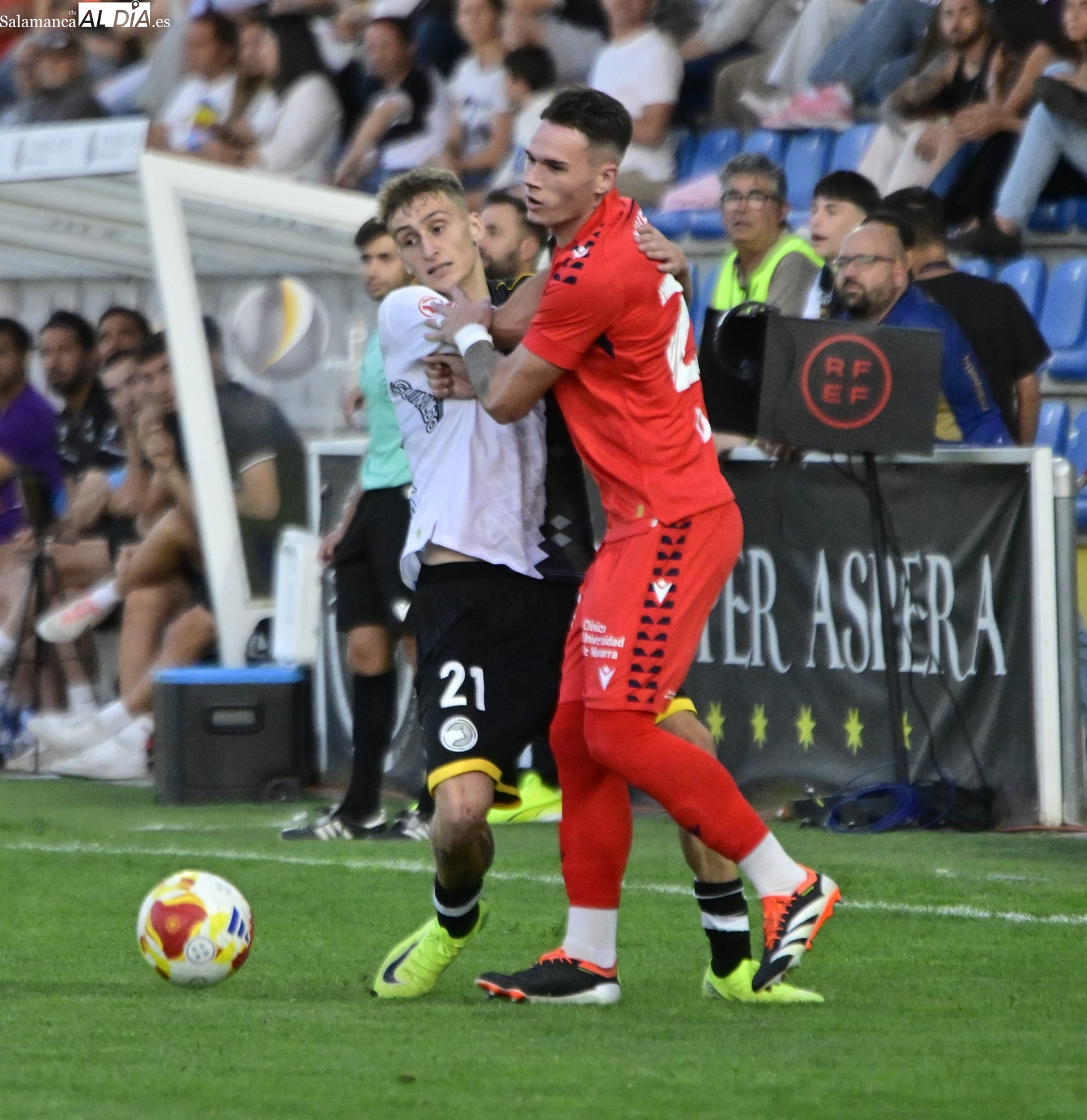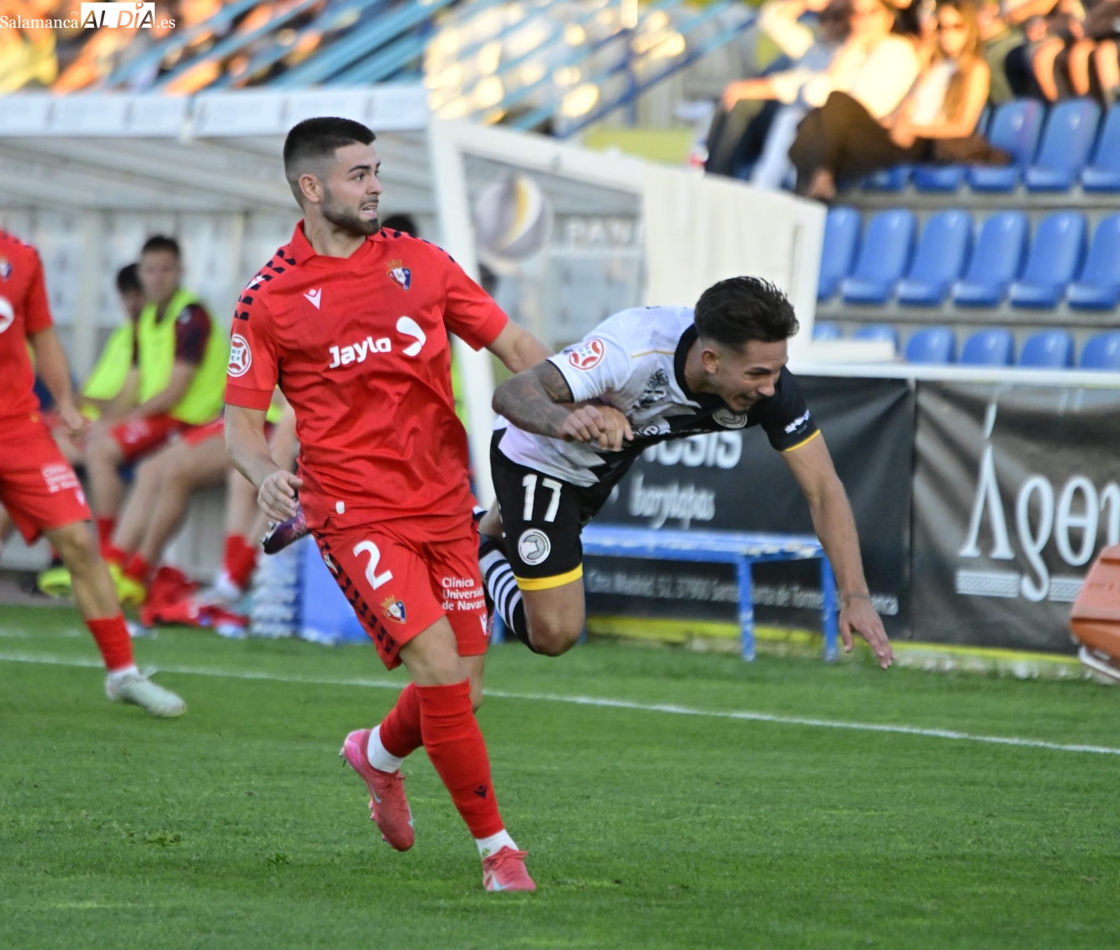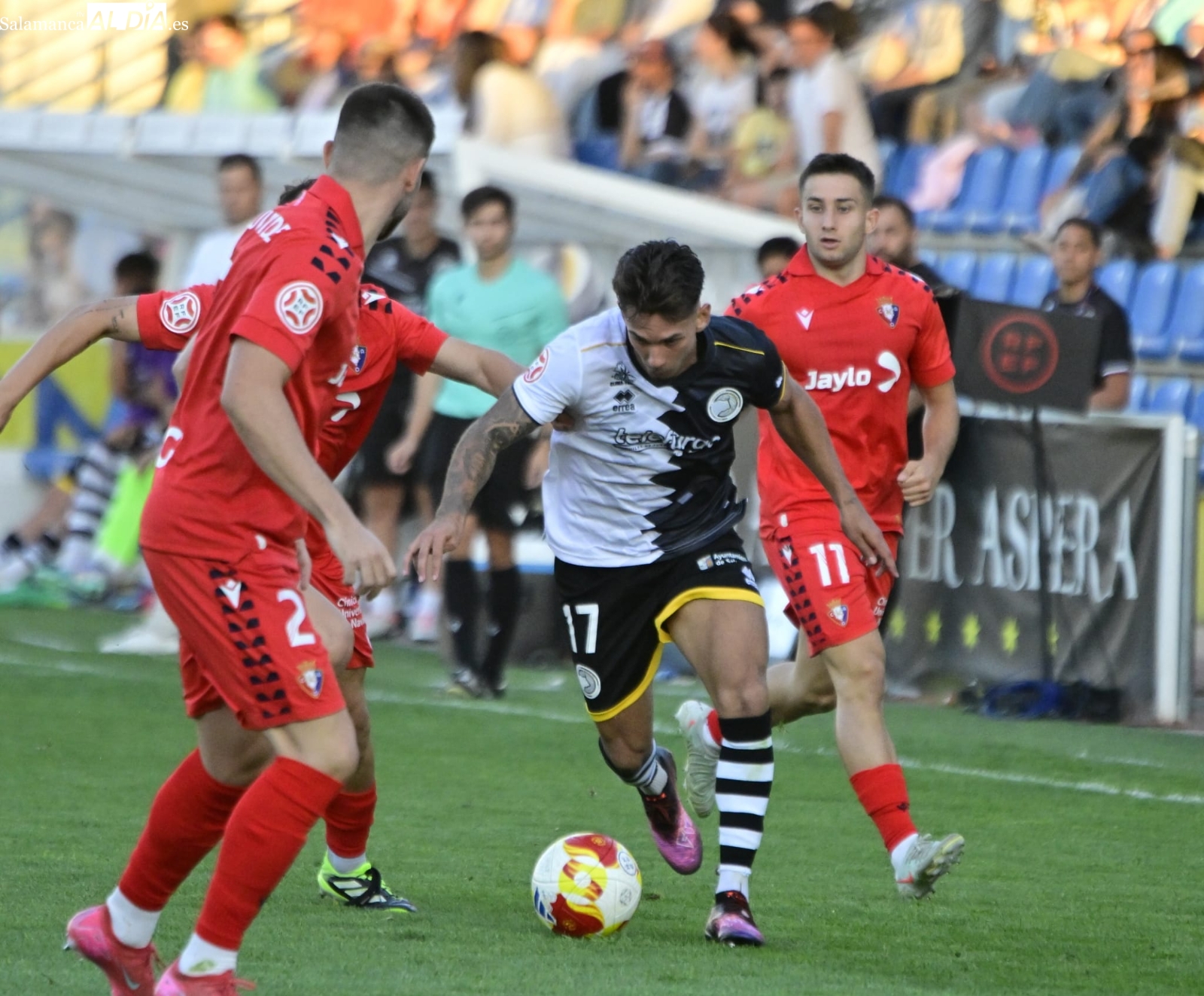 Con el balón en juego, poco ha tardado De la Nava en protagonizar la primera ocasión de la tarde con un disparo que se ha ido desviado y Gorjón también ha metido el miedo en el cuerpo con un cabezazo a la salida de un córner. A partir de ahí, a los charros les ha costado salir desde atrás y Unai le ha hecho una buena parada a Pedroarena, mientras que Espejo se ha lesionado antes de la media hora de batalla frente a un bando en el que milita un ex como Mikel Serrano.