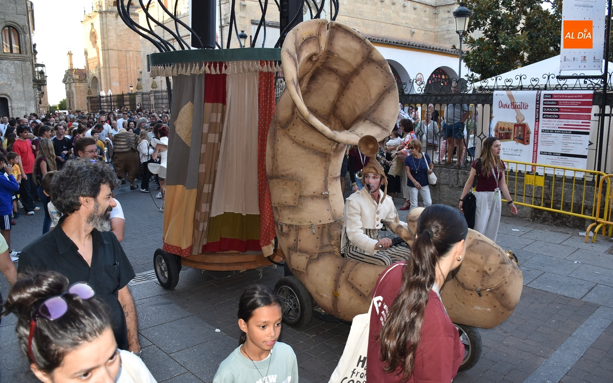 Debido a la suspensión del espectáculo Alien’s Foc de la compañía Scura Splats previsto para la noche del sábado, el montaje Very Big Pulga de la compañía extremeña Asaco Producciones se ha quedado como último pasacalles de la Feria de Teatro de Ciudad Rodrigo 2025, siendo además el único de esta edición con dos pases, de los cuales el primero se desarrolló en la tarde del viernes.