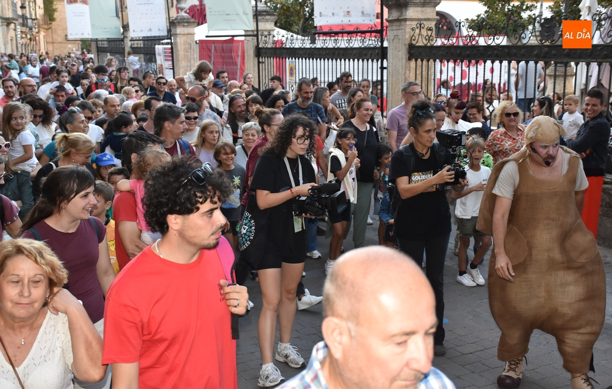 Tras la parte inicial en la Plazuela de Herrasti, el pasacalles (idea de Francisco Javier Ceballos Casillas) fue avanzando por el centro histórico, con paradas en Cardenal Pacheco junto a la Plazuela del Buen Alcalde y en la Plaza Mayor antes del final en la Plaza del Castillo. A lo largo de todo el camino, los personajes fueron interactuando con el público (incluso cogiendo un botellín de una terraza), generándose situaciones cómicas y circenses. La Plaza del Castillo será el punto de arranque del 2º pase de este pasacalles, a las 13.00 horas de este sábado.