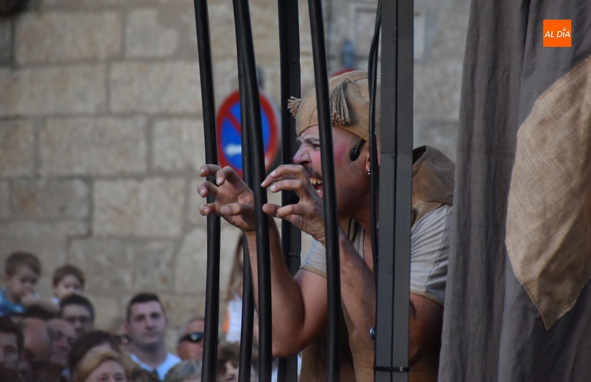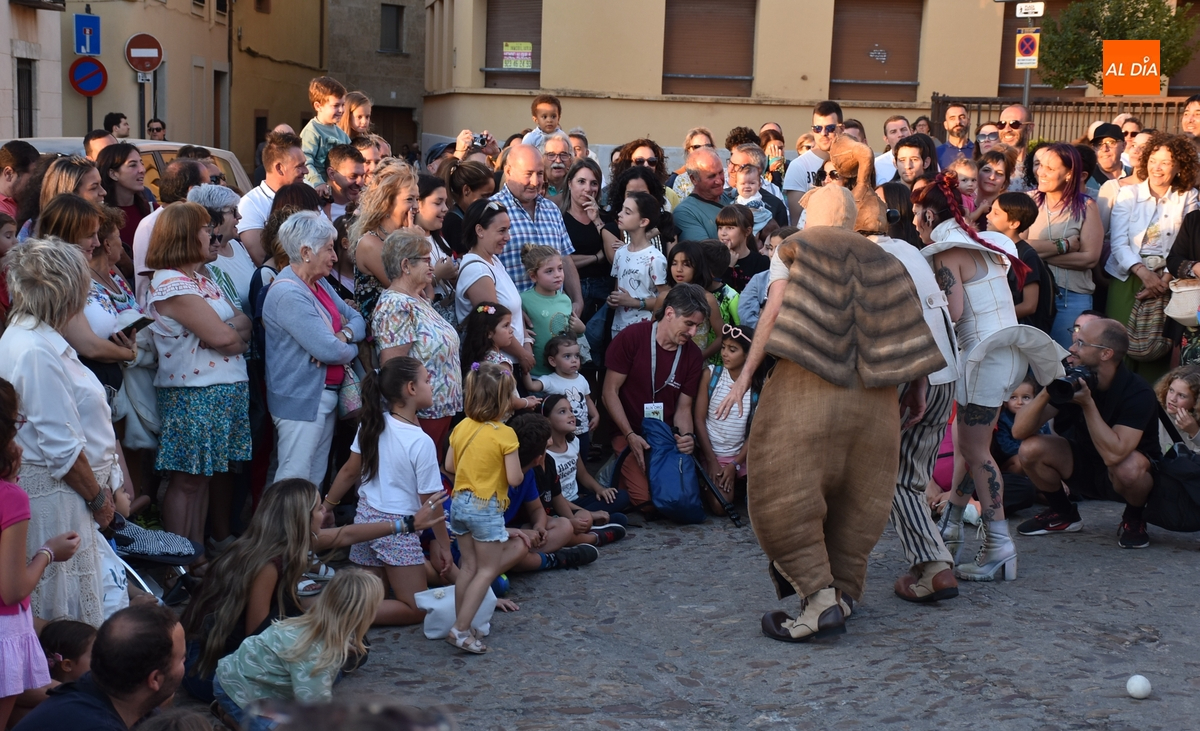 Como está ocurriendo en todos los espectáculos callejeros, una tremenda multitud se congregó en la Plazuela de Herrasti para presenciar el arranque de este montaje, que se estrenaba de forma absoluta. Very Big Pulga tiene como protagonistas a tres buscavidas (interpretados por Noemí Burgos, Herminio Campillo e Iván Pascual Pintado) que deciden inventarse una atracción de feria para escapar de la pobreza de la zona rural olvidada donde viven.