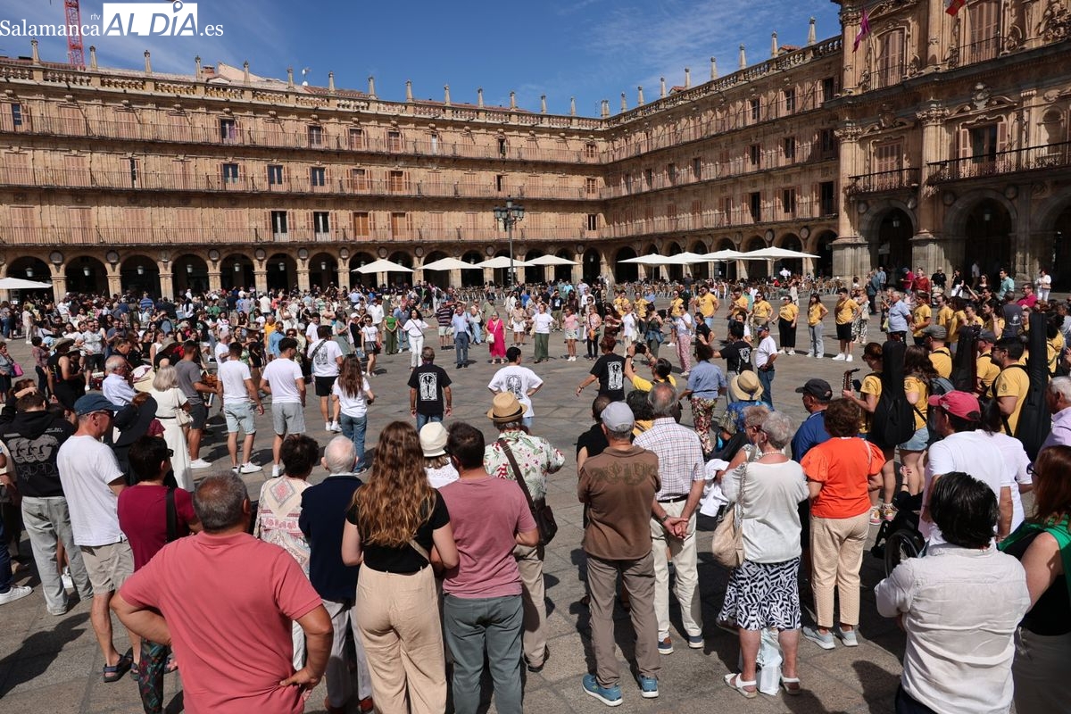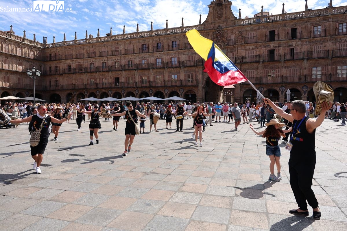 La Plaza Mayor de Salamanca ha sido el escenario, durante la mañana y el mediodía de este domingo, de una vibrante Sesión Vermut, una de las grandes novedades de la edición de este año del Festival Internacional de Folclore.