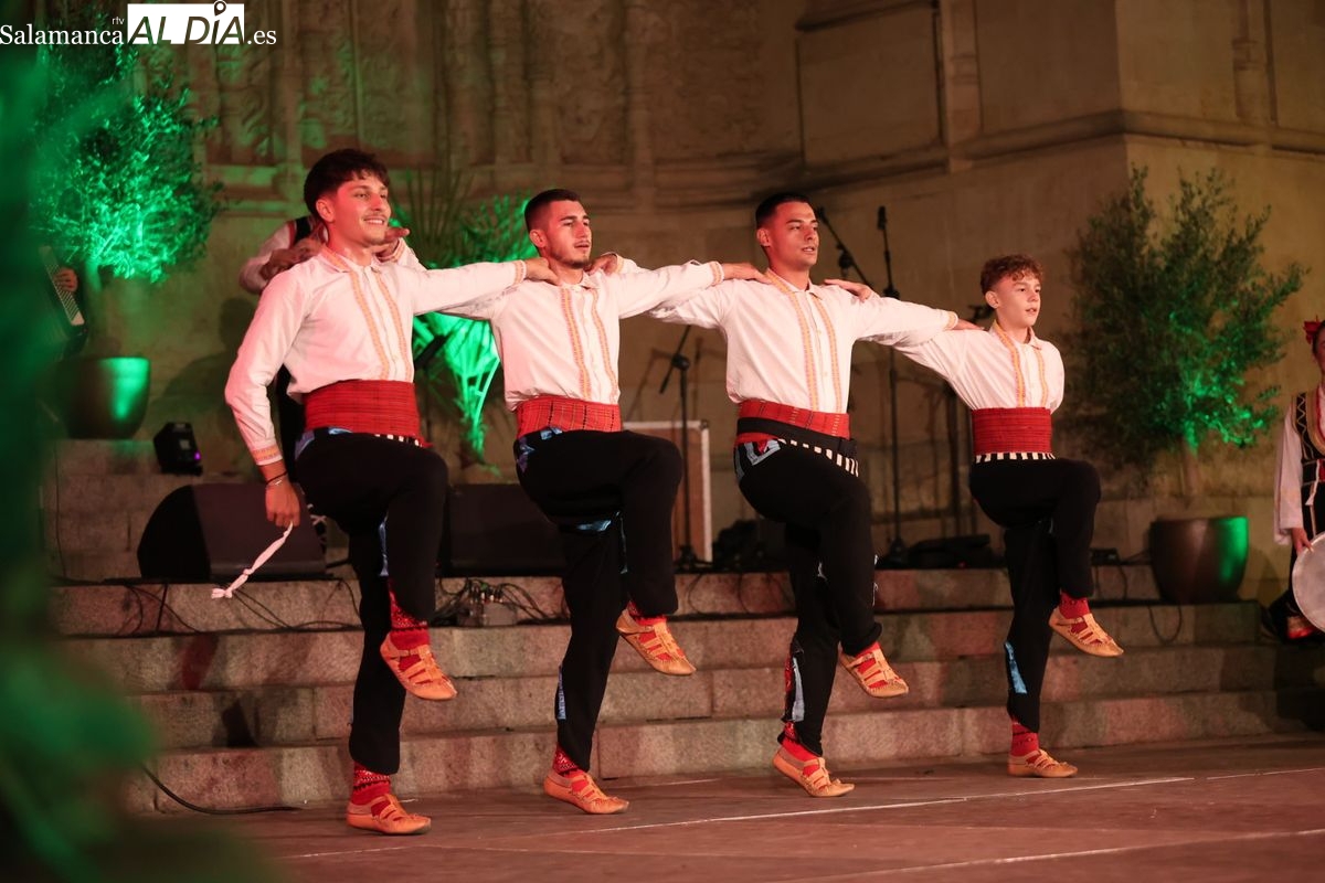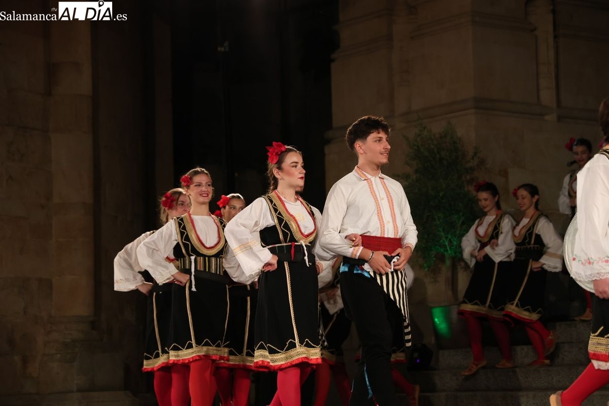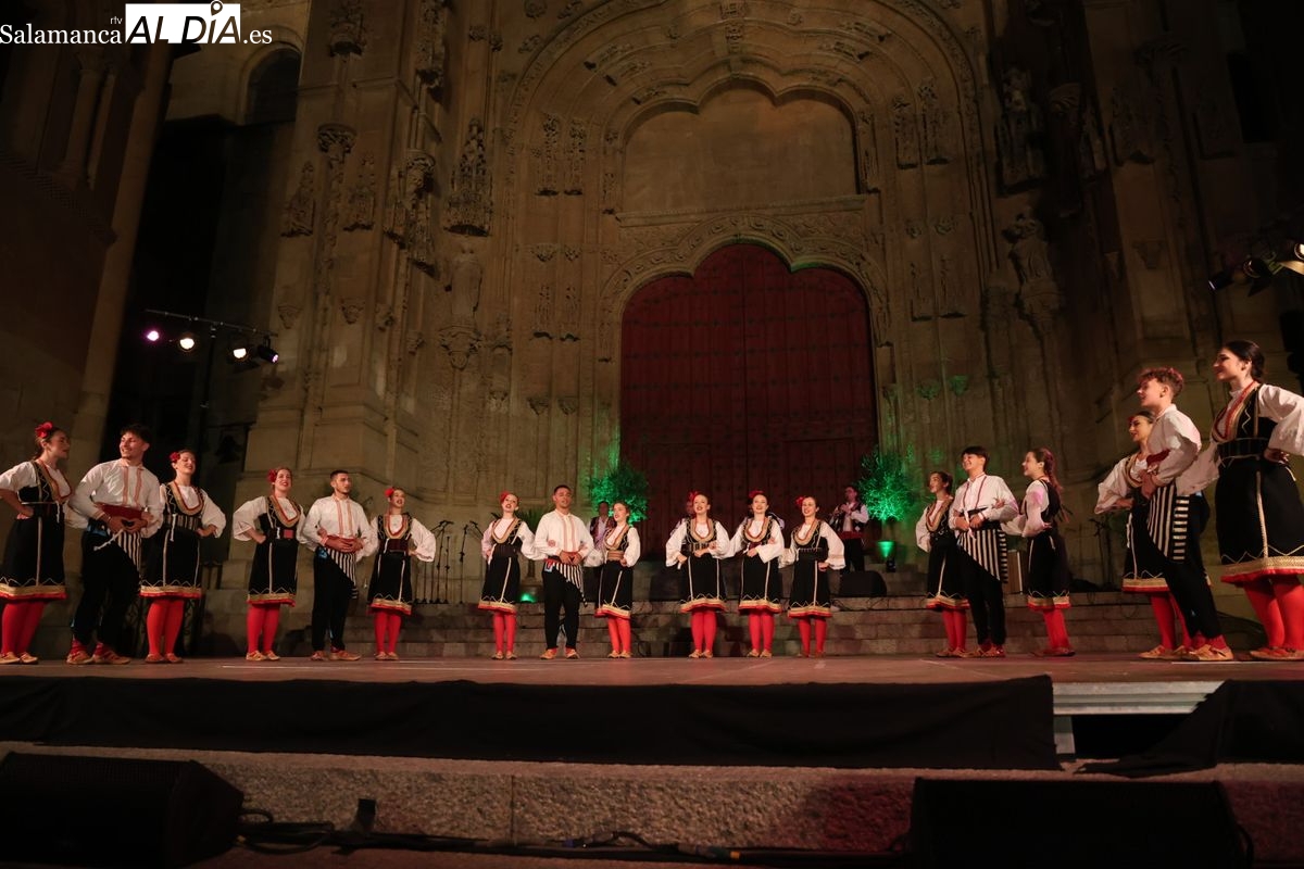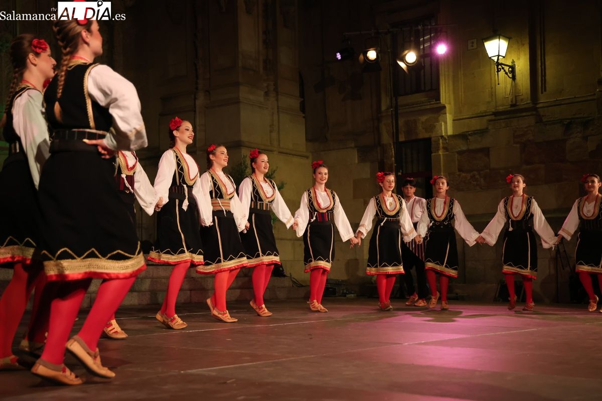 El emblemático Patio Chico de Salamanca vibró en la noche de este viernes con los sonidos y danzas de diversas culturas, en una de las últimas actuaciones del IV Festival Internacional de Folclore Ciudad de Salamanca. Cientos de personas se congregaron para disfrutar de un espectáculo que unió tradiciones de los Balcanes con el folclore de diferentes puntos de España.