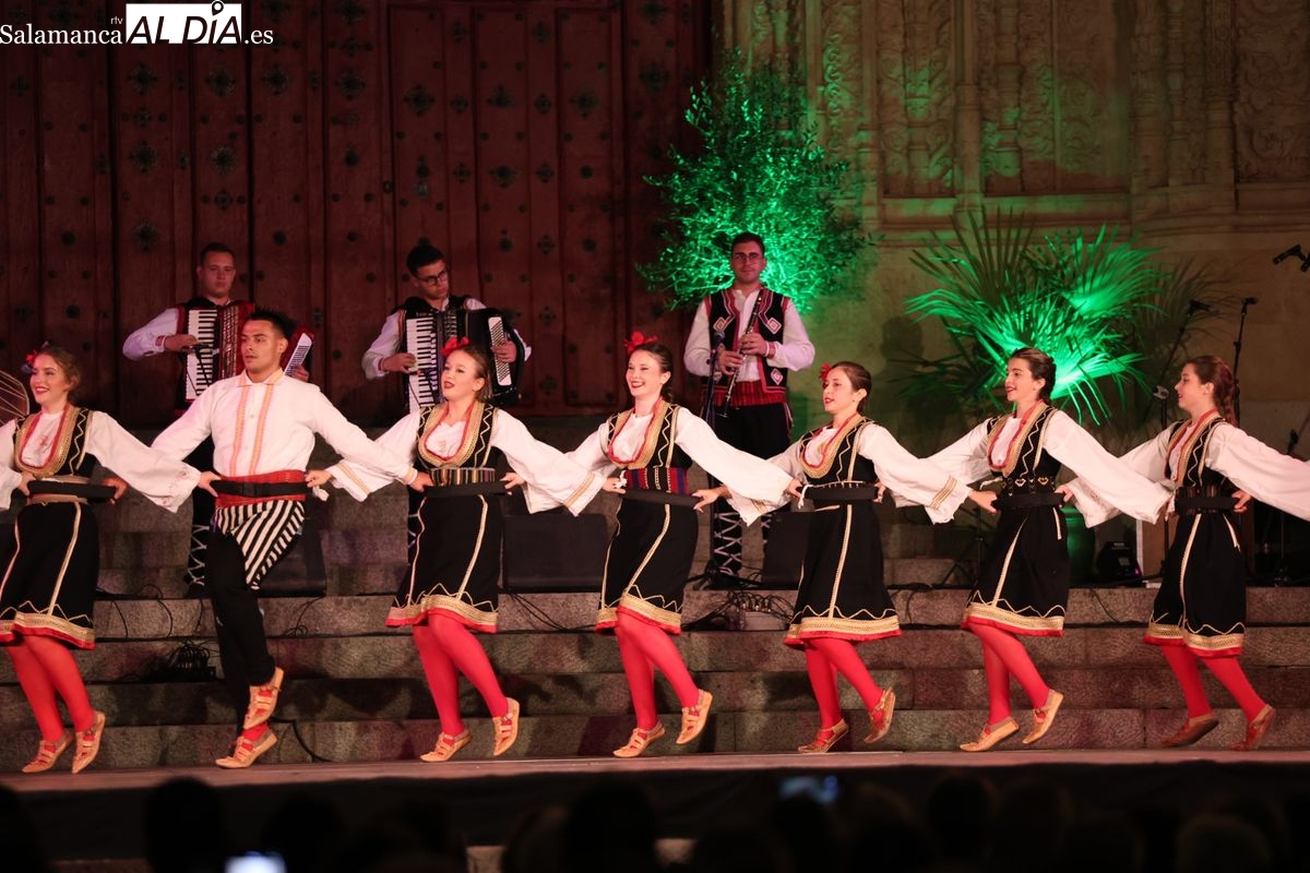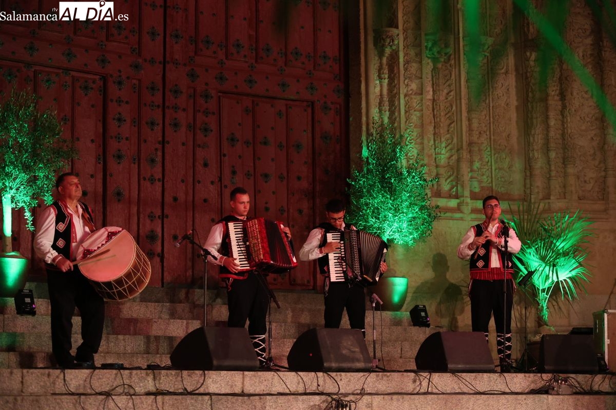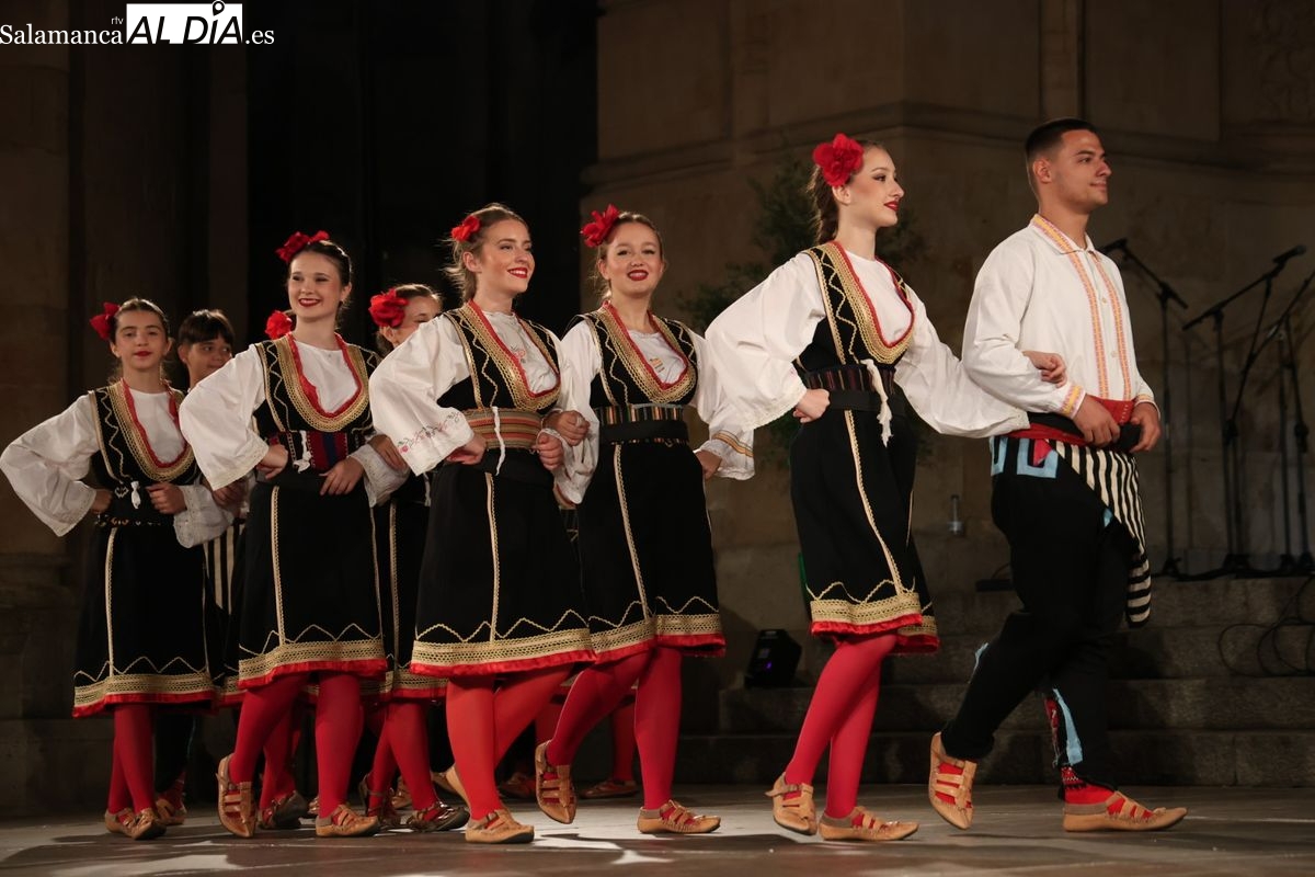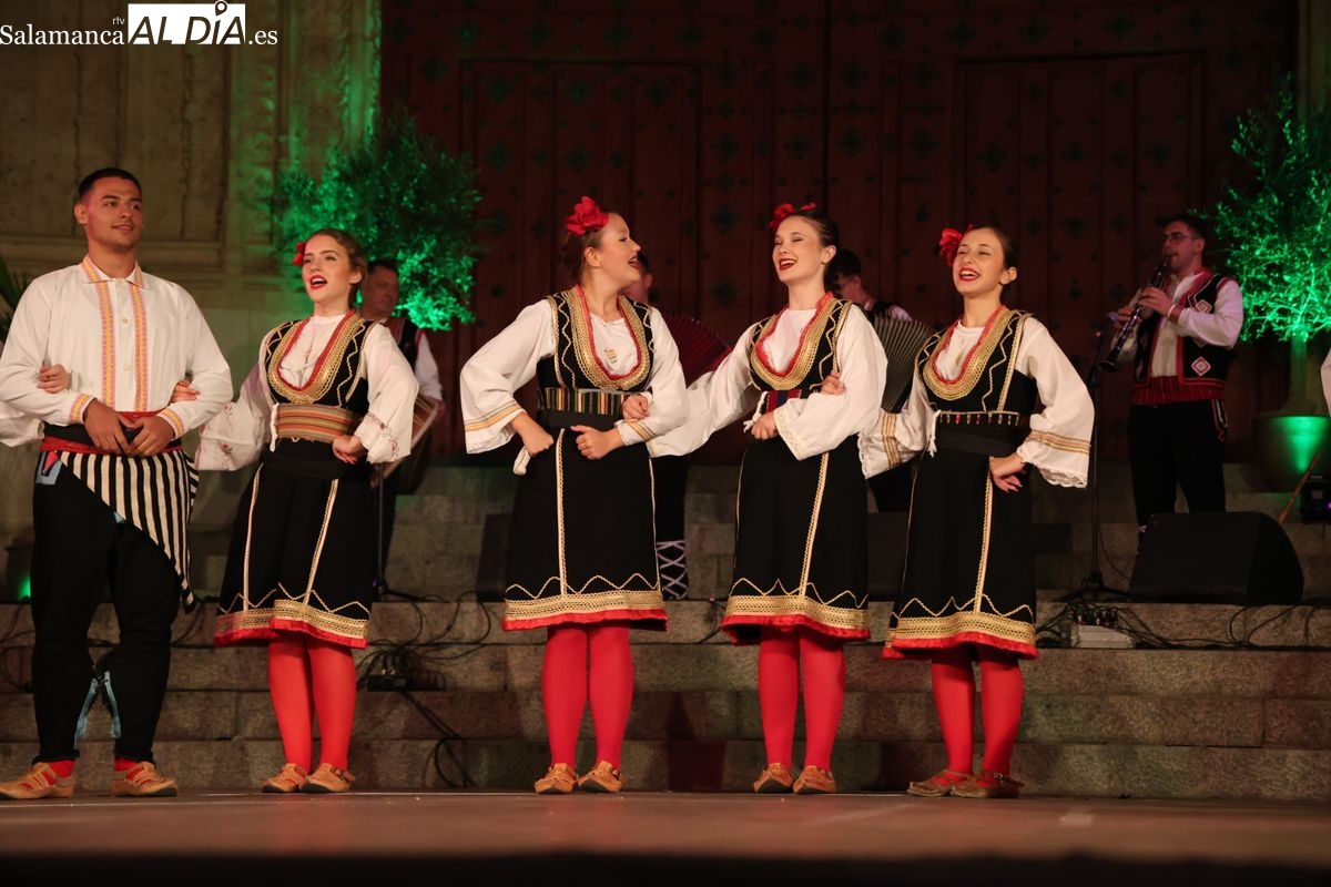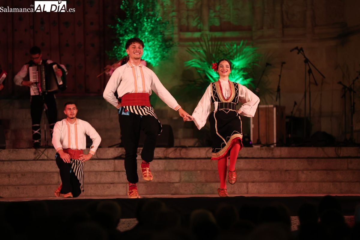 El emblemático Patio Chico de Salamanca vibró en la noche de este viernes con los sonidos y danzas de diversas culturas, en una de las últimas actuaciones del IV Festival Internacional de Folclore Ciudad de Salamanca. Cientos de personas se congregaron para disfrutar de un espectáculo que unió tradiciones de los Balcanes con el folclore de diferentes puntos de España.