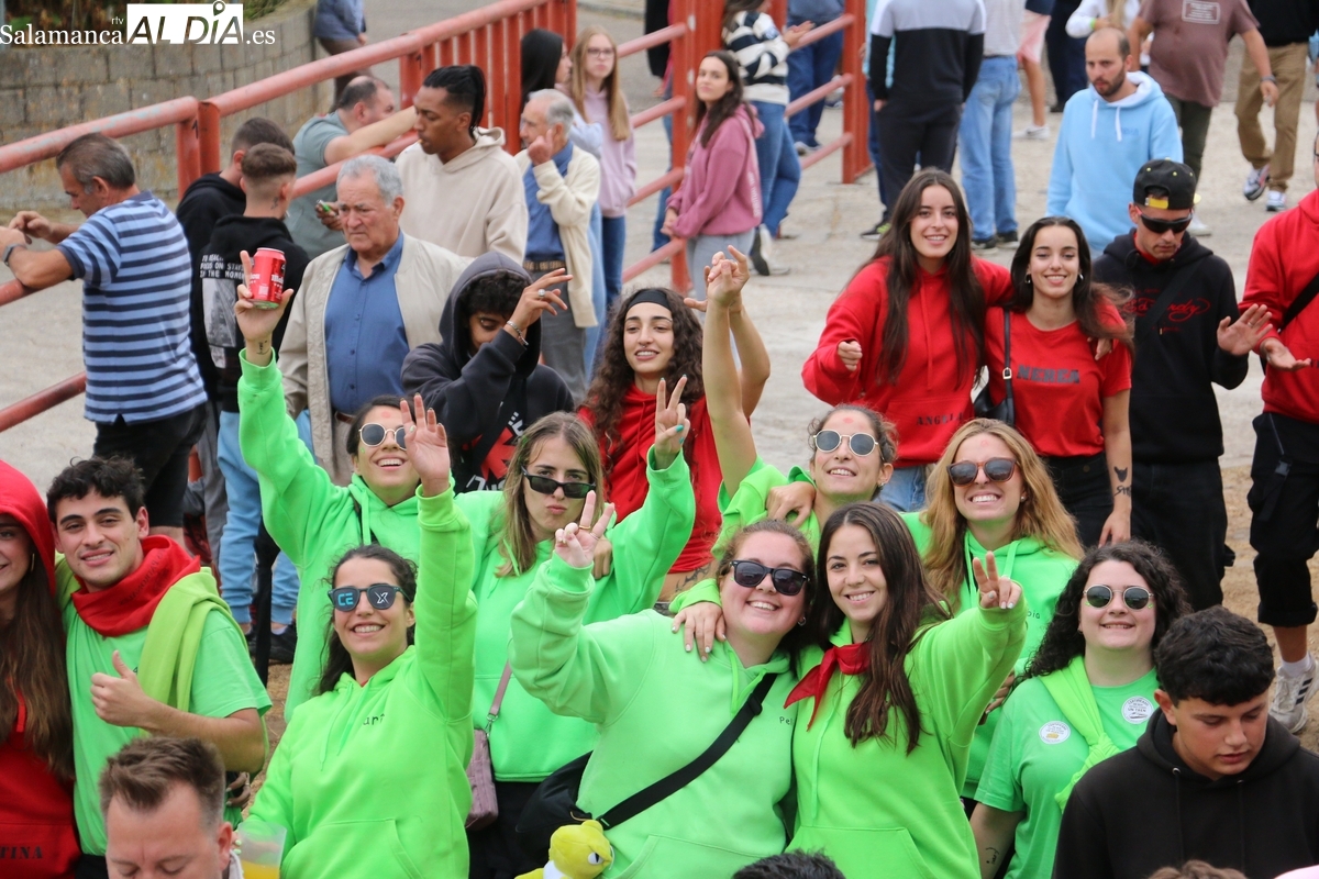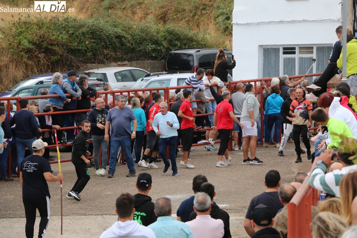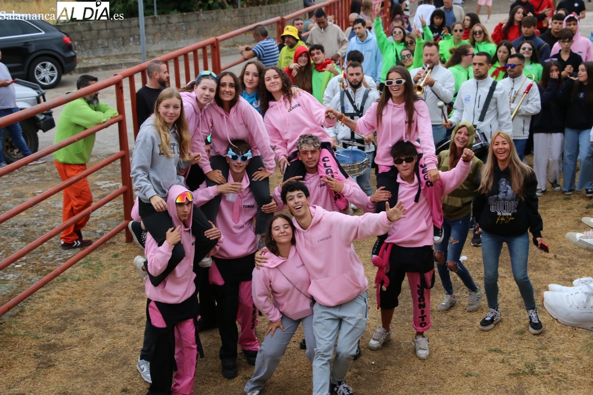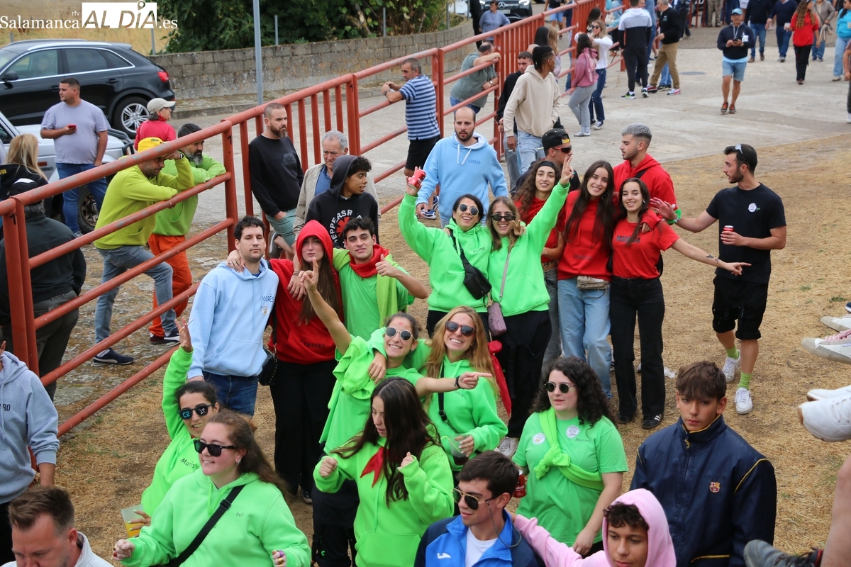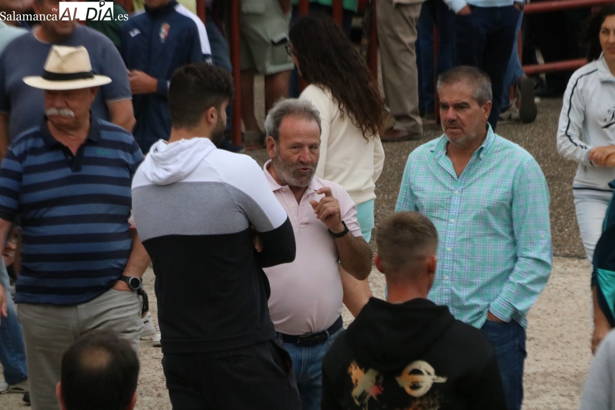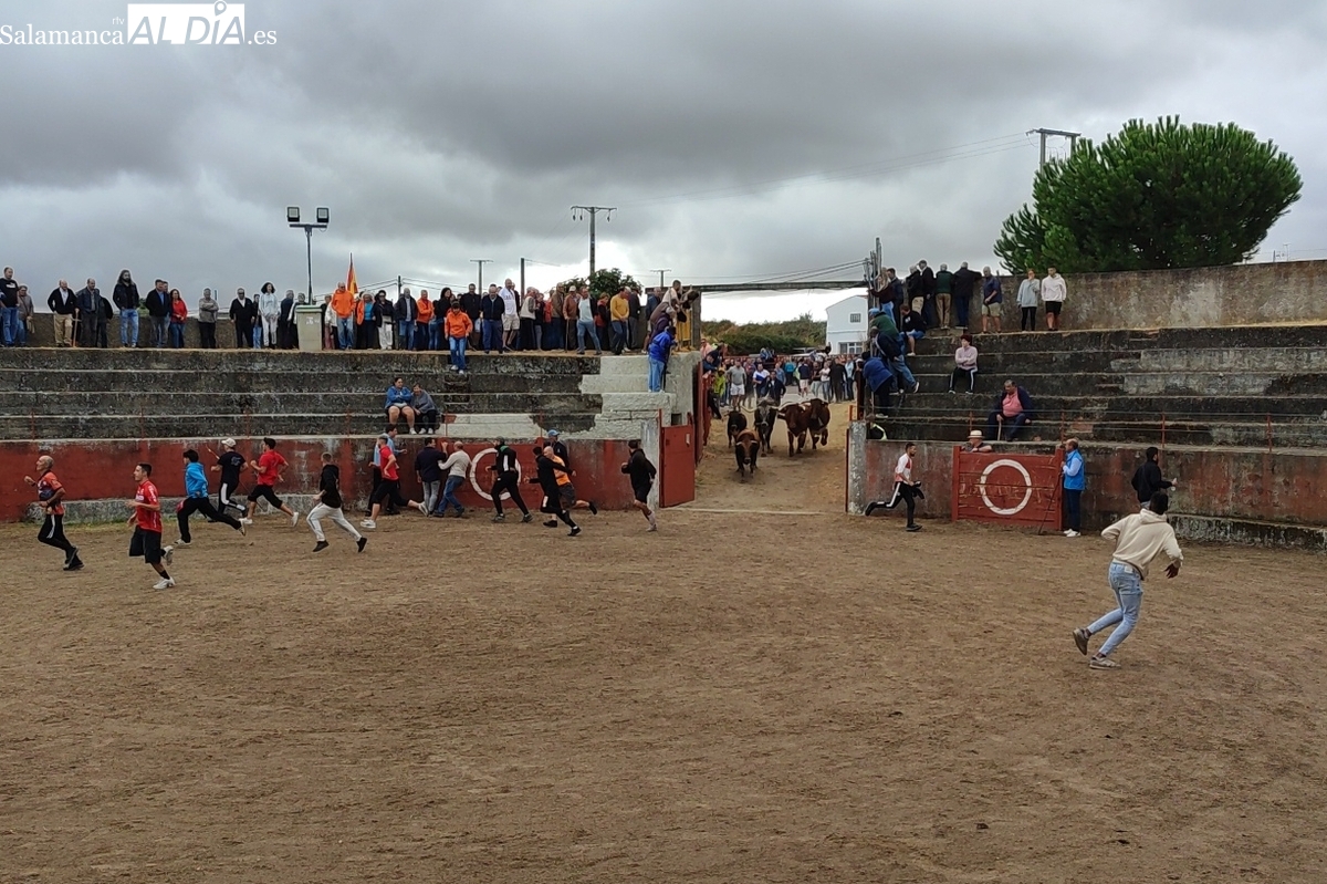 Con bastante público de localidades próximas, como Villarino y Aldeadávila, aunque también incluso de otras alejadas como el municipio zamorano de Fermoselle, de manera puntual salían de toriles los tres mansos para realizar el recorrido en sentido inverso hasta el camión. A continuación salían a la calle los dos primeros novillos, todos ellos de capa castaña.