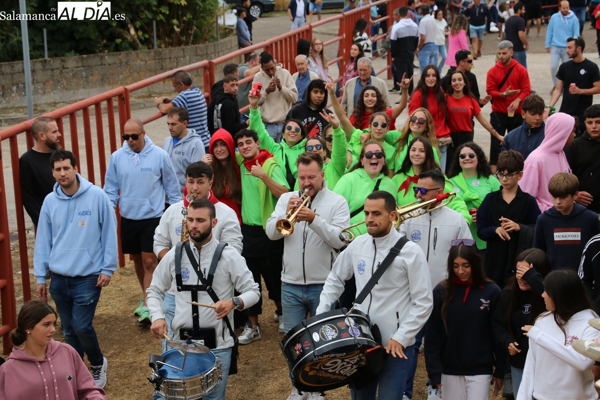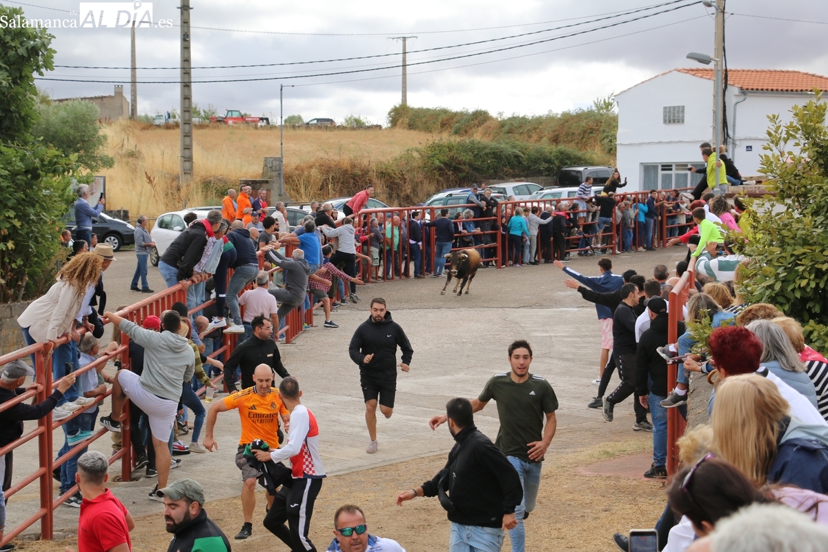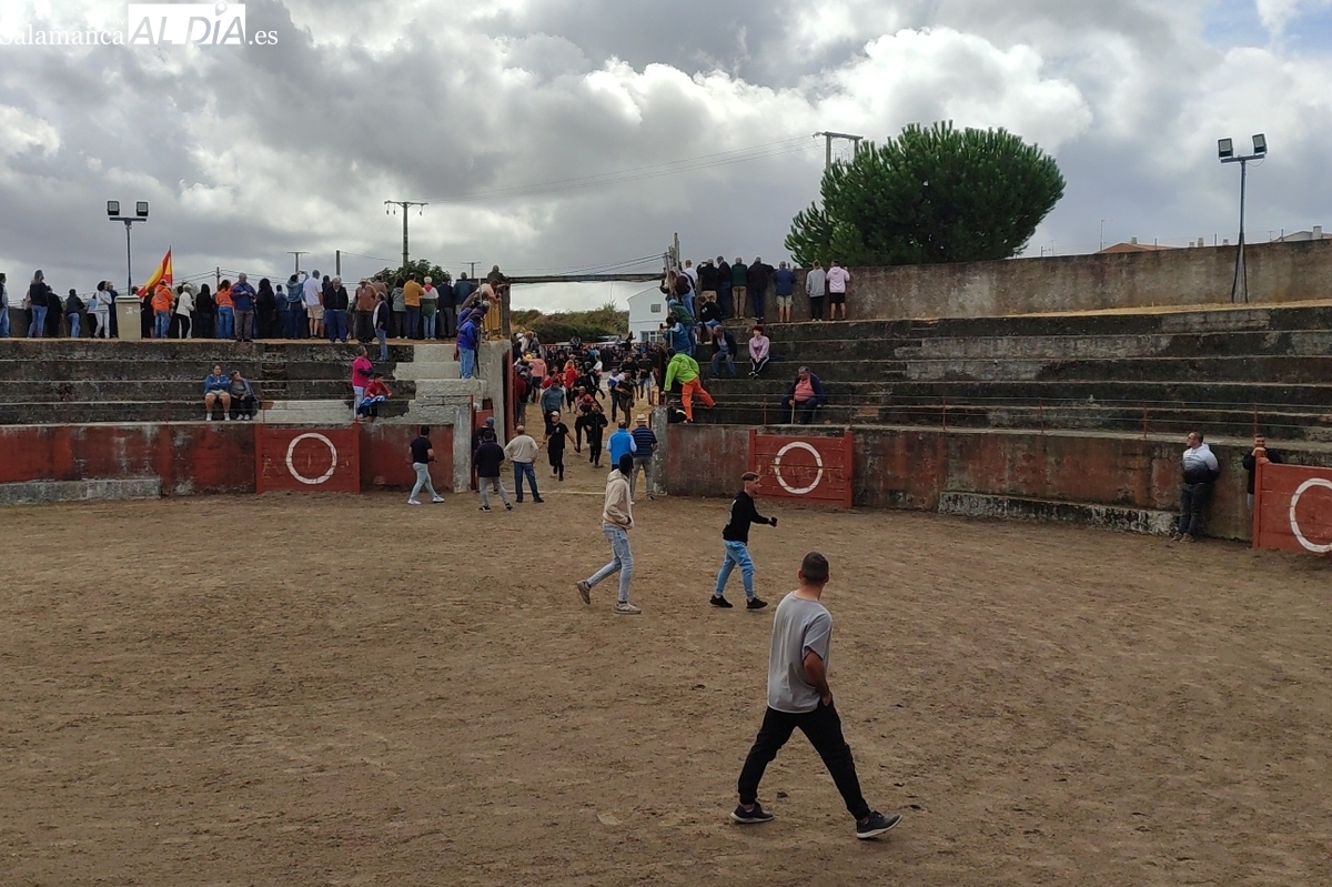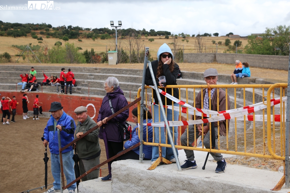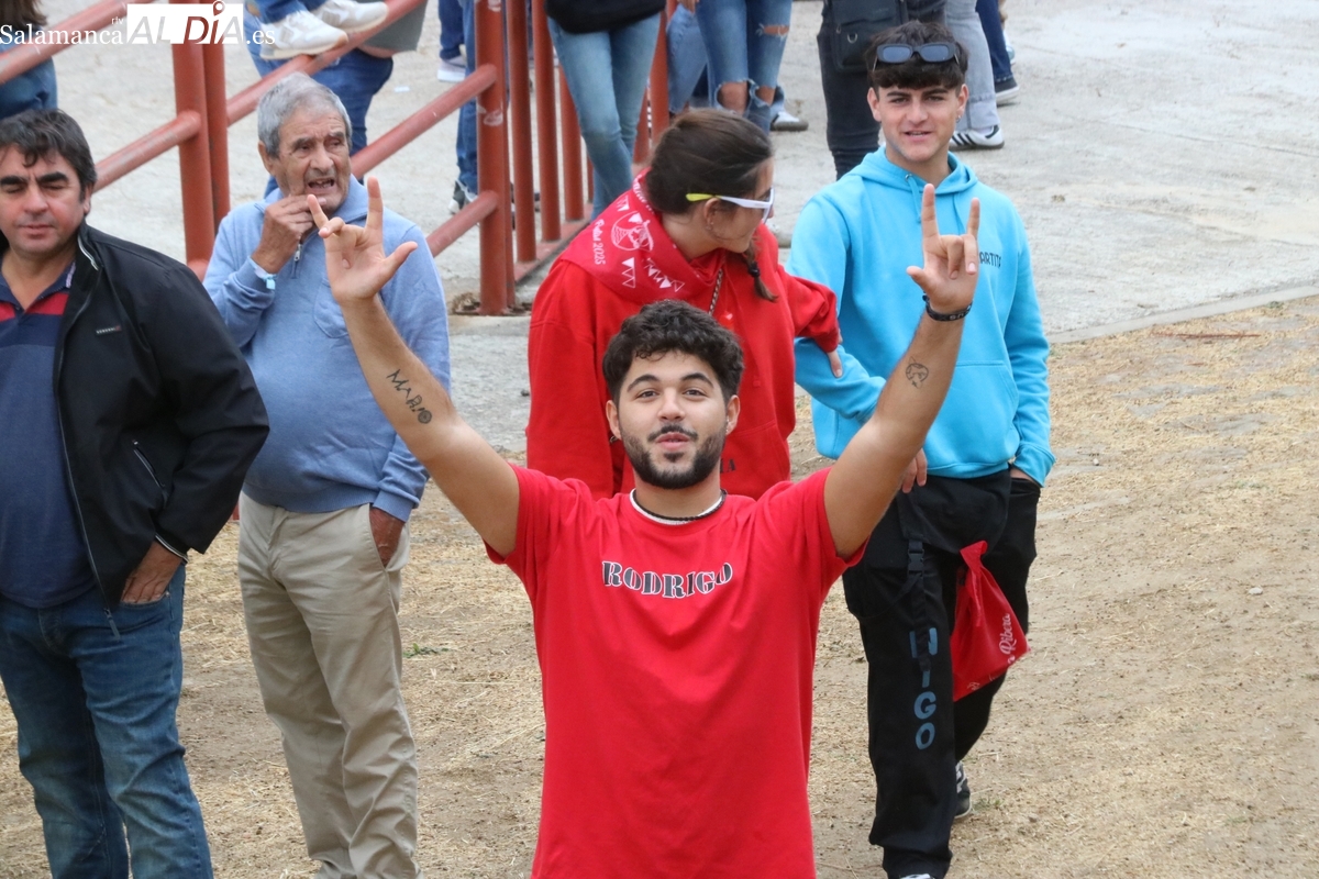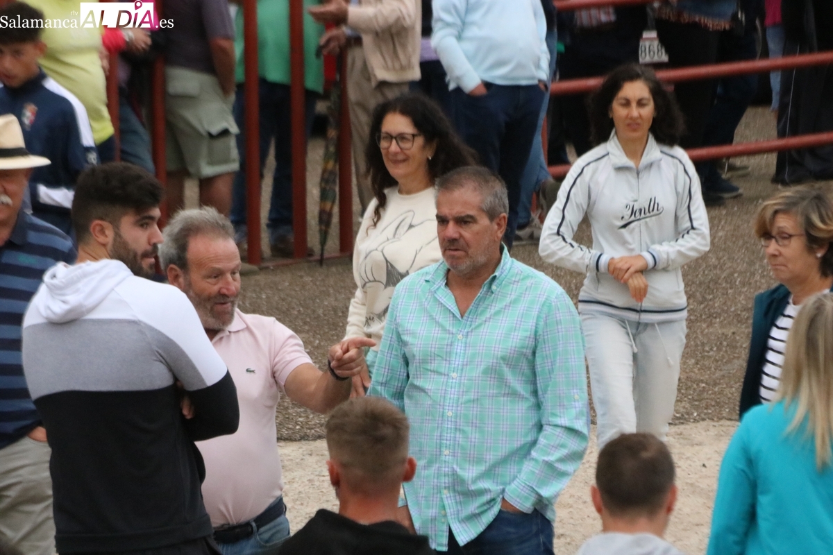 Con bastante público de localidades próximas, como Villarino y Aldeadávila, aunque también incluso de otras alejadas como el municipio zamorano de Fermoselle, de manera puntual salían de toriles los tres mansos para realizar el recorrido en sentido inverso hasta el camión. A continuación salían a la calle los dos primeros novillos, todos ellos de capa castaña.