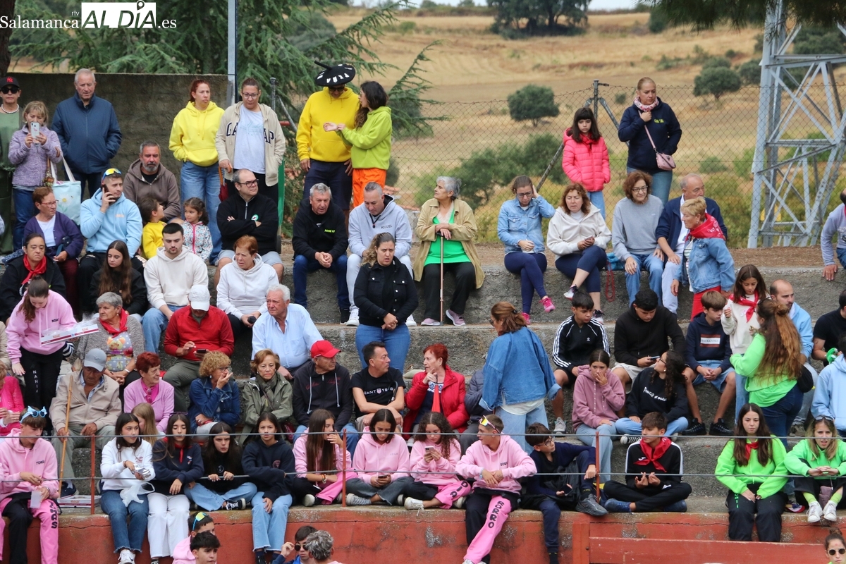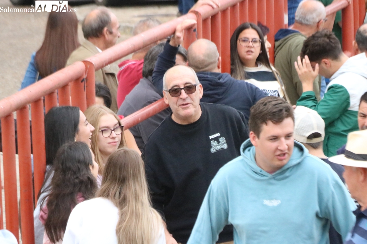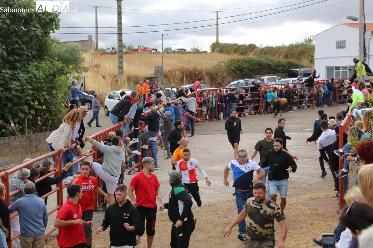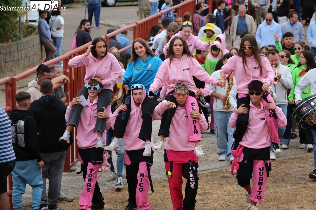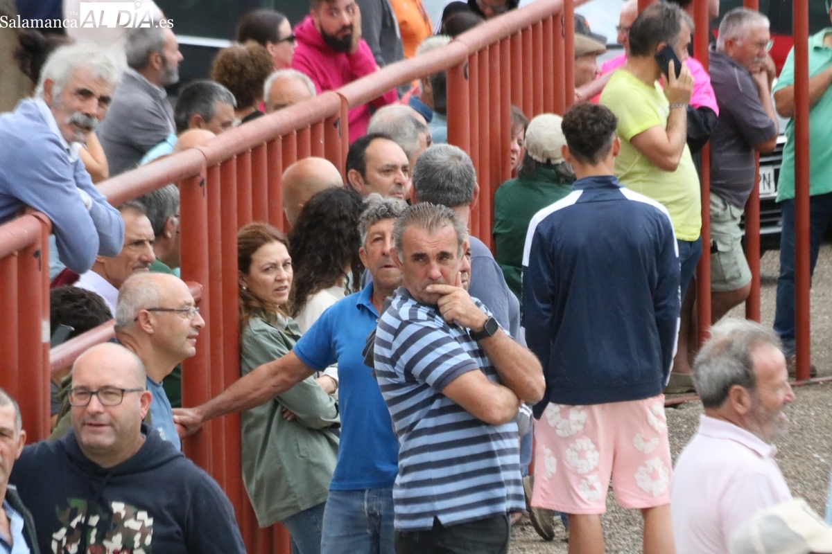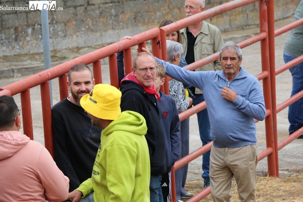 Con bastante público de localidades próximas, como Villarino y Aldeadávila, aunque también incluso de otras alejadas como el municipio zamorano de Fermoselle, de manera puntual salían de toriles los tres mansos para realizar el recorrido en sentido inverso hasta el camión. A continuación salían a la calle los dos primeros novillos, todos ellos de capa castaña.