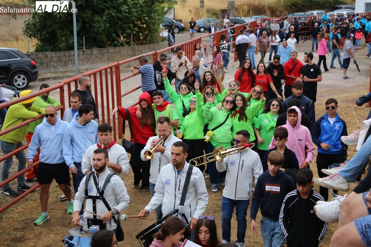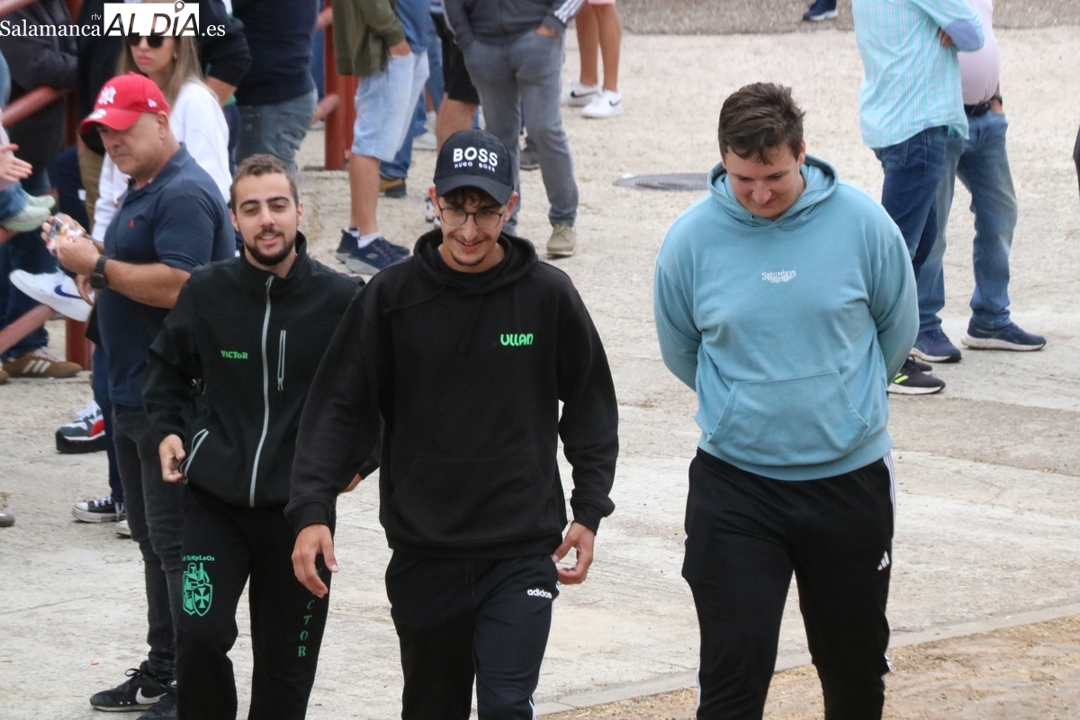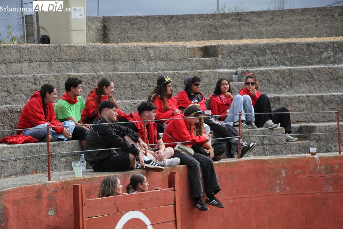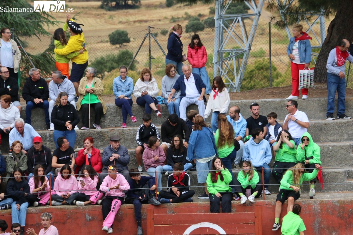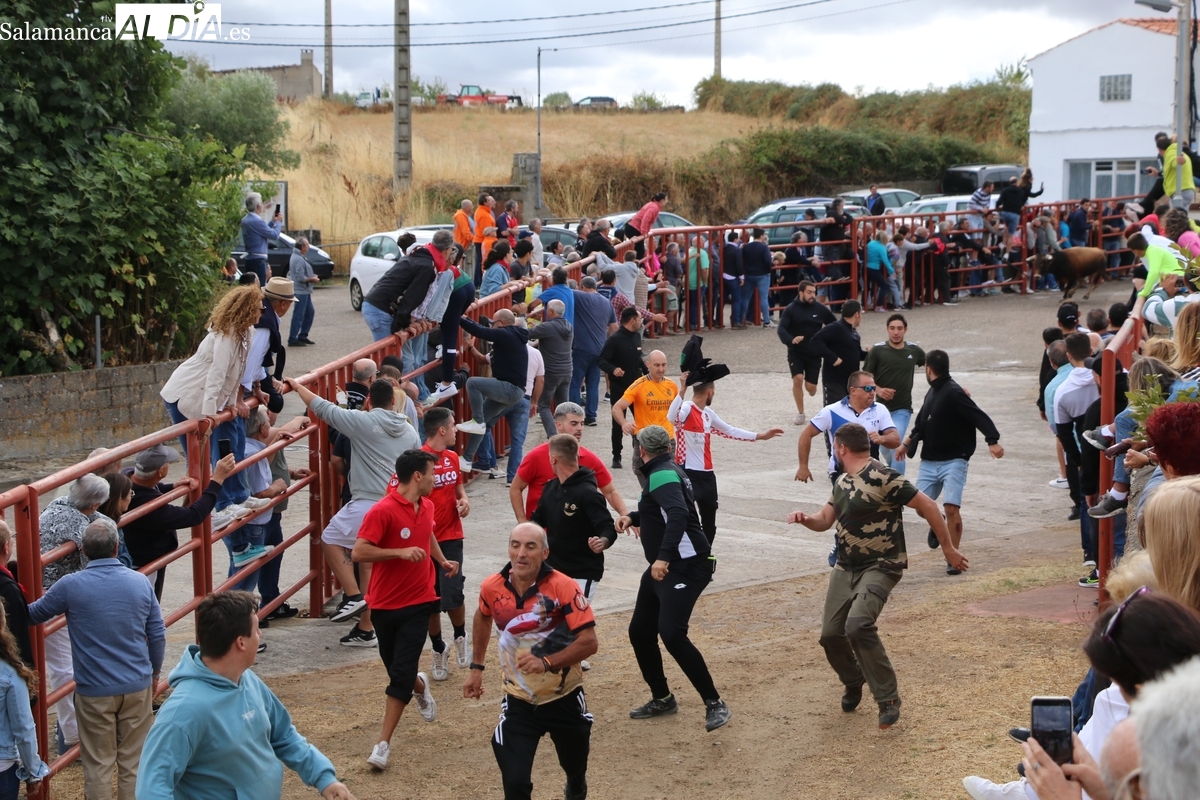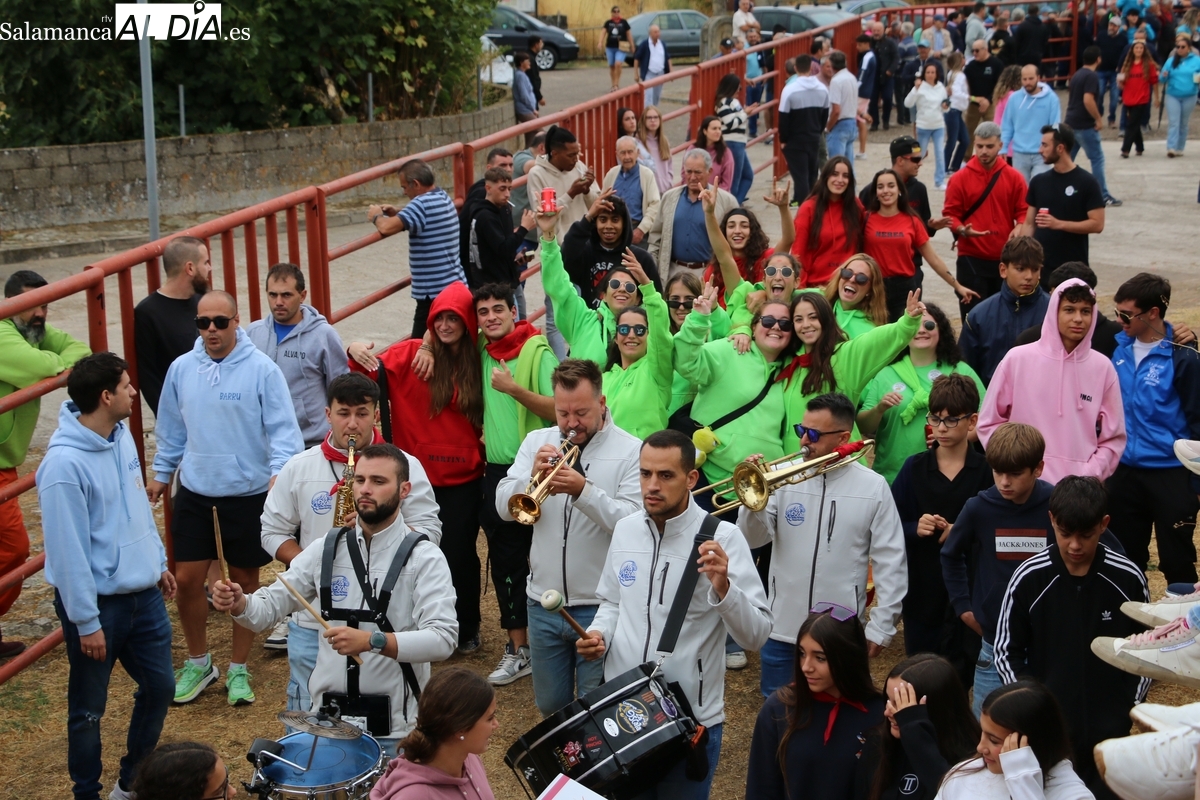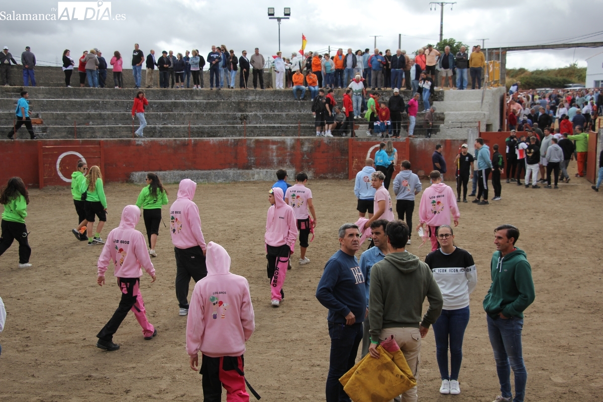 Con bastante público de localidades próximas, como Villarino y Aldeadávila, aunque también incluso de otras alejadas como el municipio zamorano de Fermoselle, de manera puntual salían de toriles los tres mansos para realizar el recorrido en sentido inverso hasta el camión. A continuación salían a la calle los dos primeros novillos, todos ellos de capa castaña.