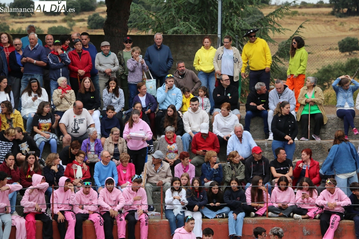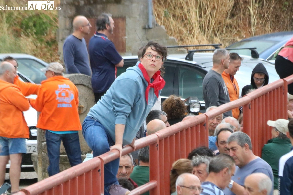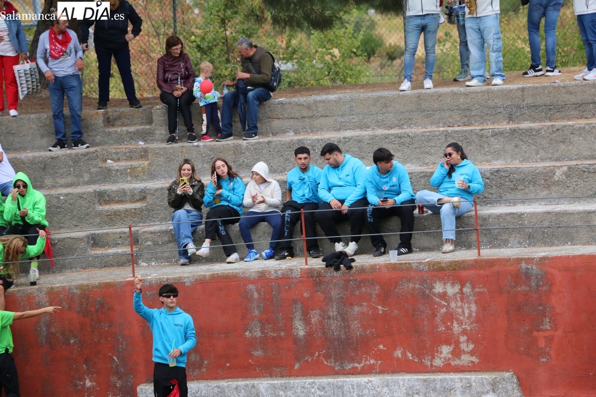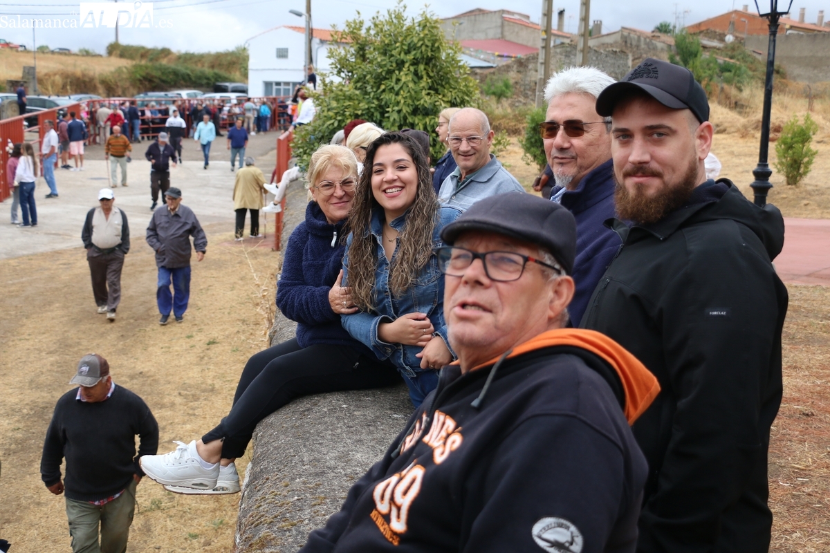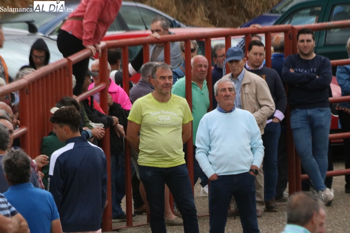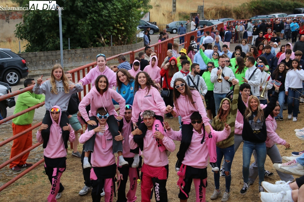 Con bastante público de localidades próximas, como Villarino y Aldeadávila, aunque también incluso de otras alejadas como el municipio zamorano de Fermoselle, de manera puntual salían de toriles los tres mansos para realizar el recorrido en sentido inverso hasta el camión. A continuación salían a la calle los dos primeros novillos, todos ellos de capa castaña.