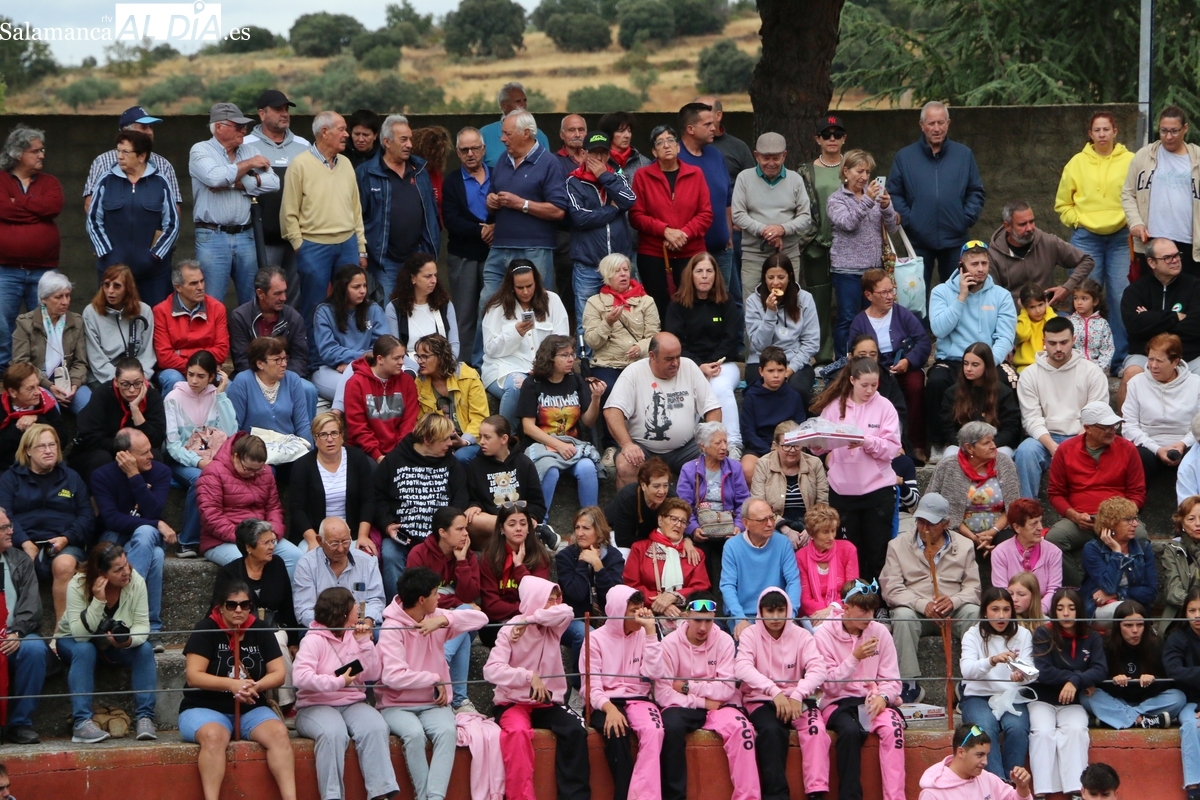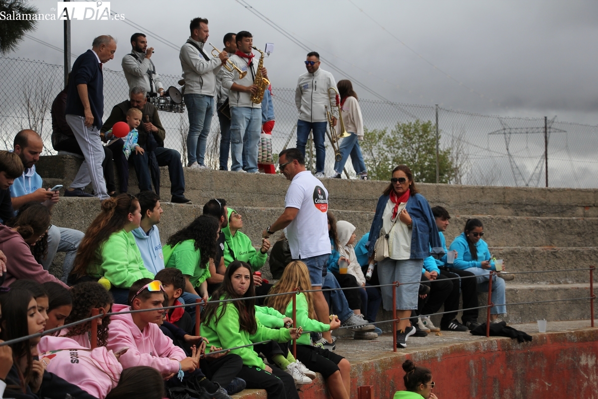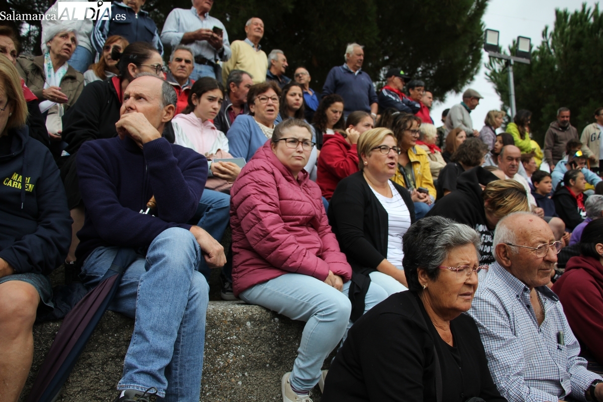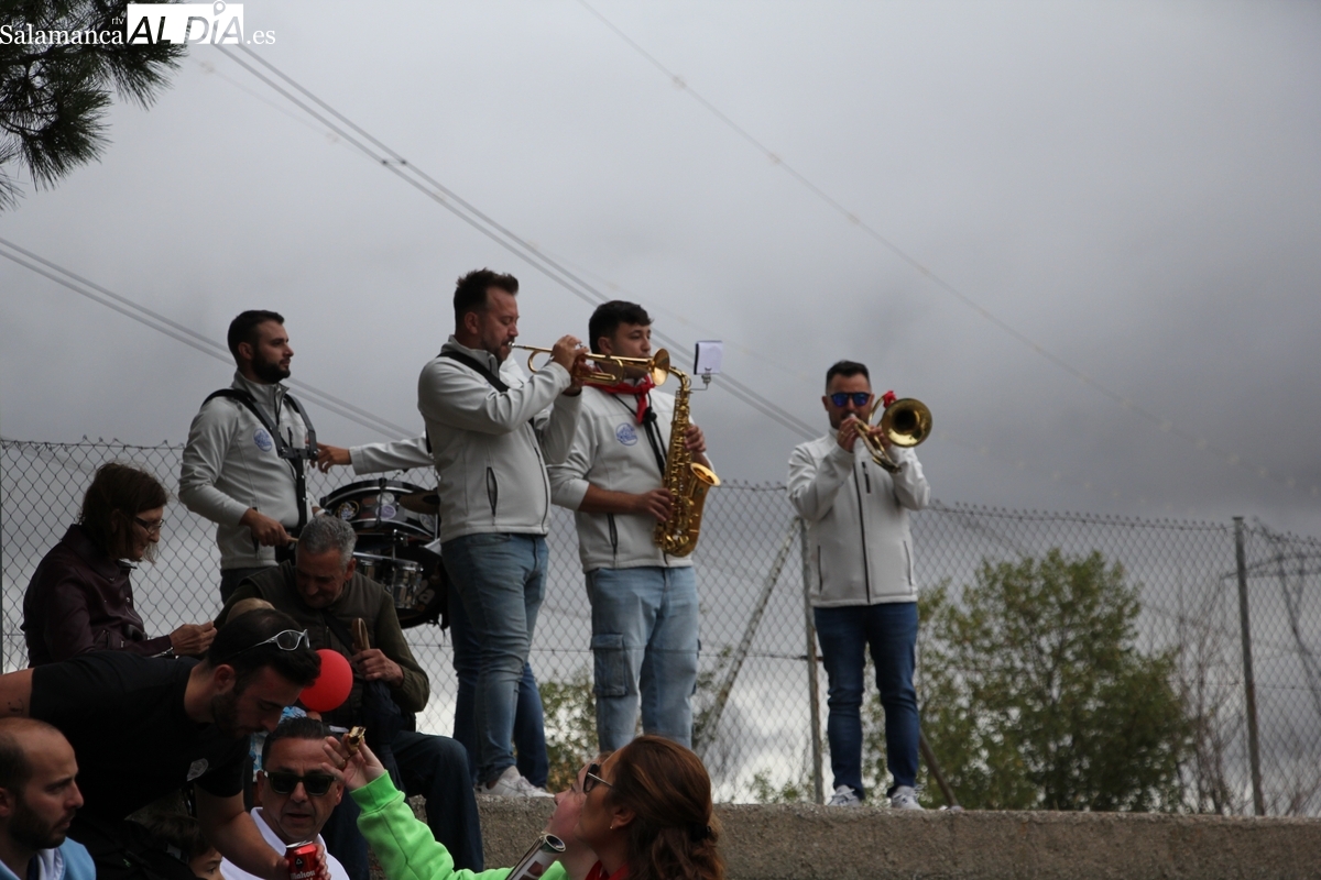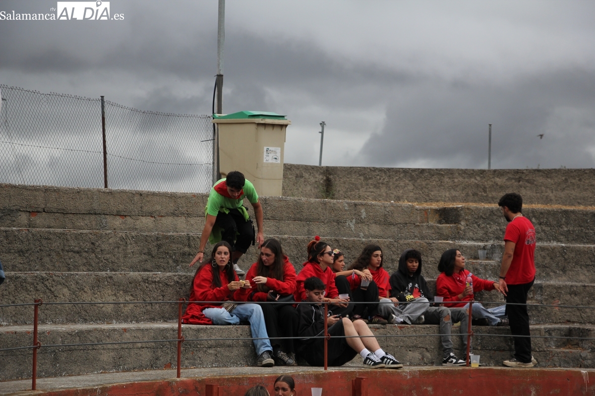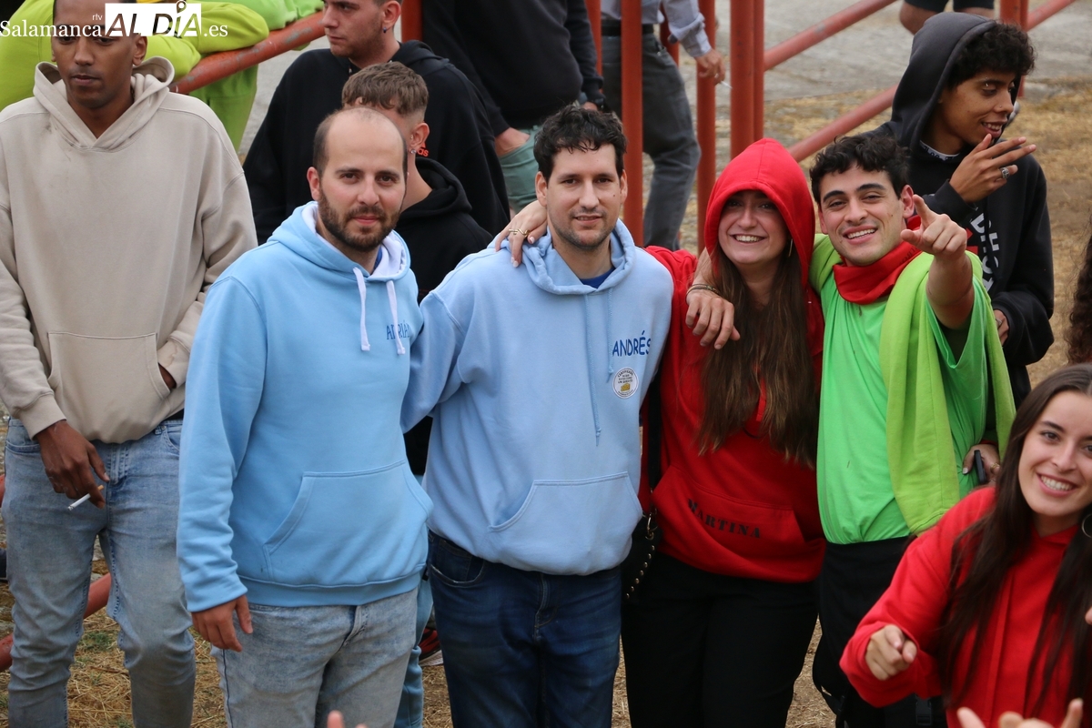 Con bastante público de localidades próximas, como Villarino y Aldeadávila, aunque también incluso de otras alejadas como el municipio zamorano de Fermoselle, de manera puntual salían de toriles los tres mansos para realizar el recorrido en sentido inverso hasta el camión. A continuación salían a la calle los dos primeros novillos, todos ellos de capa castaña.