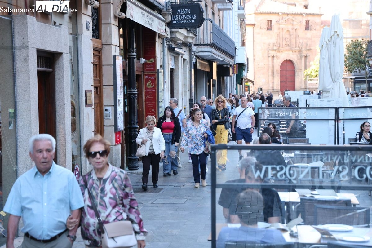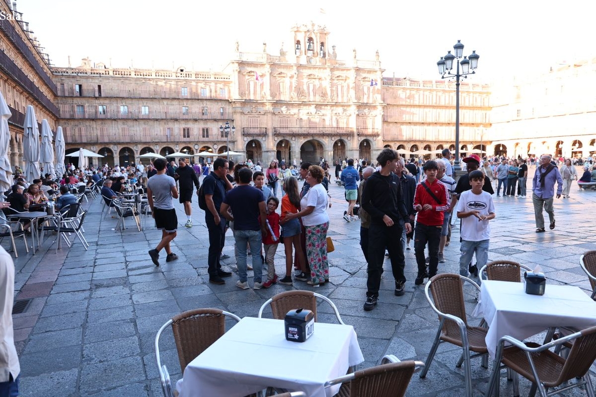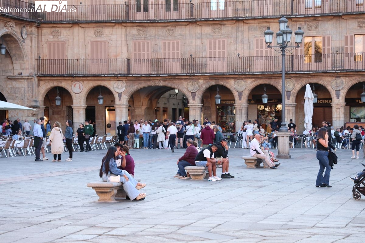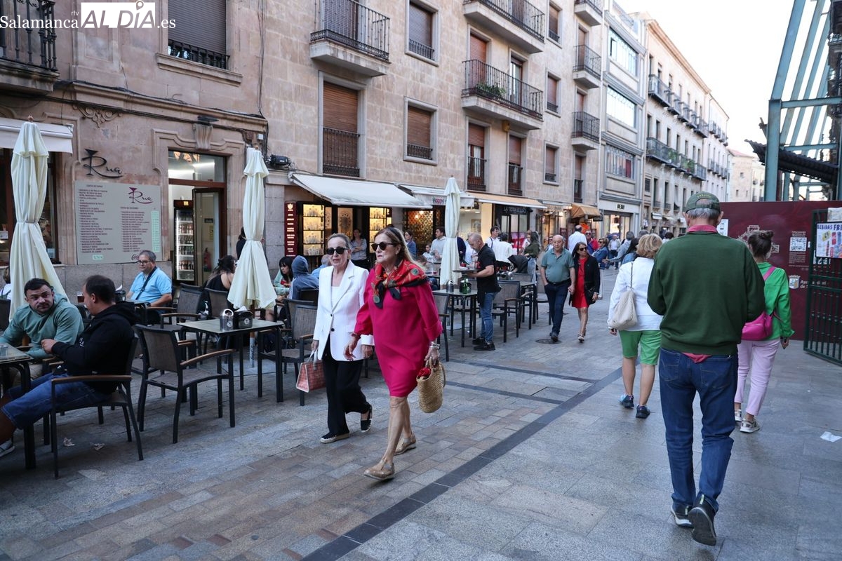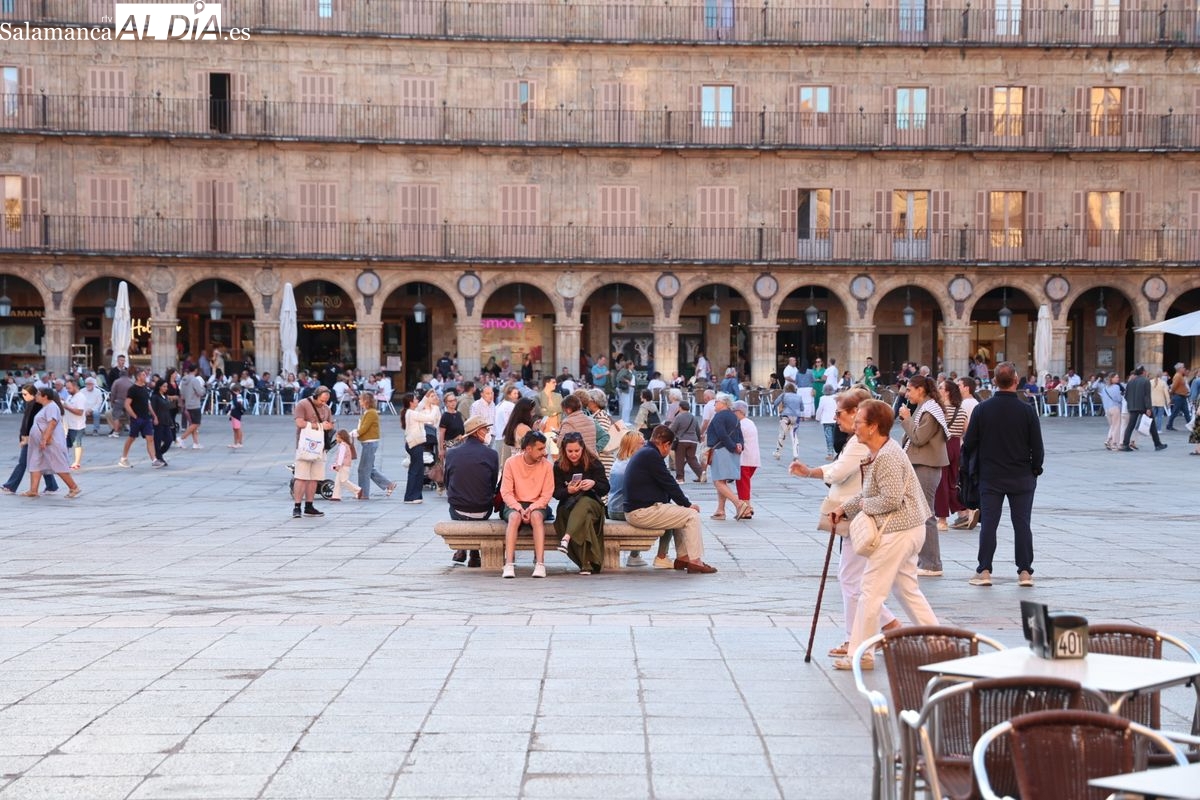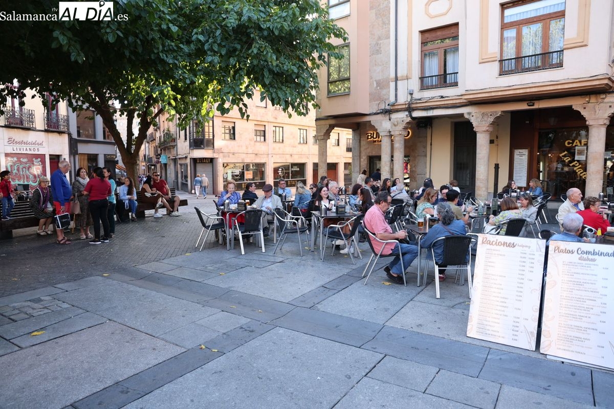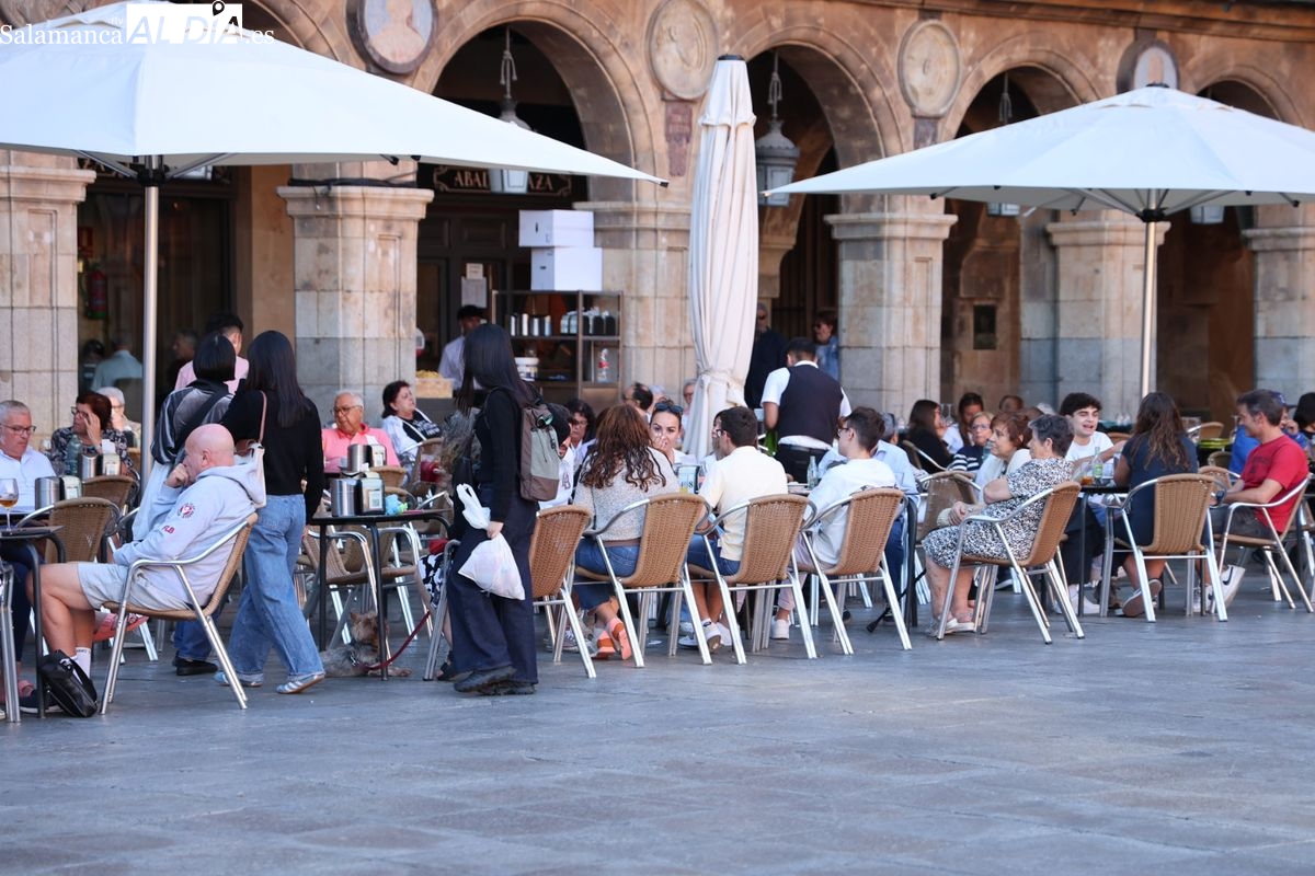 Desde primera hora de la tarde, las terrazas de la Plaza Mayor y las principales vías peatonales como la calle Toro o la Rúa Mayor han acogido a salmantinos y a los últimos turistas que apuran sus vacaciones. Sin embargo, el ambiente, aunque positivo, no ha alcanzado la intensidad de fines de semana anteriores.