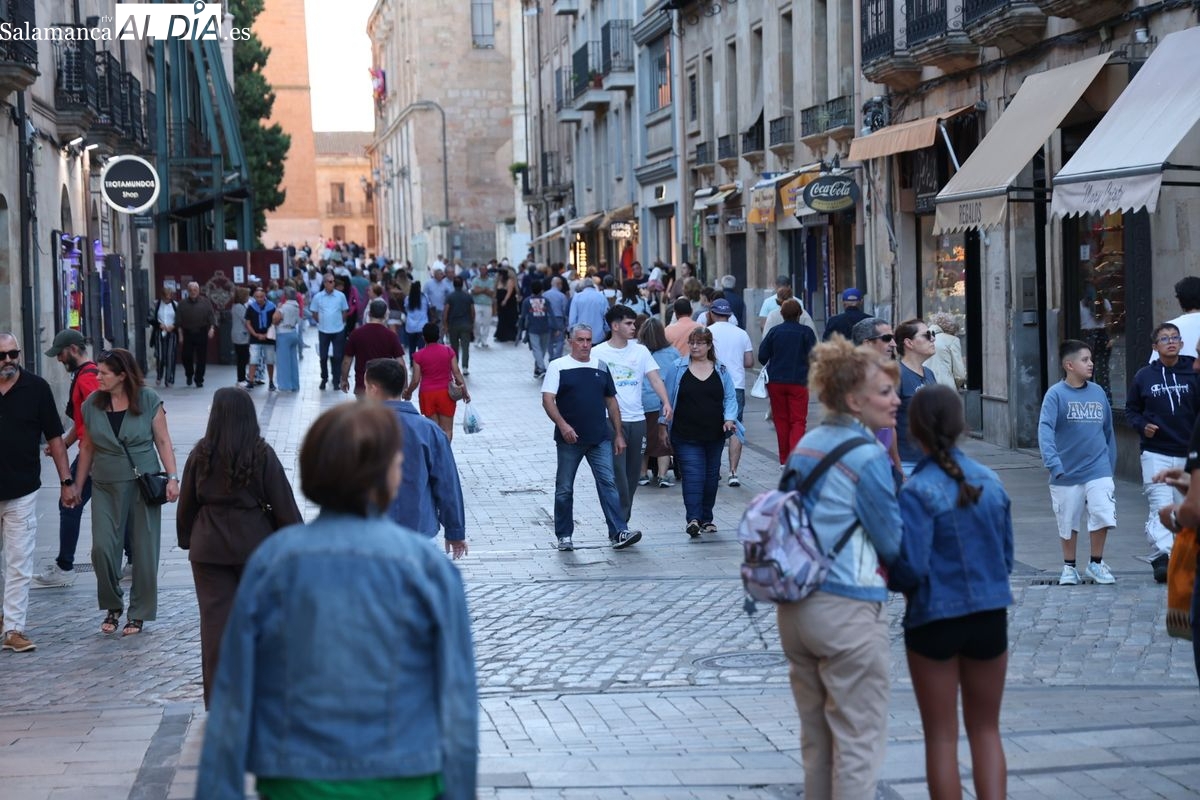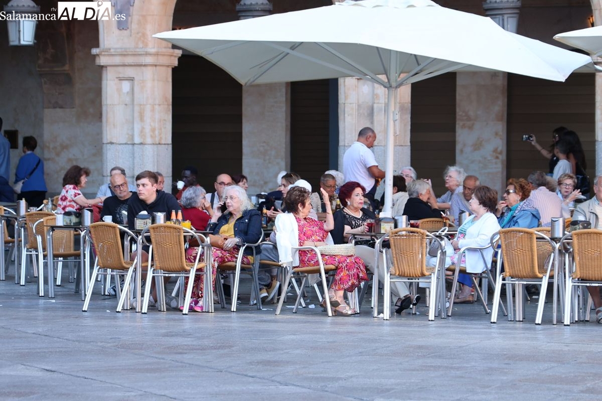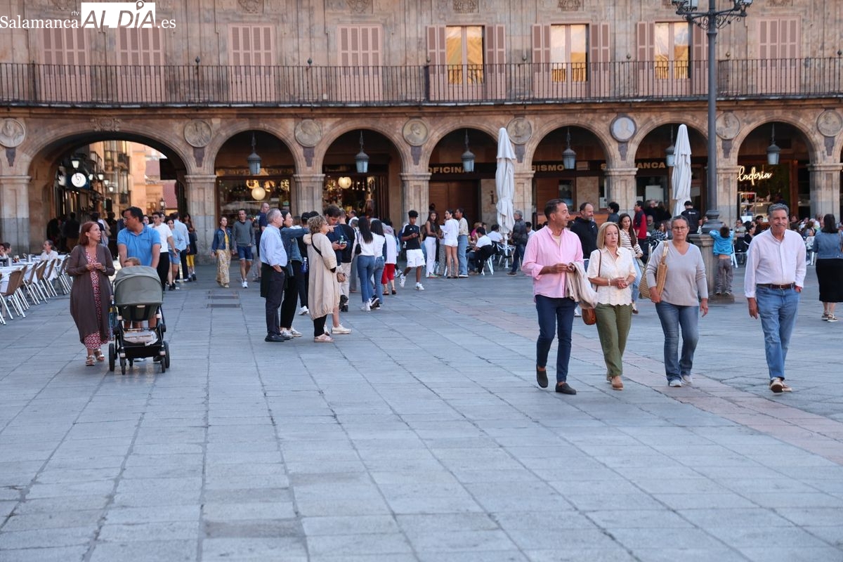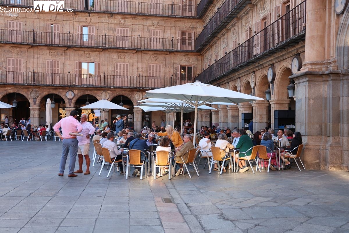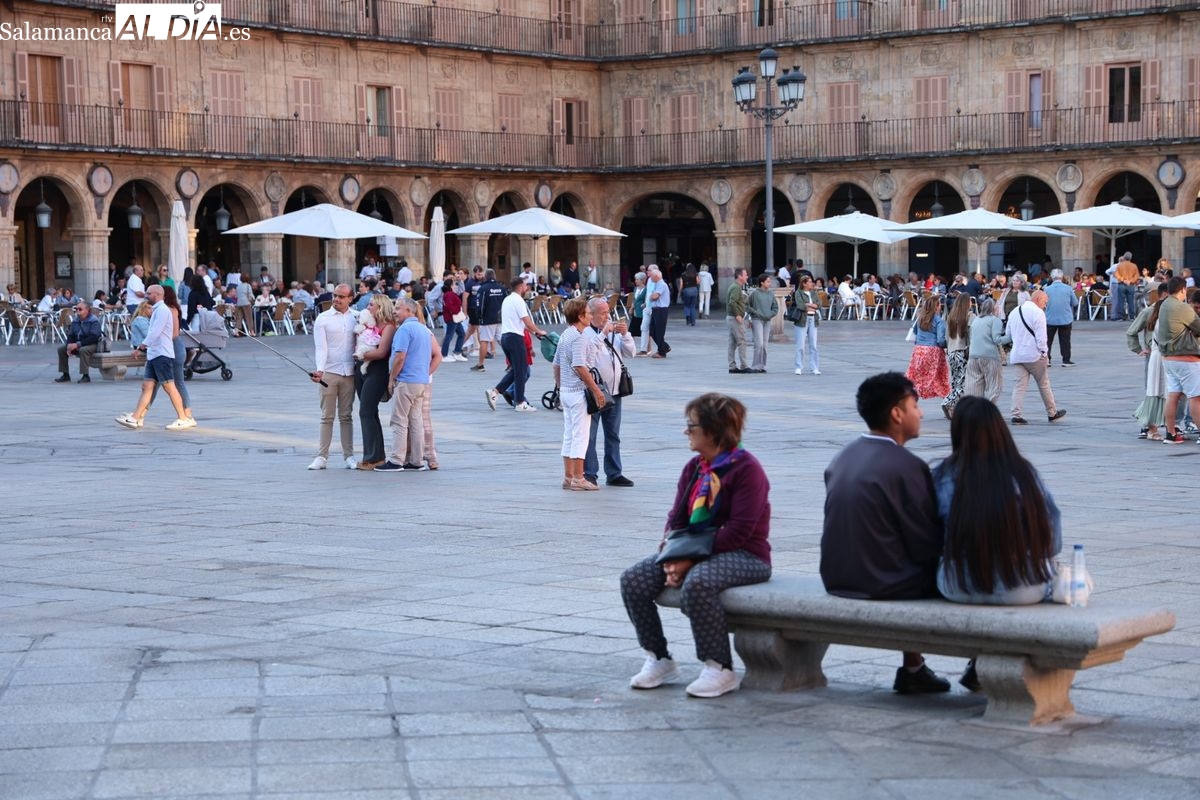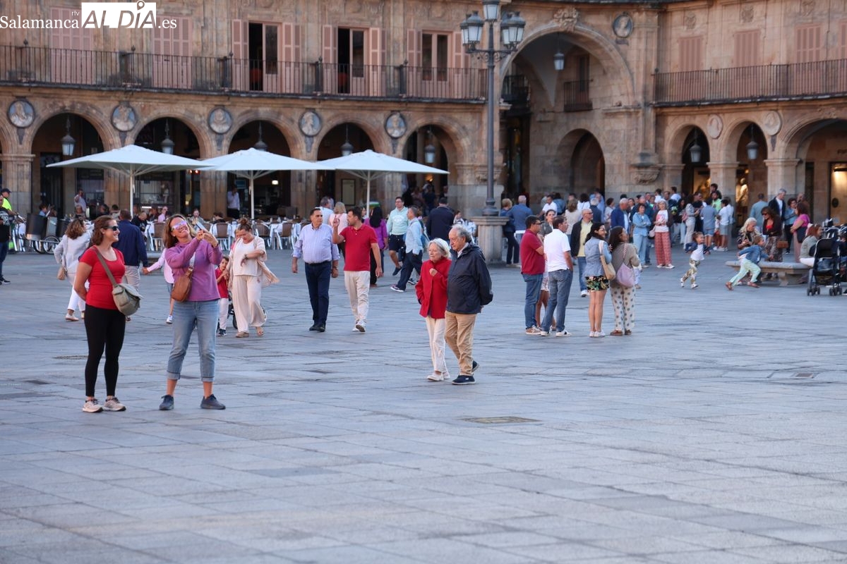 Desde primera hora de la tarde, las terrazas de la Plaza Mayor y las principales vías peatonales como la calle Toro o la Rúa Mayor han acogido a salmantinos y a los últimos turistas que apuran sus vacaciones. Sin embargo, el ambiente, aunque positivo, no ha alcanzado la intensidad de fines de semana anteriores.