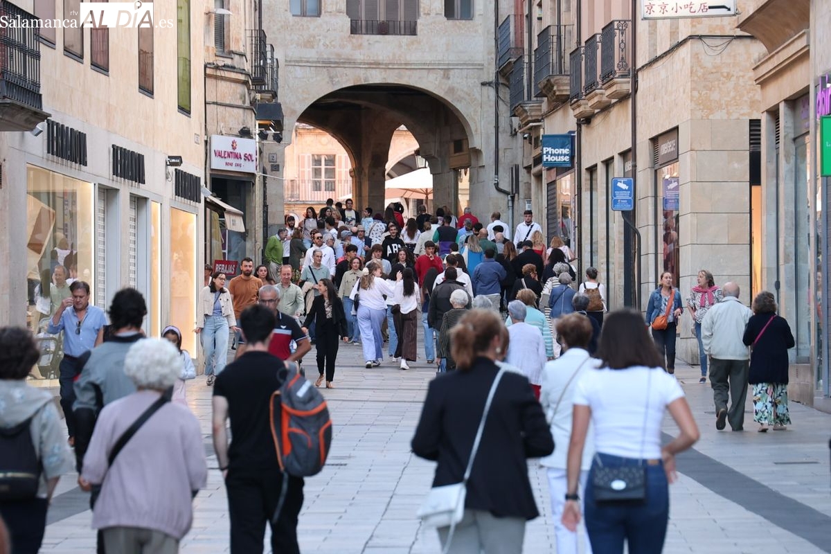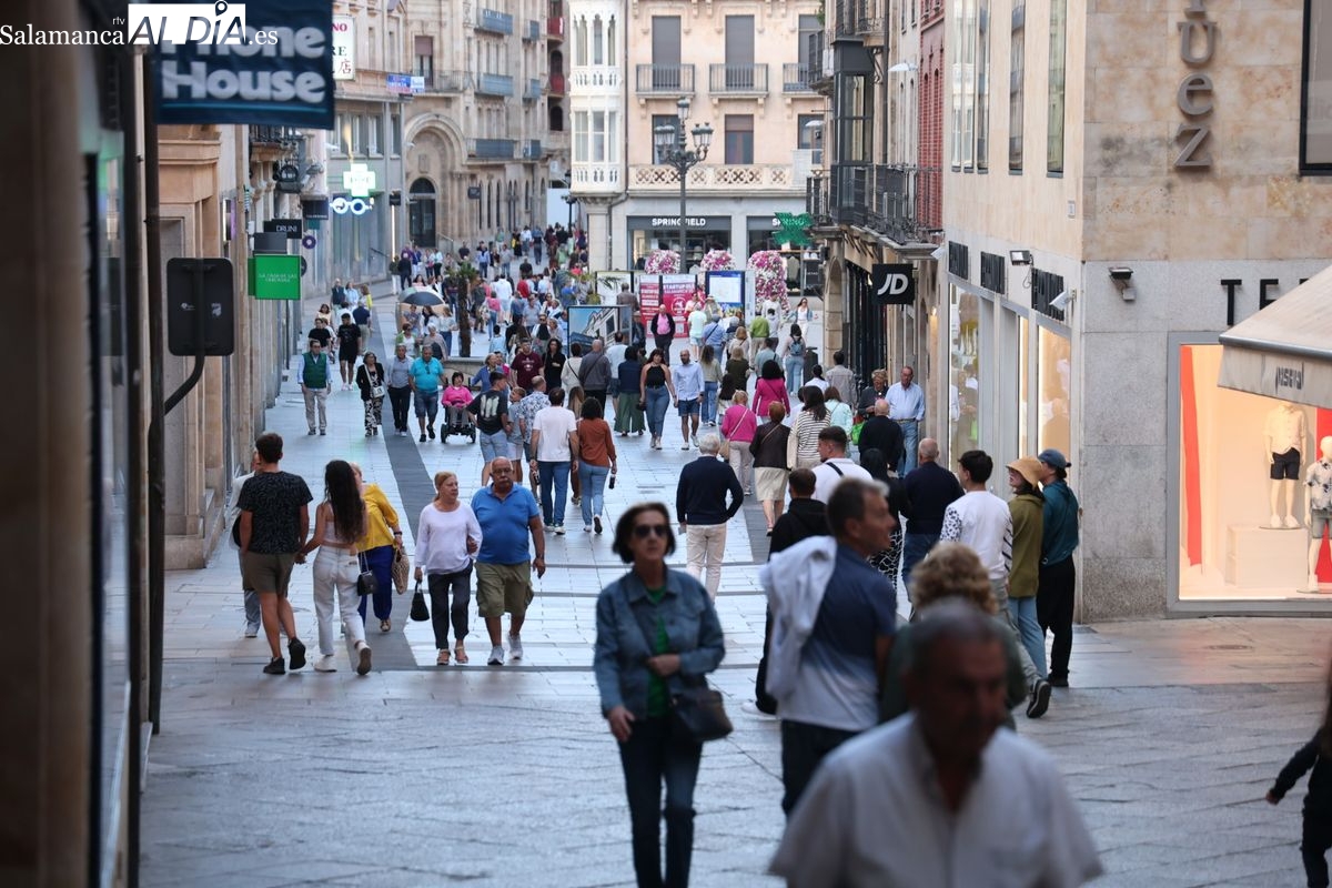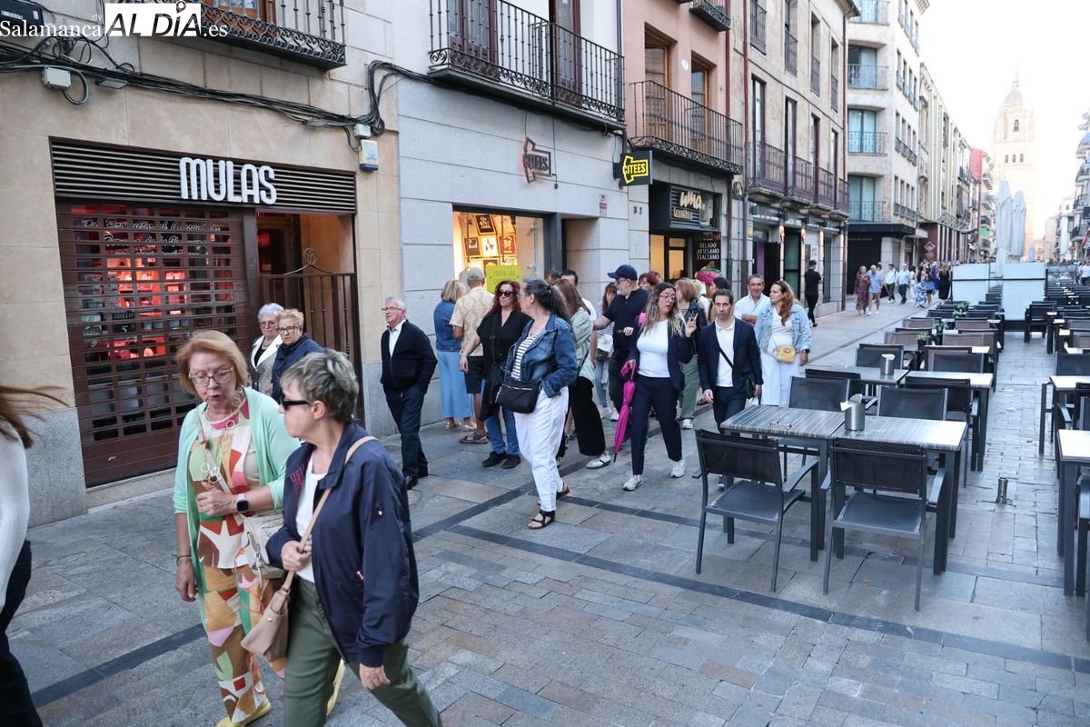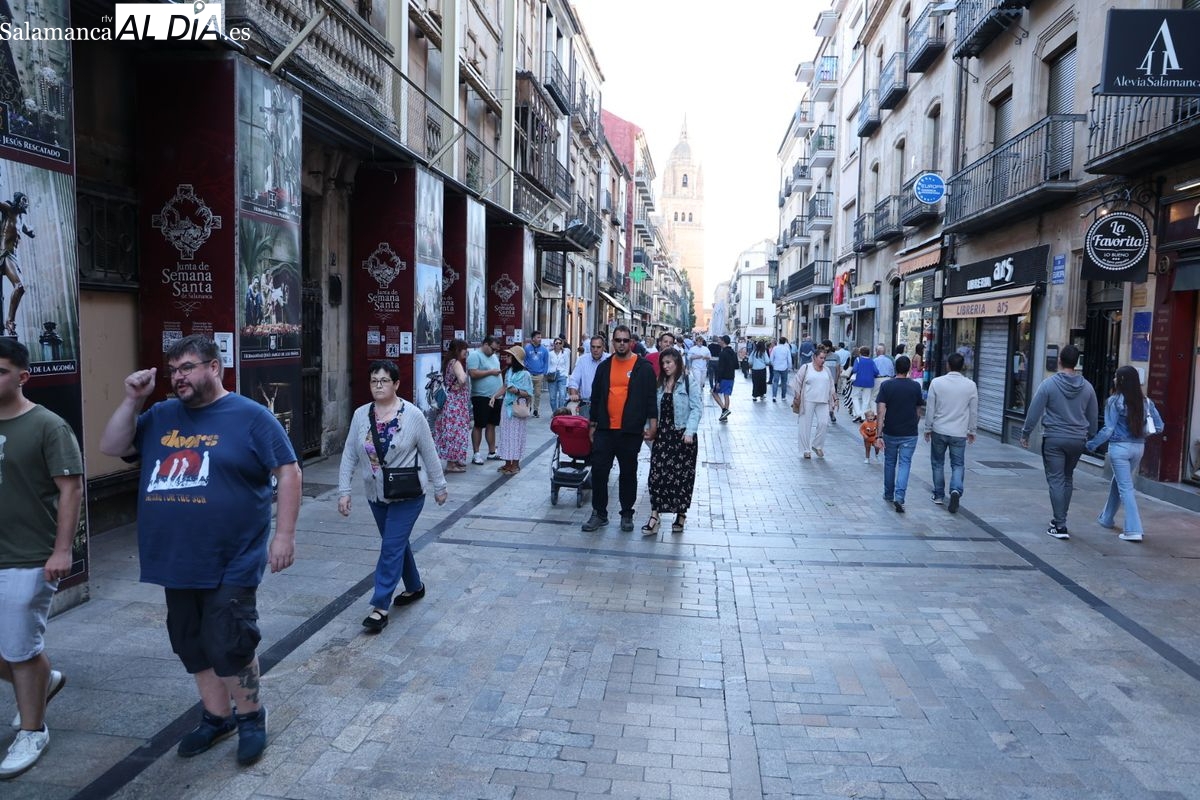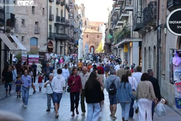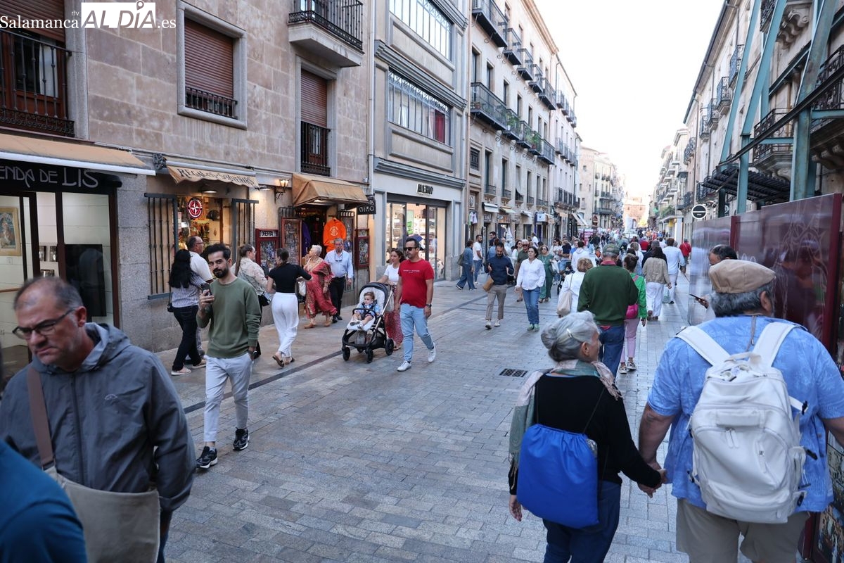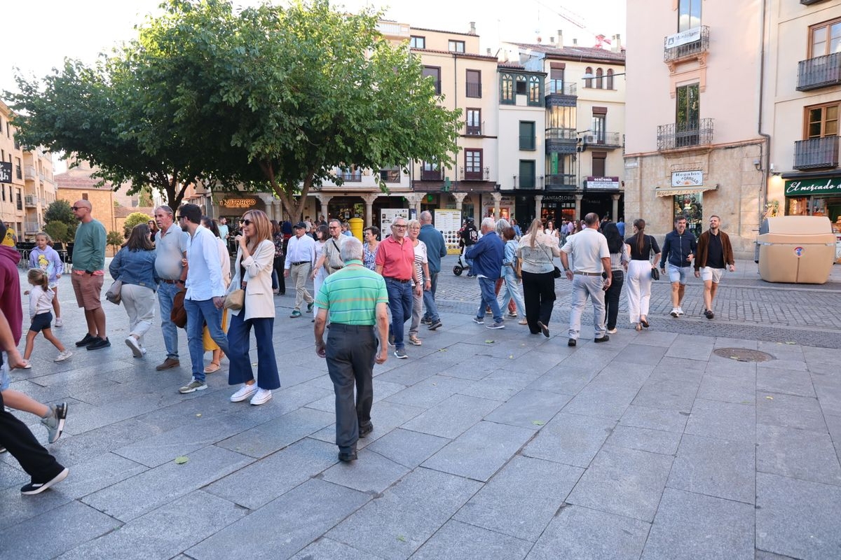 Desde primera hora de la tarde, las terrazas de la Plaza Mayor y las principales vías peatonales como la calle Toro o la Rúa Mayor han acogido a salmantinos y a los últimos turistas que apuran sus vacaciones. Sin embargo, el ambiente, aunque positivo, no ha alcanzado la intensidad de fines de semana anteriores.